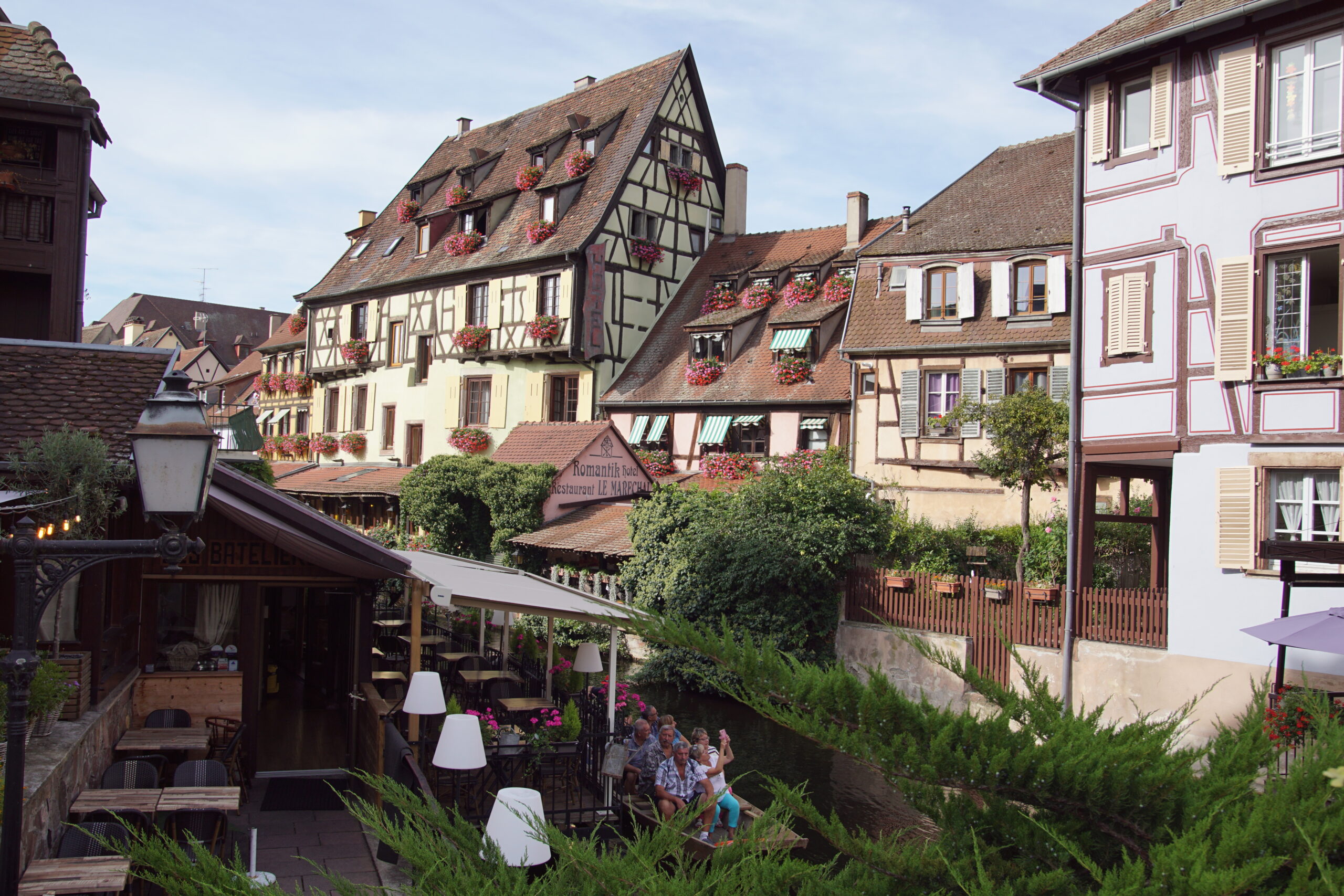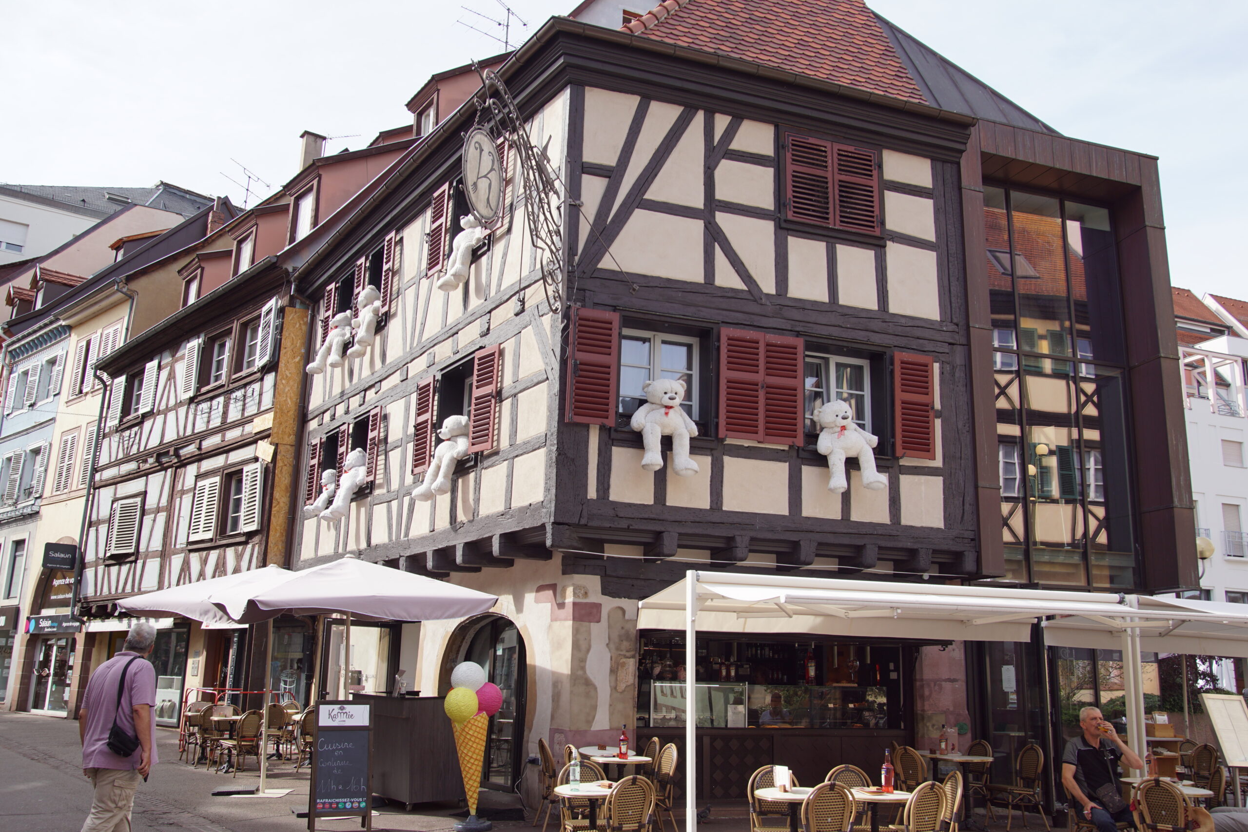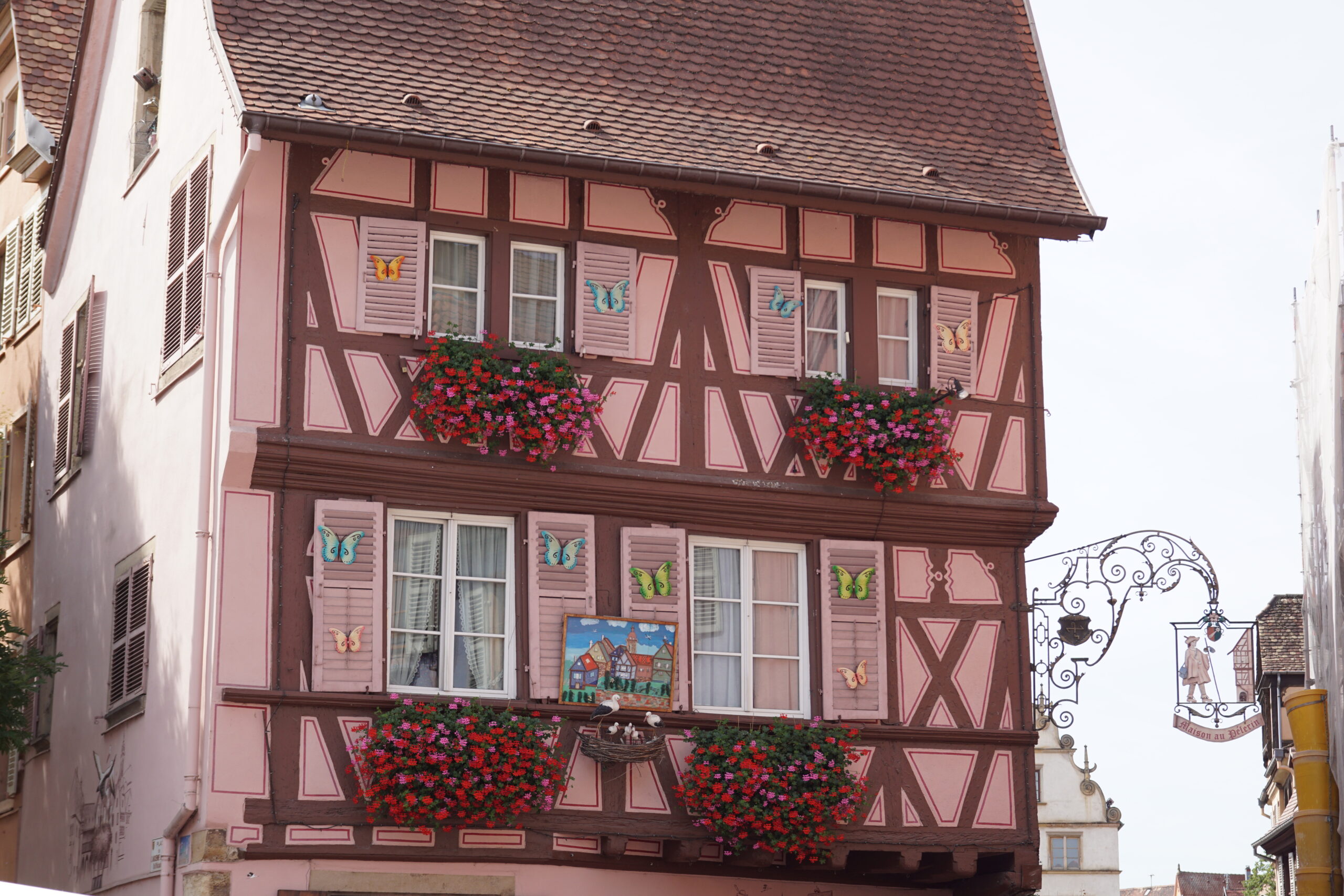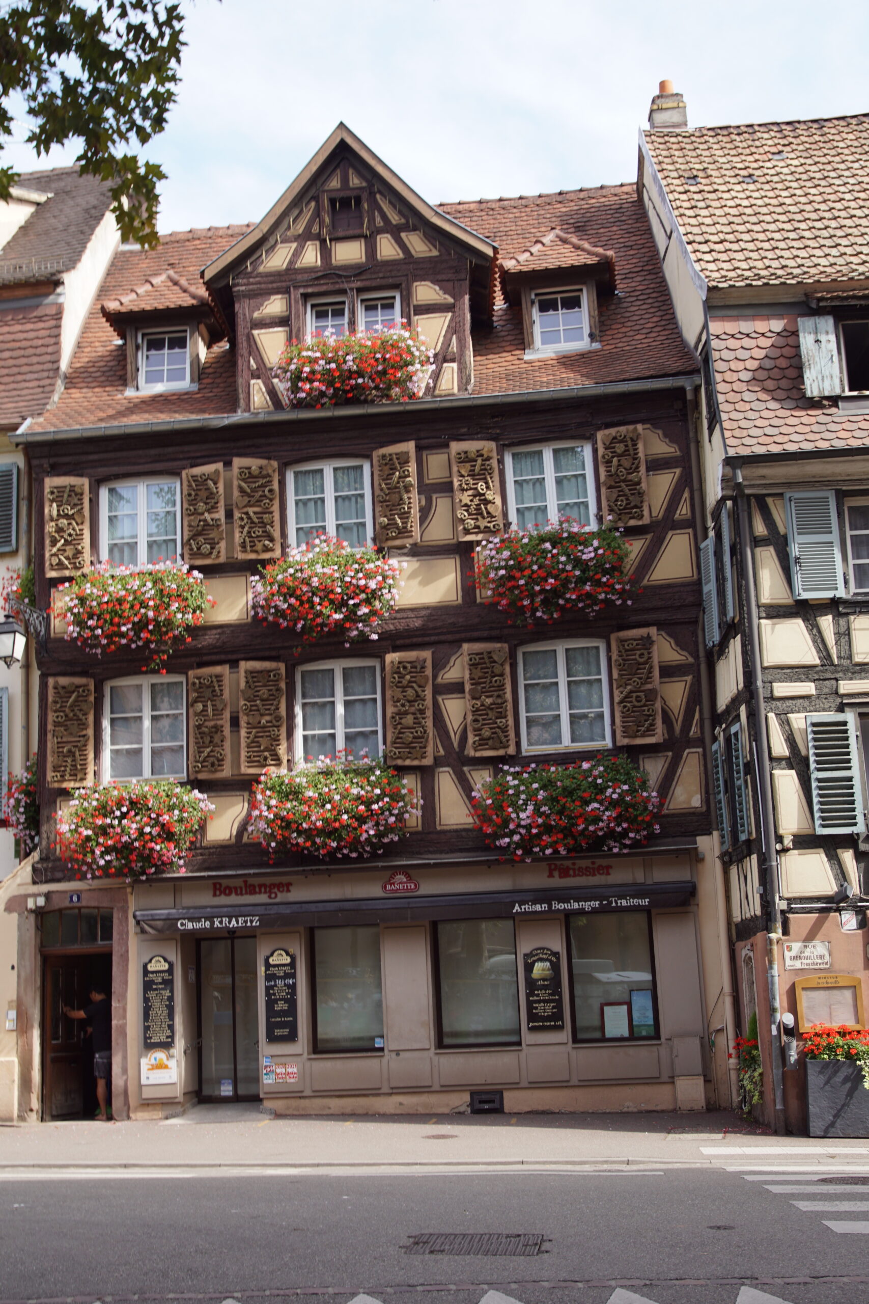 - Une boulangerie primée « Kouglof » est à 100m de l’appart. Belle occasion de découvrir les produits locaux. Puis première destination utile : l’Office du tourisme, tout au Nord, donc à l’autre bout du centre historique (1km) en démarrant par la Petite Venise (à 100m), à travers de très jolies rues et ruelles, maisons fleuries, colombages, enseignes, etc. La panoplie de l’Alsace dans toute sa splendeur car il fait beau. Bon accueil et achat du Pass/7 activités à 32€ au lieu de 52,50€ à l’unité.