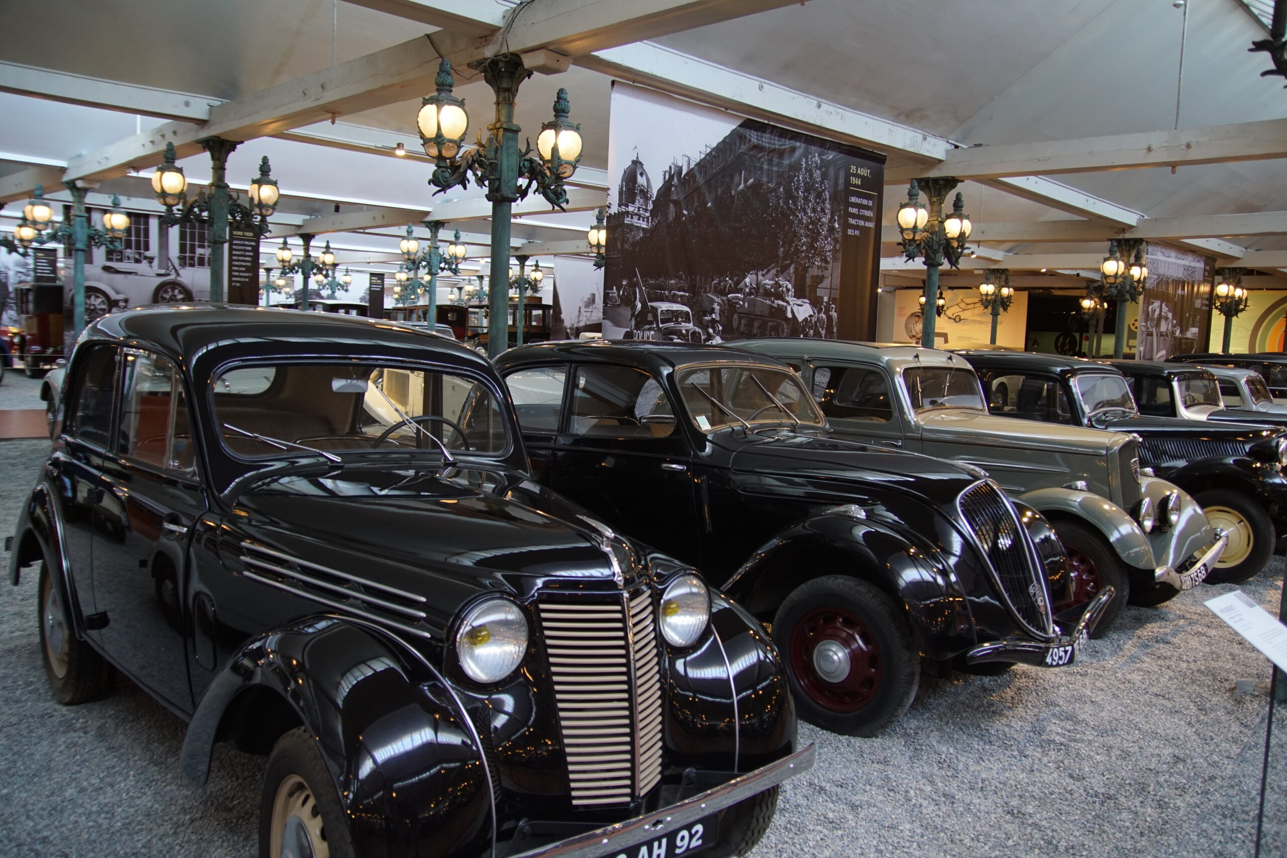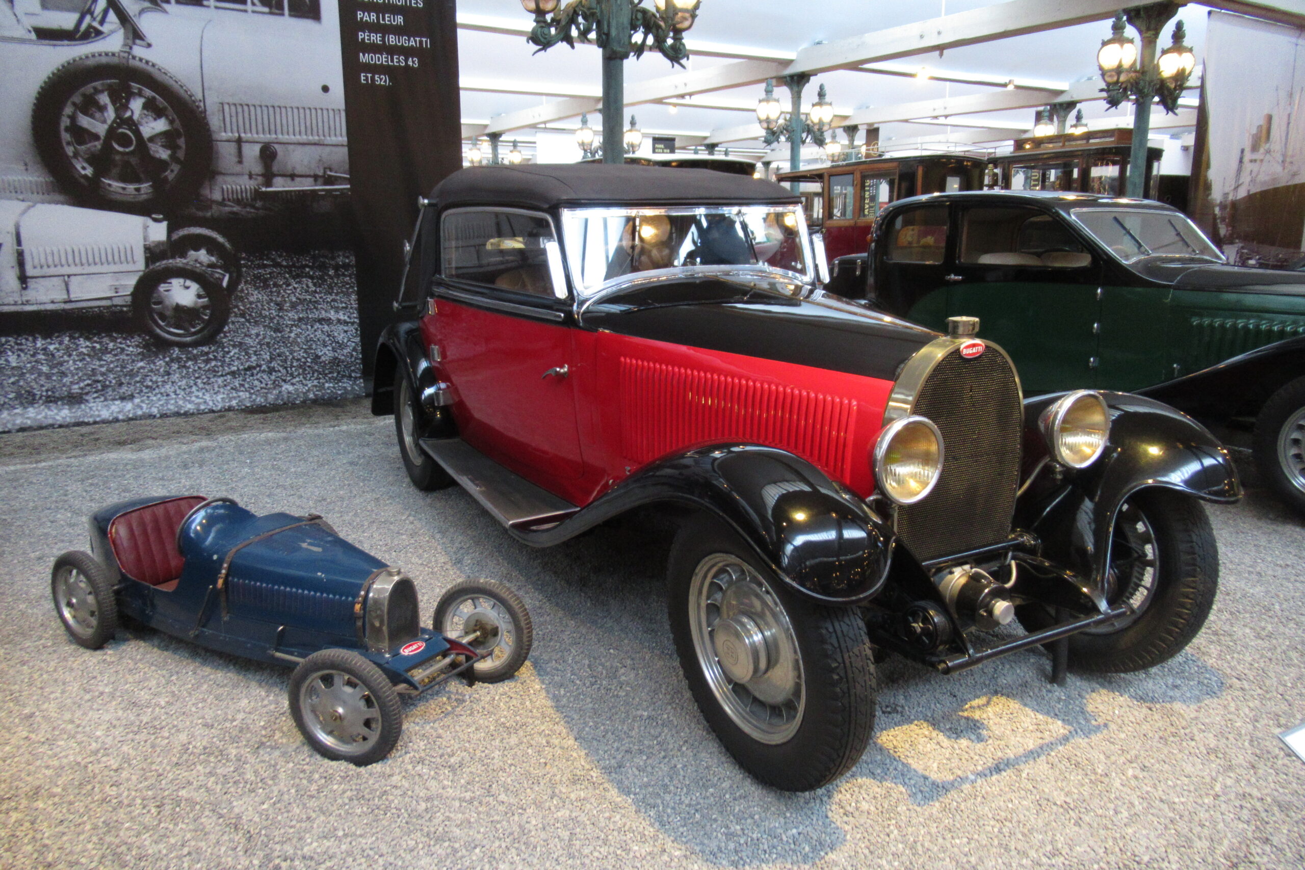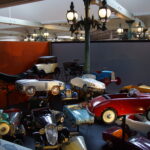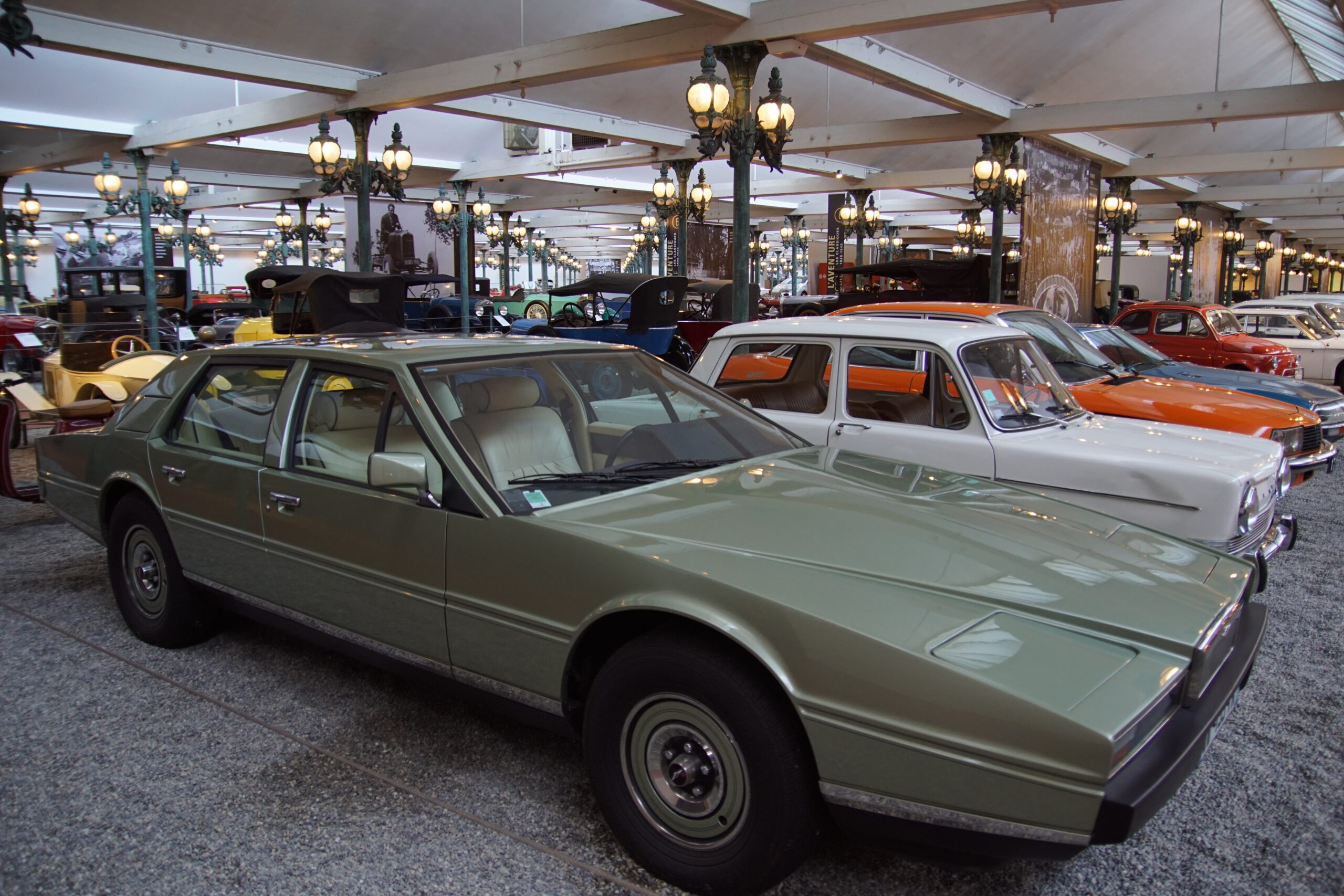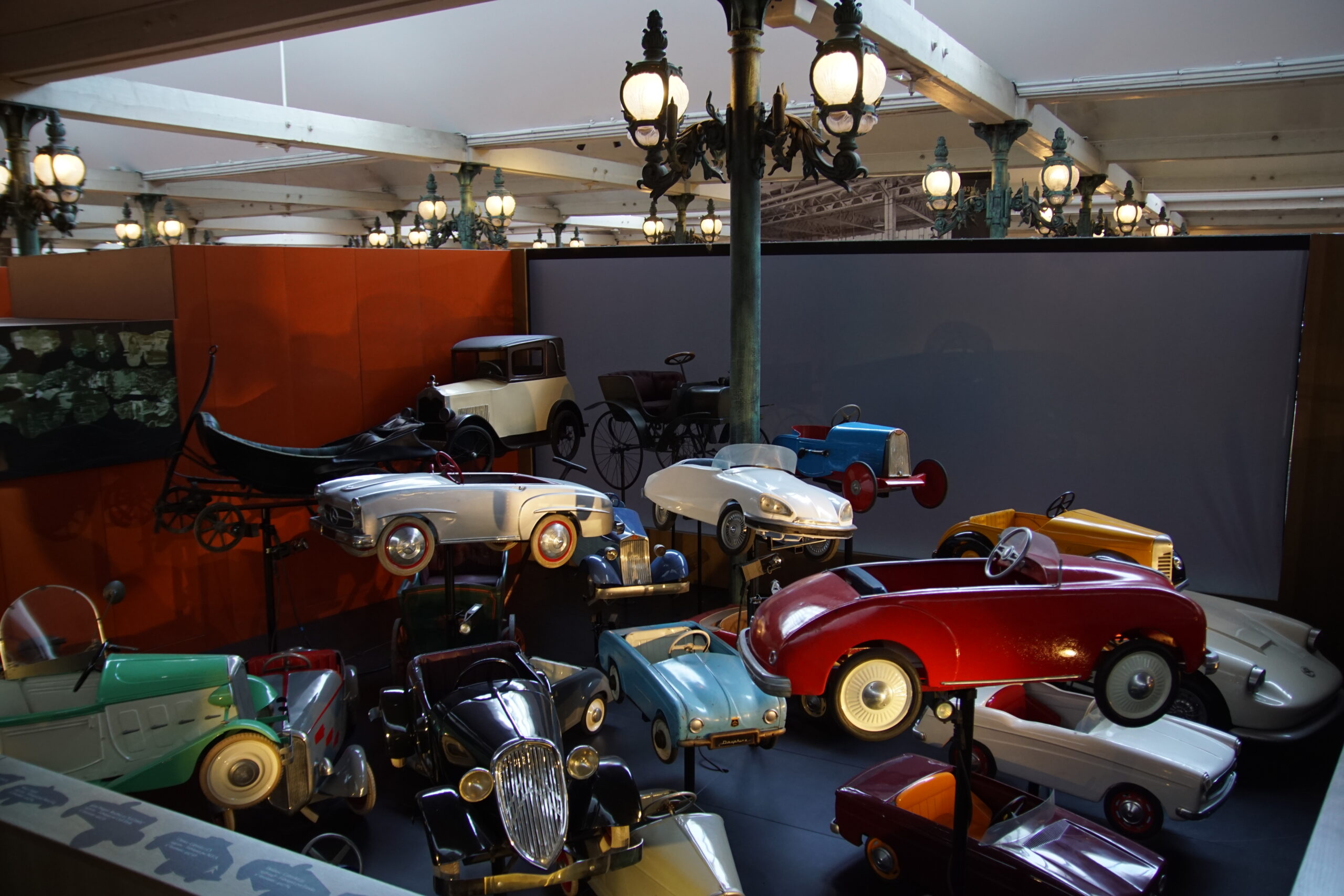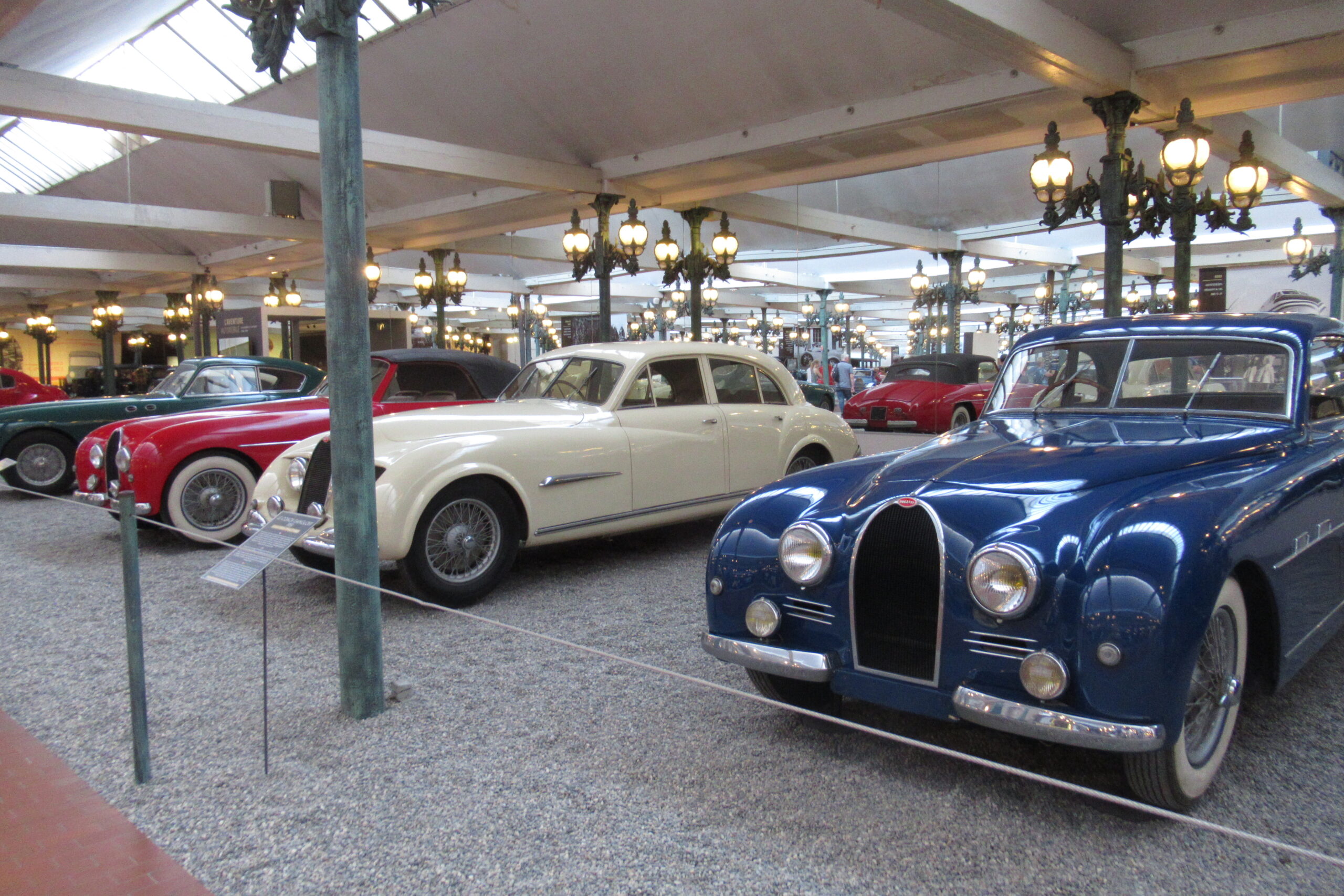 • La « Grande Salle » de 17.000m2 est ornée de 800 lampadaires à la façon du pont Alexandre-III à Paris… c’est saisissant ! et il y a près de 400 modèles qui sont présentés, dont la rétrospective « De Funès », les voitures pour enfants, les modèles de course, etc. Arrivés à 10h30 nous sommes ressortis à 13h00, mais un passionné libre de son temps peut y passer la journée (il y a un restaurant !).