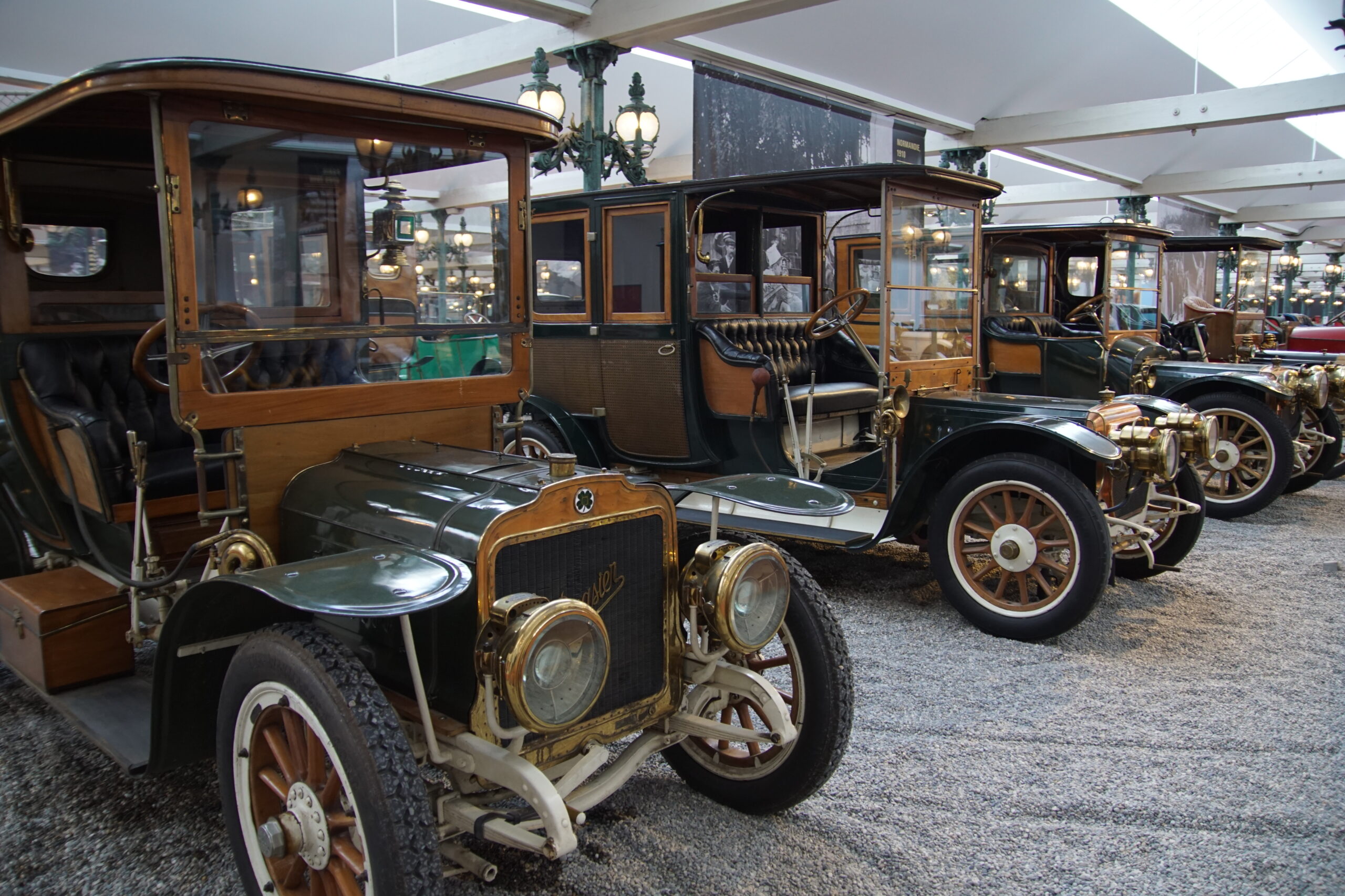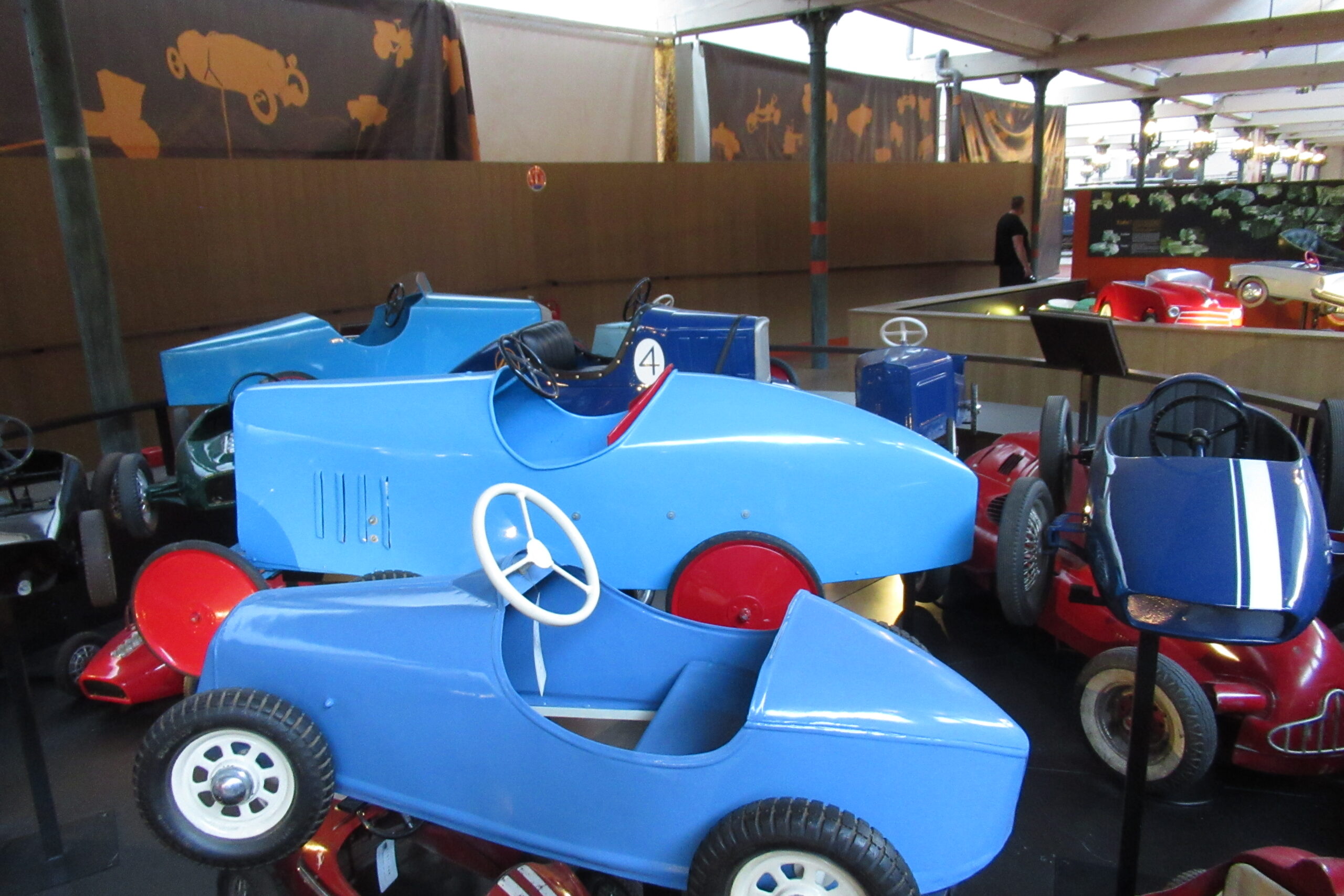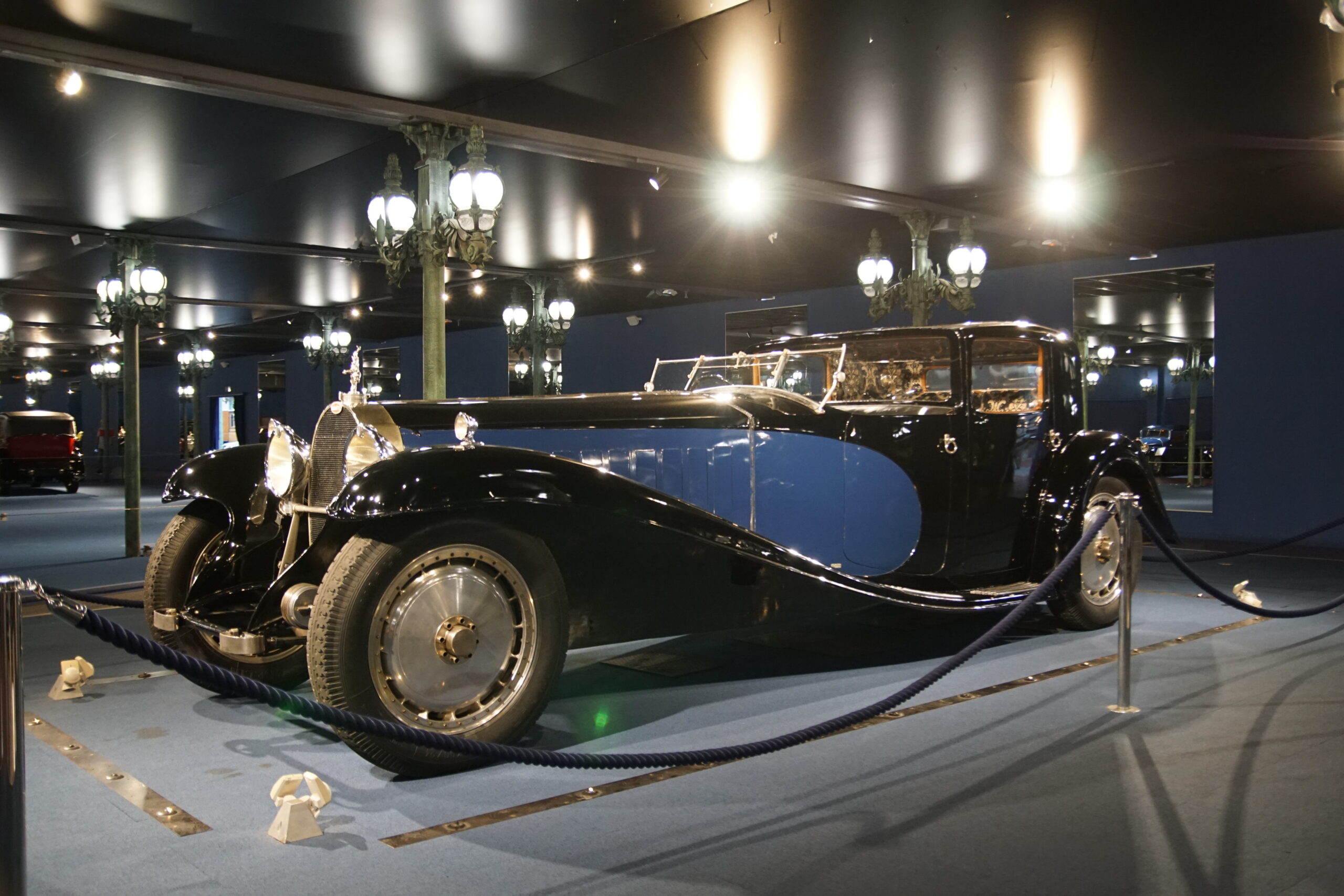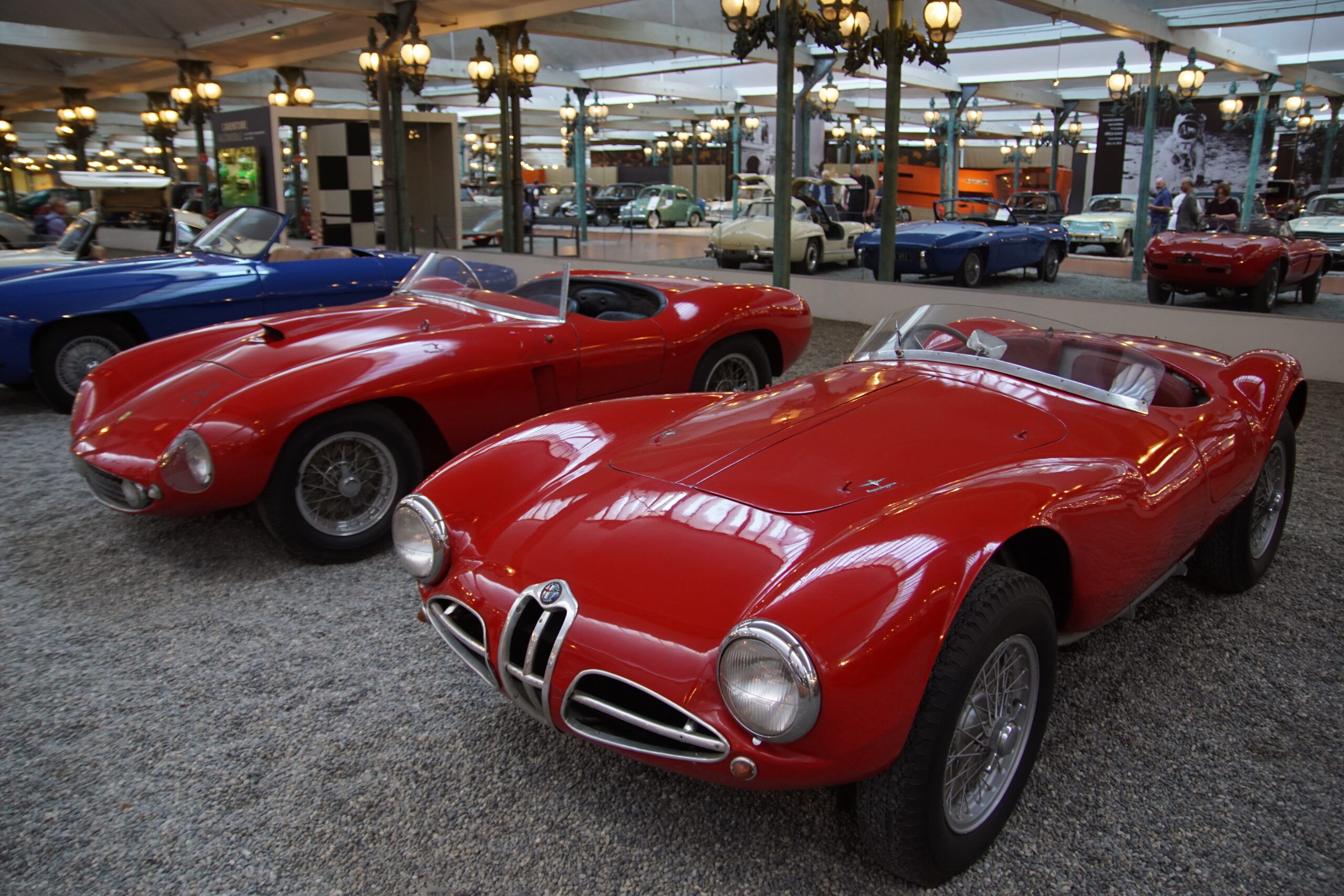 • La « Grande Salle » de 17.000m2 est ornée de 800 lampadaires à la façon du pont Alexandre-III à Paris… c’est saisissant ! et il y a près de 400 modèles qui sont présentés, dont la rétrospective « De Funès », les voitures pour enfants, les modèles de course, etc. Arrivés à 10h30 nous sommes ressortis à 13h00, mais un passionné libre de son temps peut y passer la journée (il y a un restaurant !).