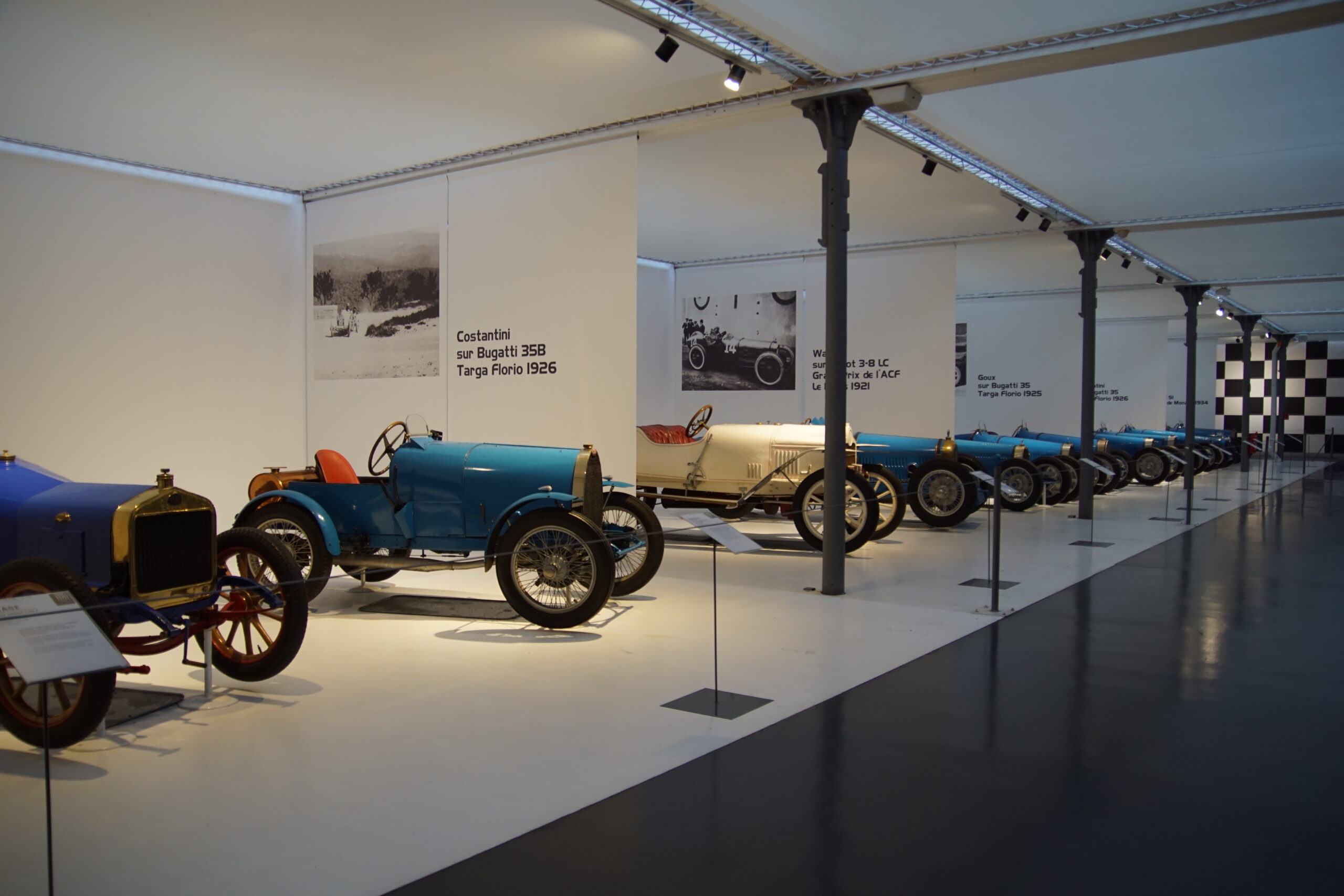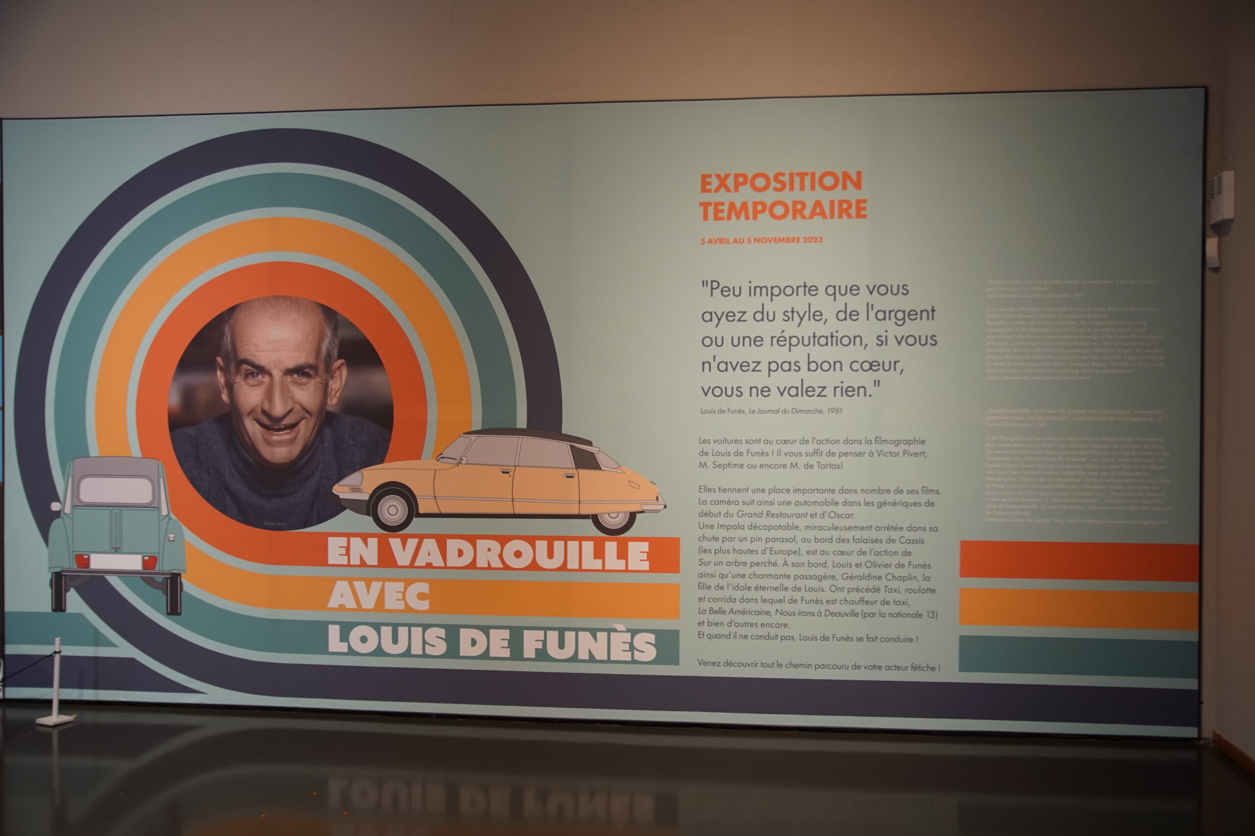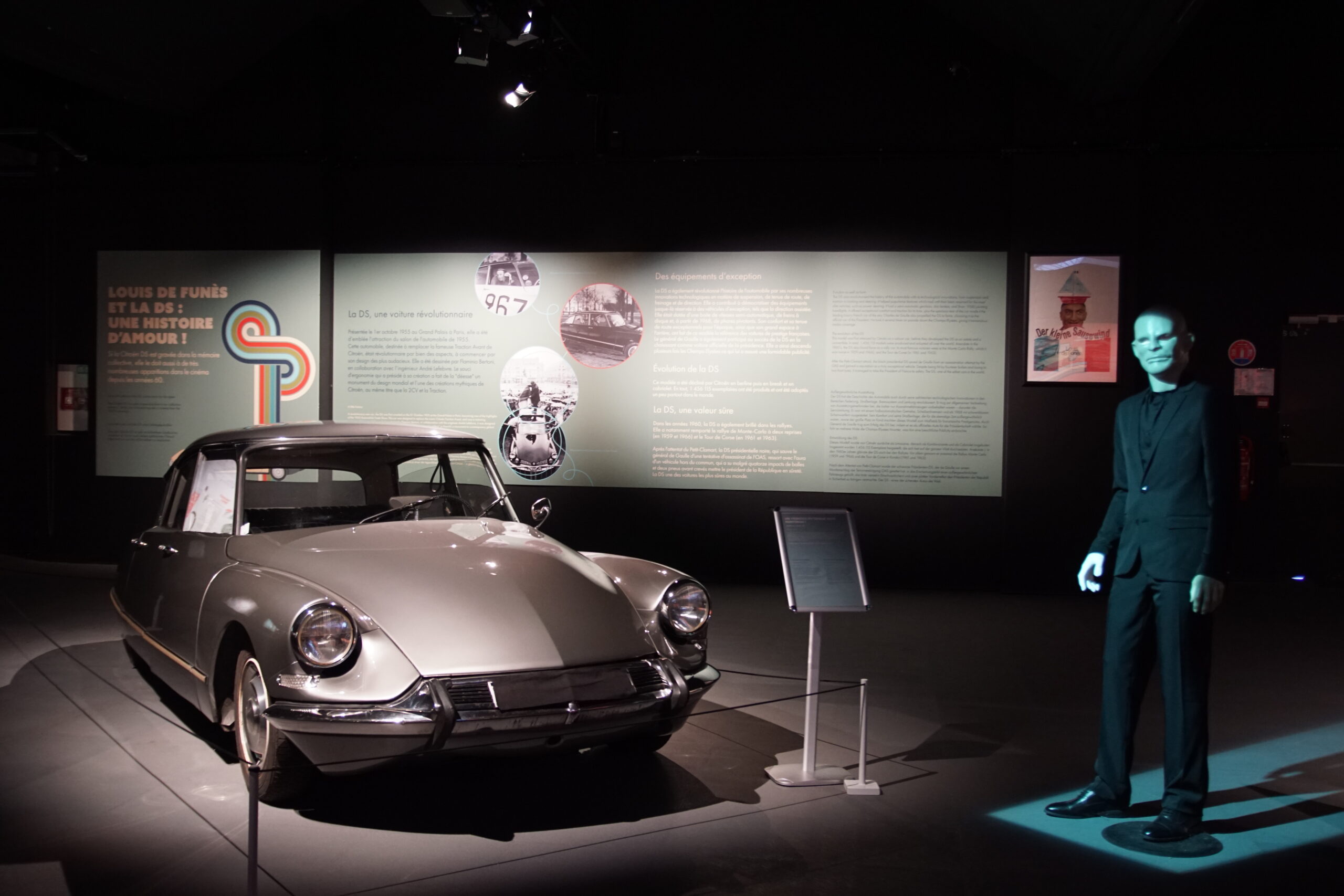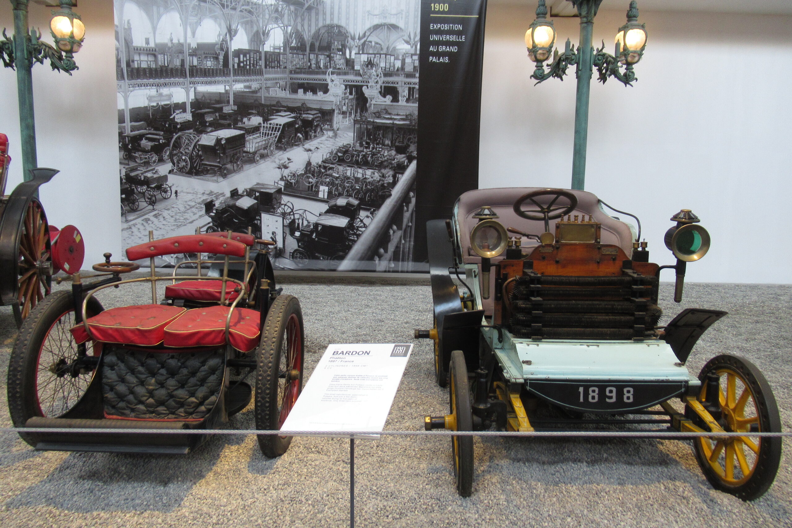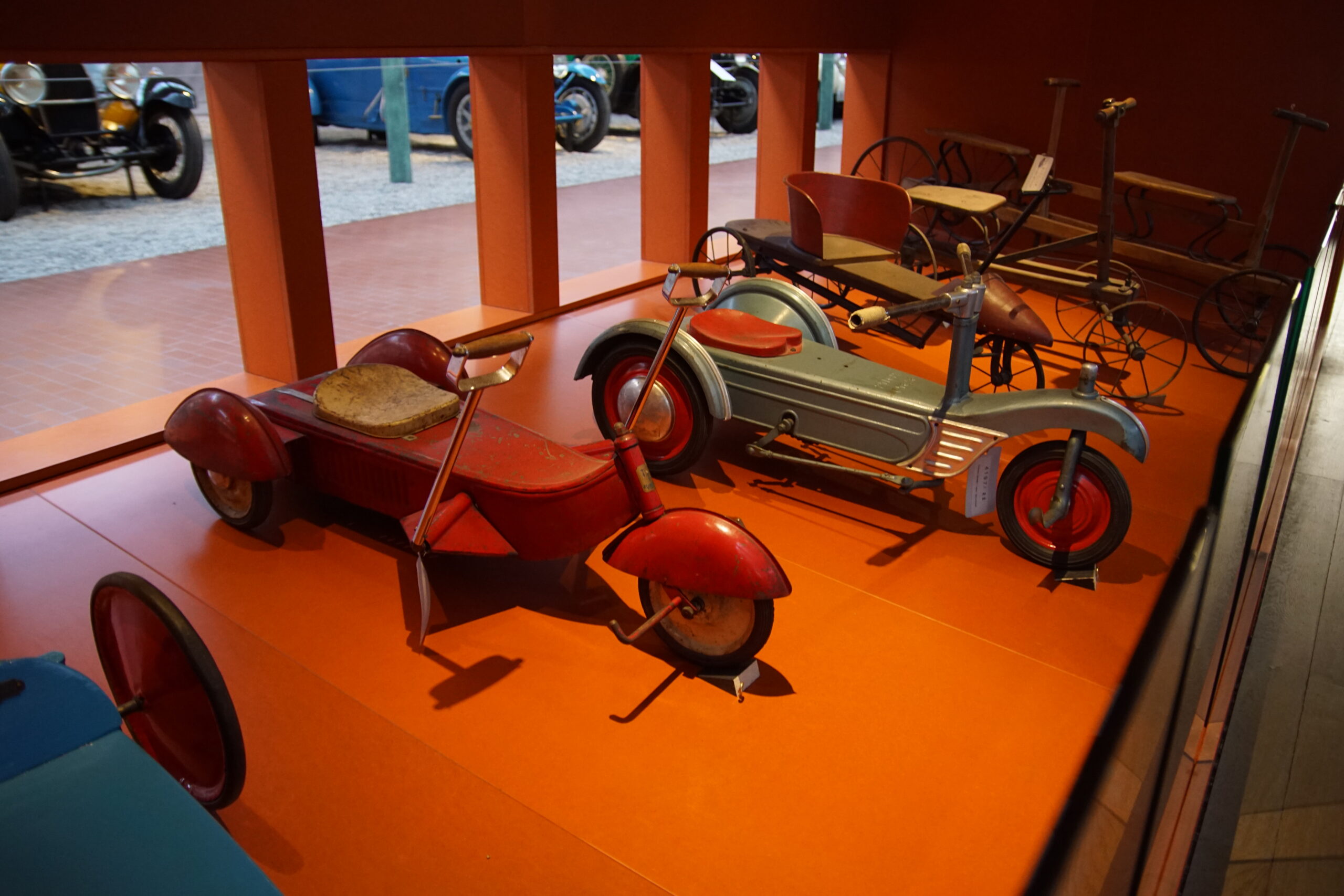 • La « Grande Salle » de 17.000m2 est ornée de 800 lampadaires à la façon du pont Alexandre-III à Paris… c’est saisissant ! et il y a près de 400 modèles qui sont présentés, dont la rétrospective « De Funès », les voitures pour enfants, les modèles de course, etc. Arrivés à 10h30 nous sommes ressortis à 13h00, mais un passionné libre de son temps peut y passer la journée (il y a un restaurant !).
