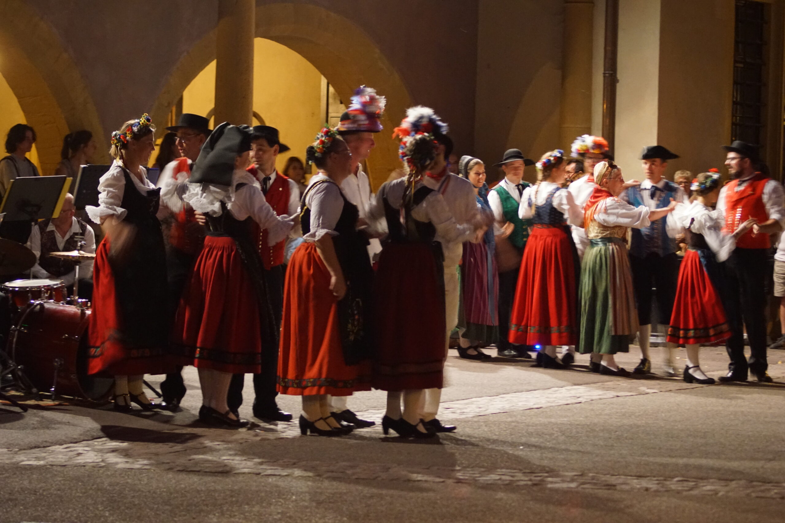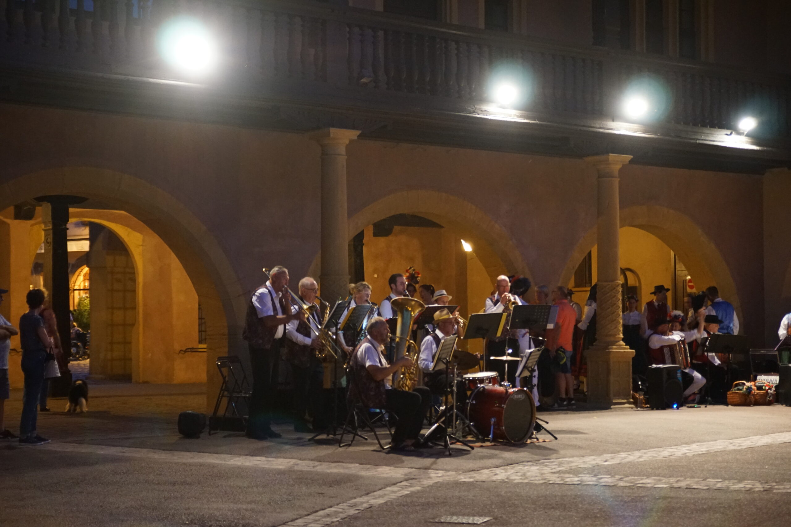 • Retour à l’appartement à 32km/30mn où après le dîner nous repartons en ville (derrière le Koïfhus) pour assister au spectacle nocturne de danses et musique traditionnelle Alsacienne. Sympa.
