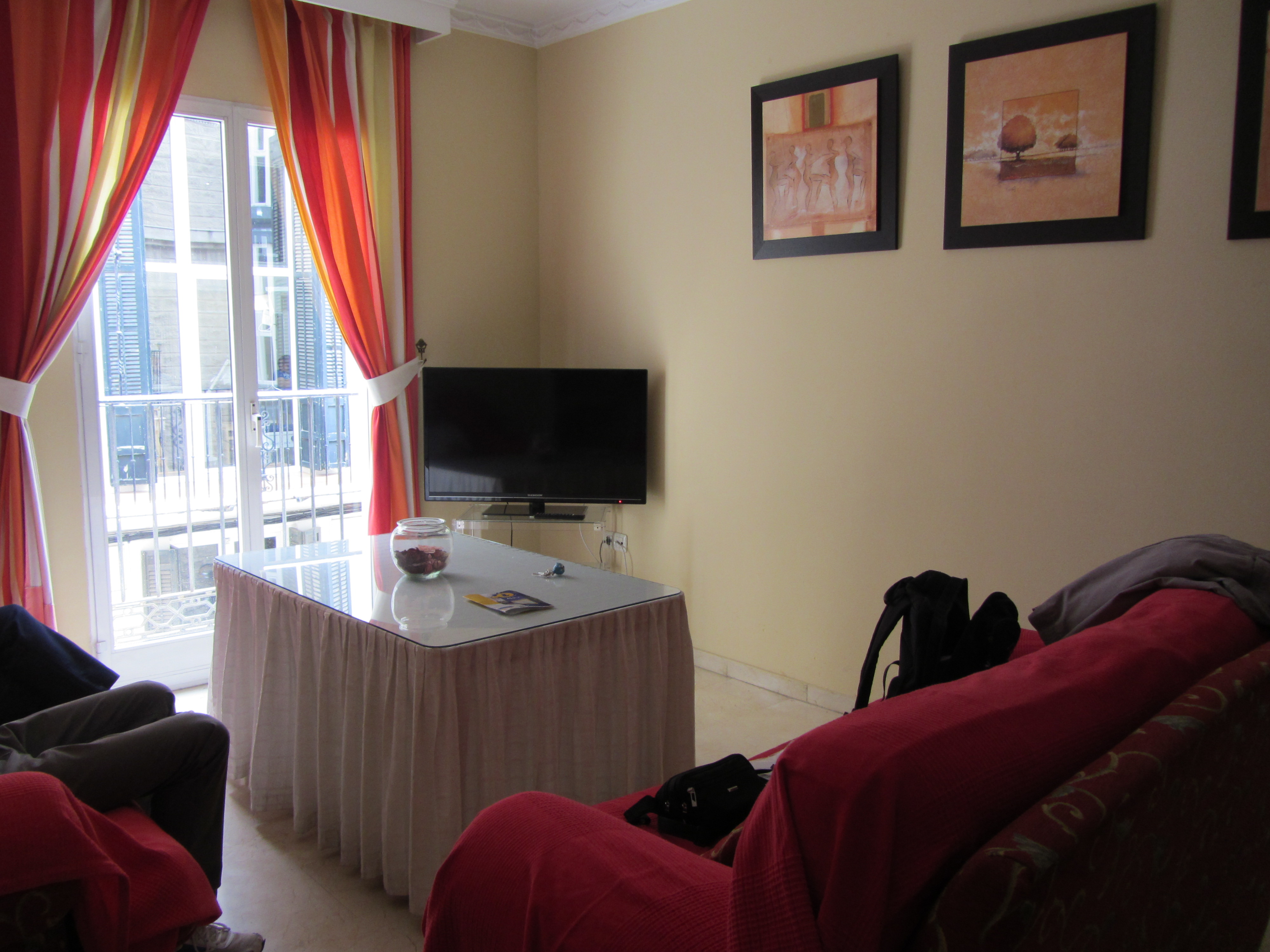 • J01 de Bruxelles à Malaga: vendredi 13 Mai 2016, arrivée à 14h40 puis taxi vers Atarazanas hôtel, près du marché couvert en centre-ville. Au lieu de la chambre triple pour 2 nuits, on nous propose un appartement à 100m (2 chambres, cuisine, salon) dans un immeuble calme le WE (cabinets de médecins, avocat), sympa. Balades en ville, visite guidée en Français du Musée du Verre et du cristal** (16€/3pers. très intéressant). Nombreuses rues piétonnes animées, ville très agréable***. Repas végétarien au El Calafate (menu complet avec boissons à 40,60€/3 pers.).