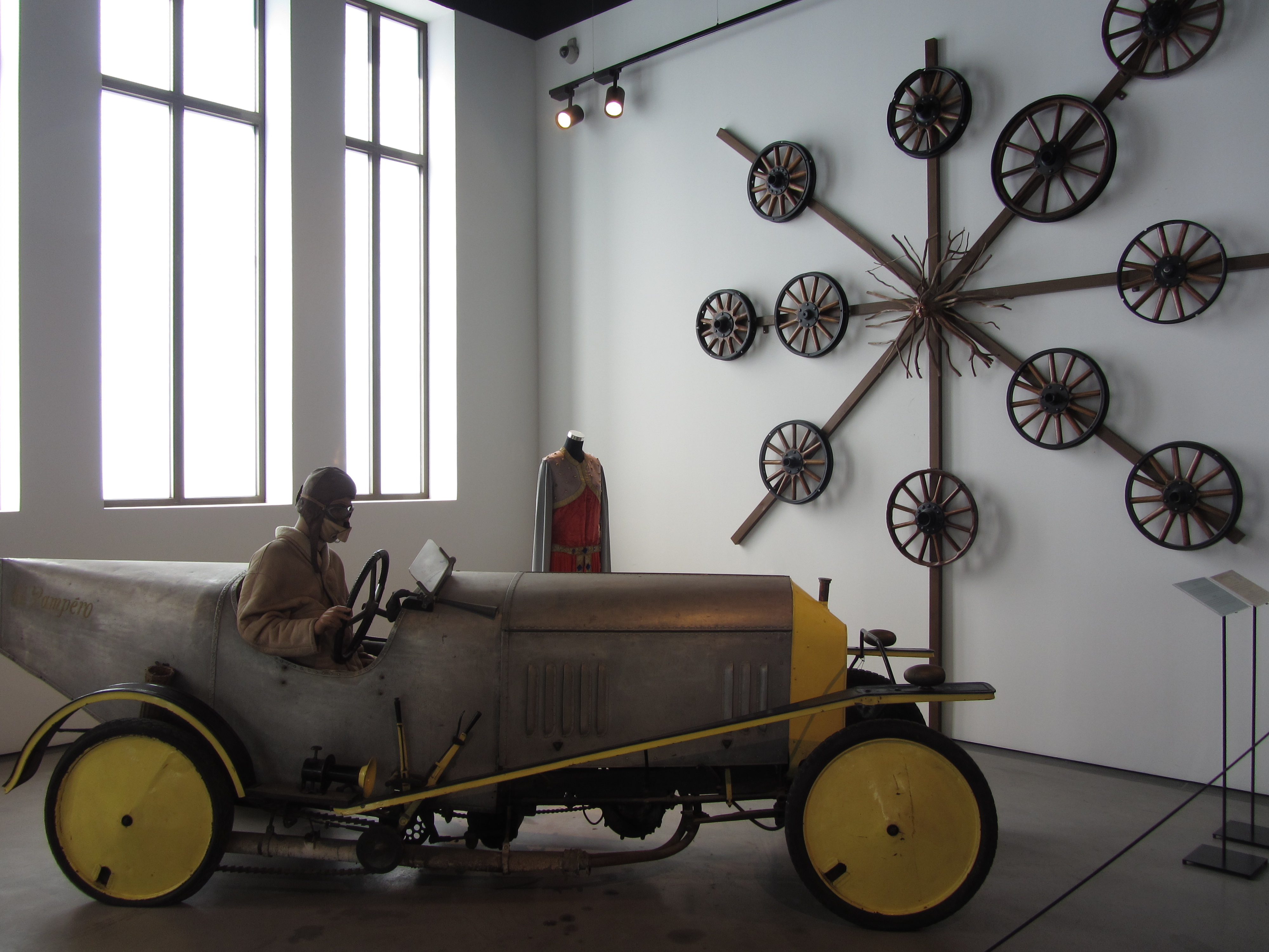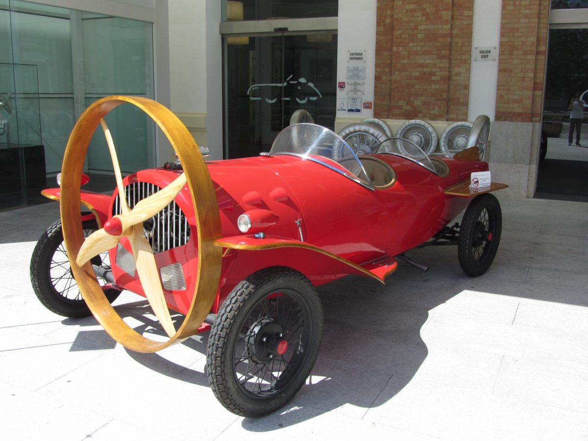 - J02 à Malaga: samedi 14, voir le marché couvert* puis prendre le bus 35 vers le château de Gibralfaro* qui ne passe pas avant 11h00 (!), donc nous partons à pieds à travers le Paseo Parque** avec ses arbres et ses fleurs avant d’entamer la montée pentue vers le Mirador* puis le centre d’interprétation* du château (2,5km), le billet est combiné avec l’Alcazaba** à 7,70€/3 pers. Belles vues depuis ces 2 forteresses, passage devant le théâtre romain* et repas en terrasse au Plaza, place Merced**. L’après-midi, 4km en bus 16 vers le Museo Automovilistico*** photo ci-dessus, un musée automobile et mode de toute beauté ! le must à 16,50€/3 pers. superbement aménagé dans une ancienne usine de tabac. Retour en ville pour les concerts et animations de la « Nuit en Blanc ». Repas végétarien au Alcazabilla près du cinéma Albéniz (bonnes crêpes en dessert à 41,35€/3 pers.).