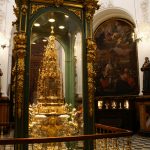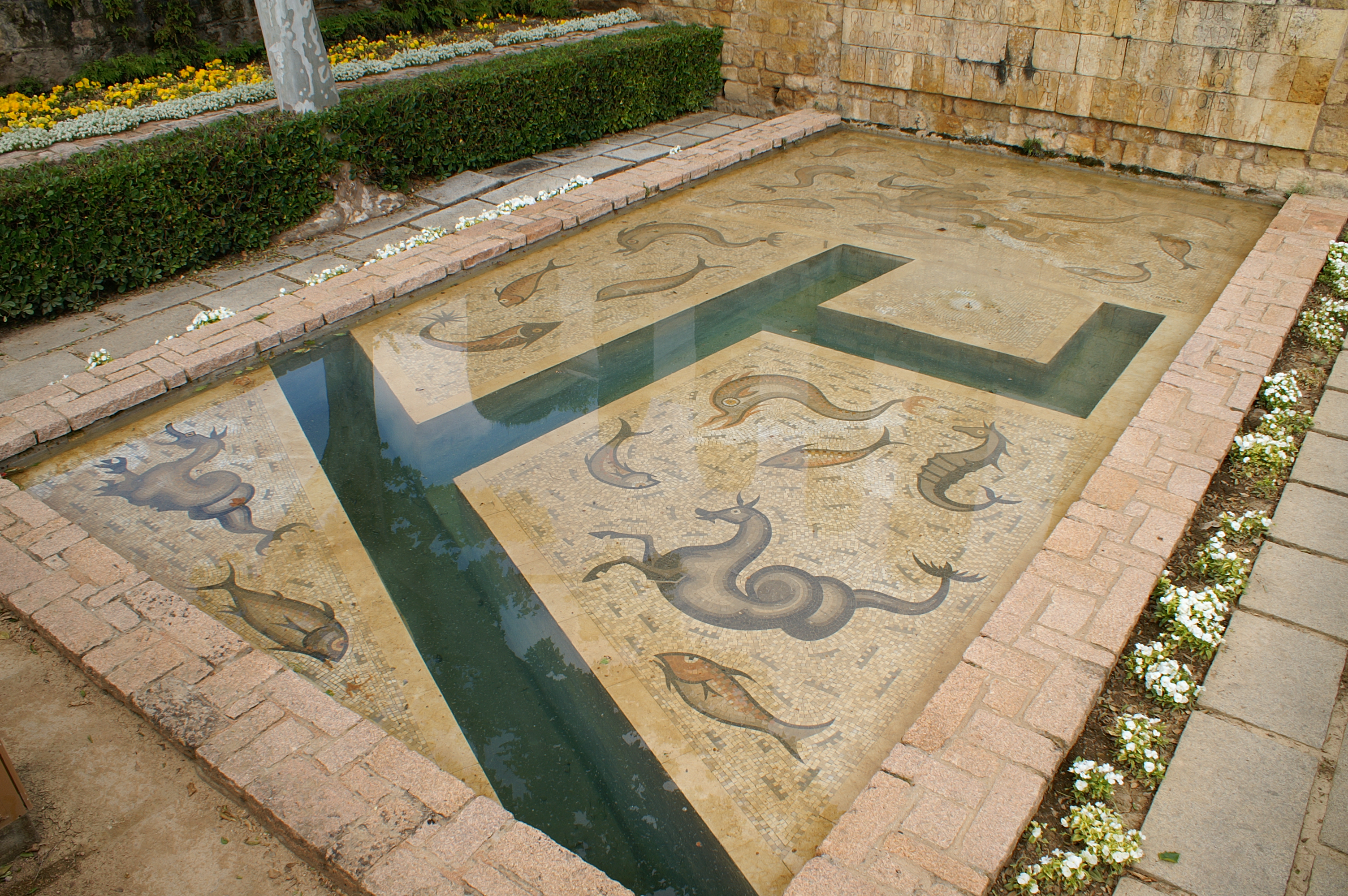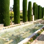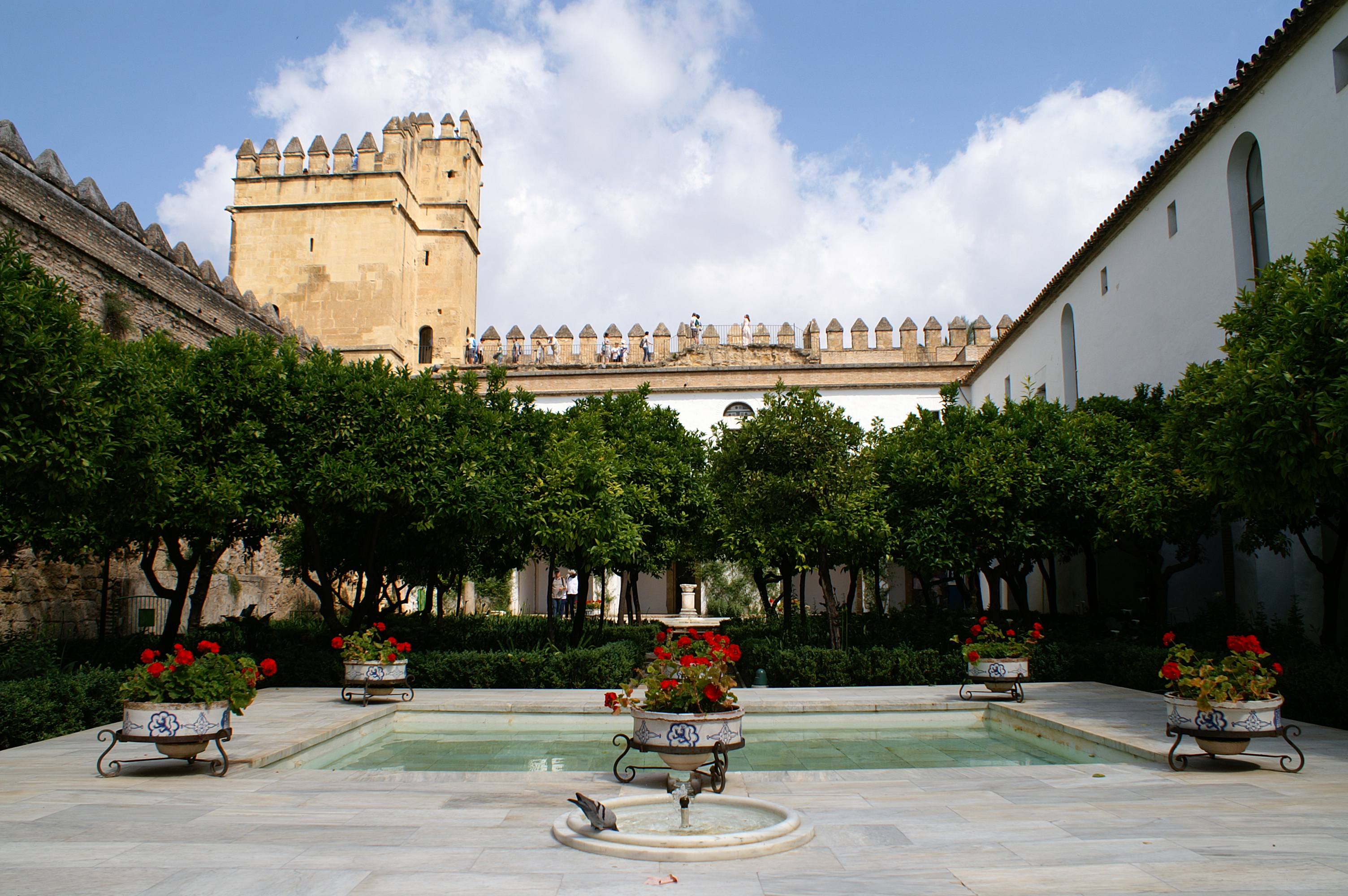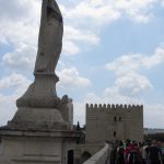 - J10 à Cordoue: dimanche 22 petite balade dans la Juderia dont la synagogue* est d’un faible intérêt avec son musée fermé ! nous continuons par l’extérieur des remparts** et à 10h45 on entre dans l’Alcazar des Rois Chrétiens*** photo ci-dessus, pour en sortir à 12h00 : une forteresse, des palais et surtout de très beaux jardins (13,50€/3 pers.). Nous traversons alors le Guadalquivir par le pont romain* vers la Tour de la Calahorra et son superbe musée*** (scénographie et maquettes pour 12€/3 pers.). Apéro juste en face et après un pique-nique improvisé en chambre (et une sieste…) nous repartons… encore vers La Mezquita pour une 2ème visite mais « de jour » et tranquillement de 17h15 à 18h30 (24€/3 pers.). Peu de photos prises (155) et peu présentées (12) car c’est dans le regard et le coeur que cet endroit se visite. Mosquée édifiée à partir de l’an 786 elle est la 2ème plus grande après celle de La Mecque (23000m2 – 180m x 130m après les 3 agrandissements musulmans) et comporte plus de 850 piliers/colonnes. Une cathédrale y fut insérée au 16ème siècle. En soirée, repas oriental au Taberna D’Ucles à 2 pas des remparts (Taboulet/Tajine/Couscous/pâtisseries).