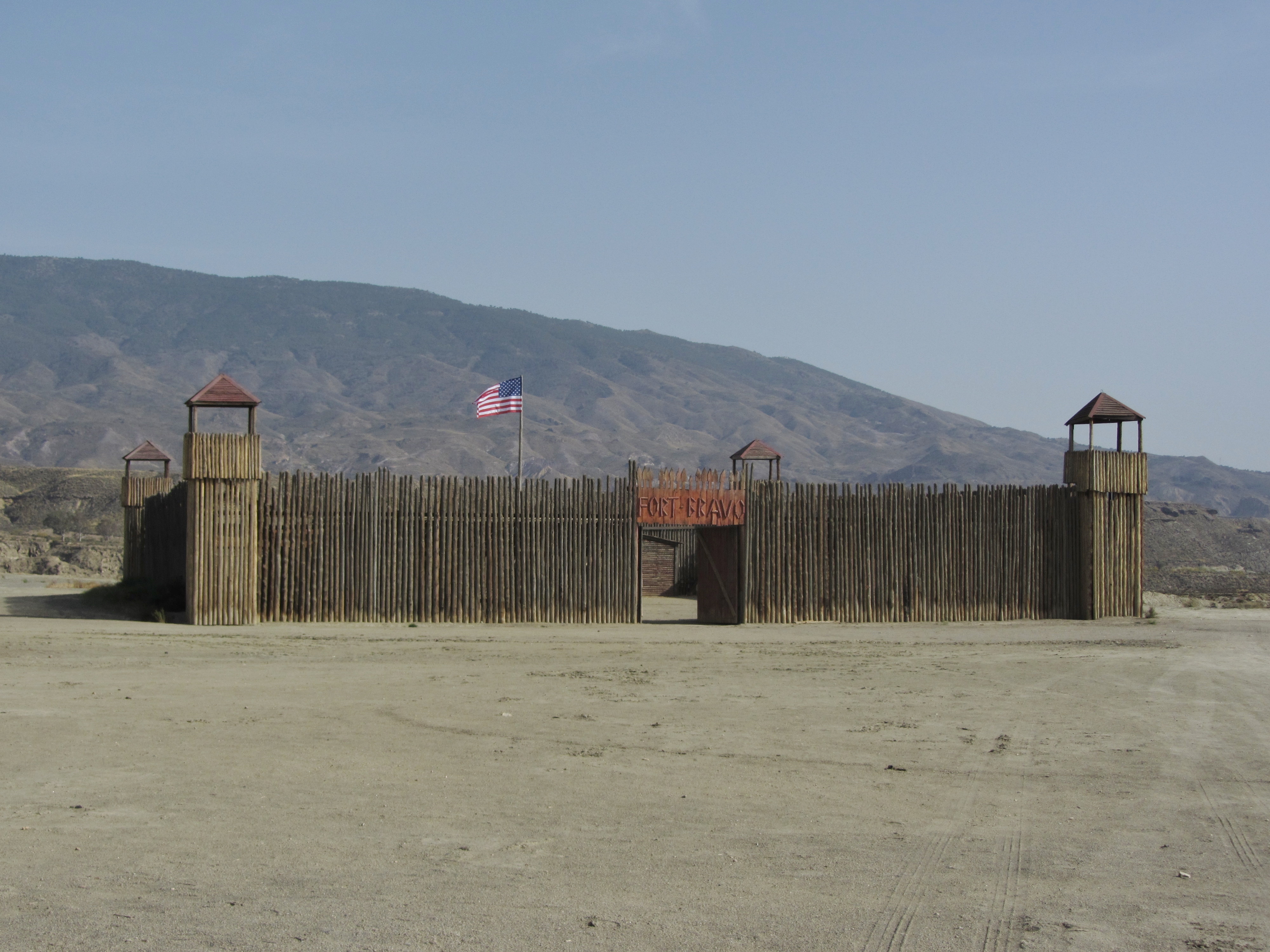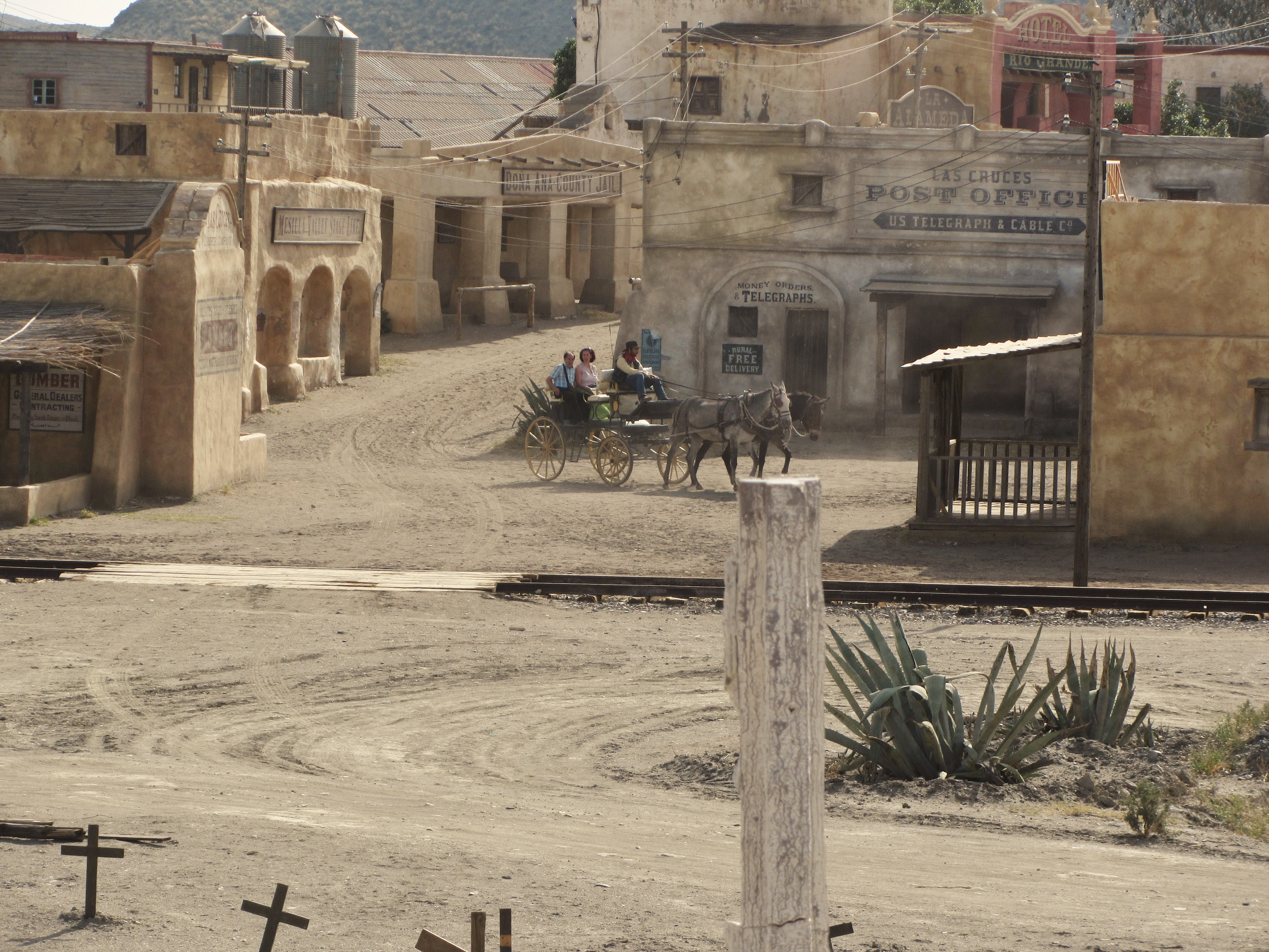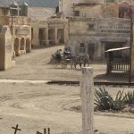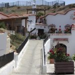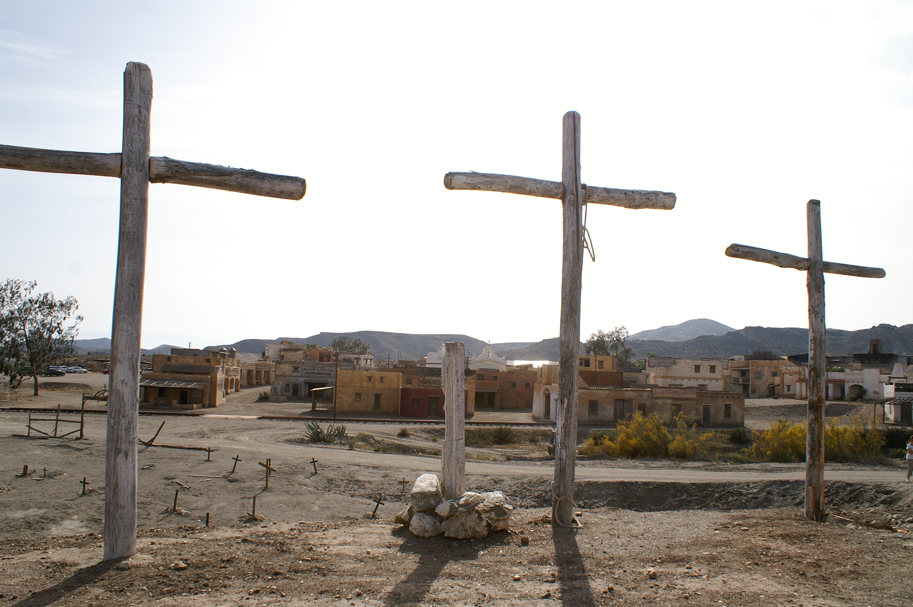 - J12 de Baeza à Tabernas : mardi 24 pour Ubeda à 5km, et cette ville nous inspire plus ! c’est animé est assez joli** mais la Capilla El Salvador* est payante (14€/3 pers.) et moyennement intéressante. La synagogue de l’Eau ne propose que des visites guidées à heure fixe (raté à 5mn près…). Par contre la longue route vers le sud est très belle (des oliviers, des cultures, le désert, les fleurs des talus). Pique-nique à Guadix et visite succincte du site troglodyte** photo ci-dessus. Traversée du désert pour atteindre Tabernas (spectacle cowboy** au Fort Bravo Texas/Hollywood à 16€/pers.), les western spaghetti ont été tournés dans la région, et malgré le peu de spectateurs, le site et le show sont sympas. Chambre d’hôte au Jardin del Desierto avec repas « maison » sur place (un couple charmant dont Monsieur parle Français et cuisine…).
