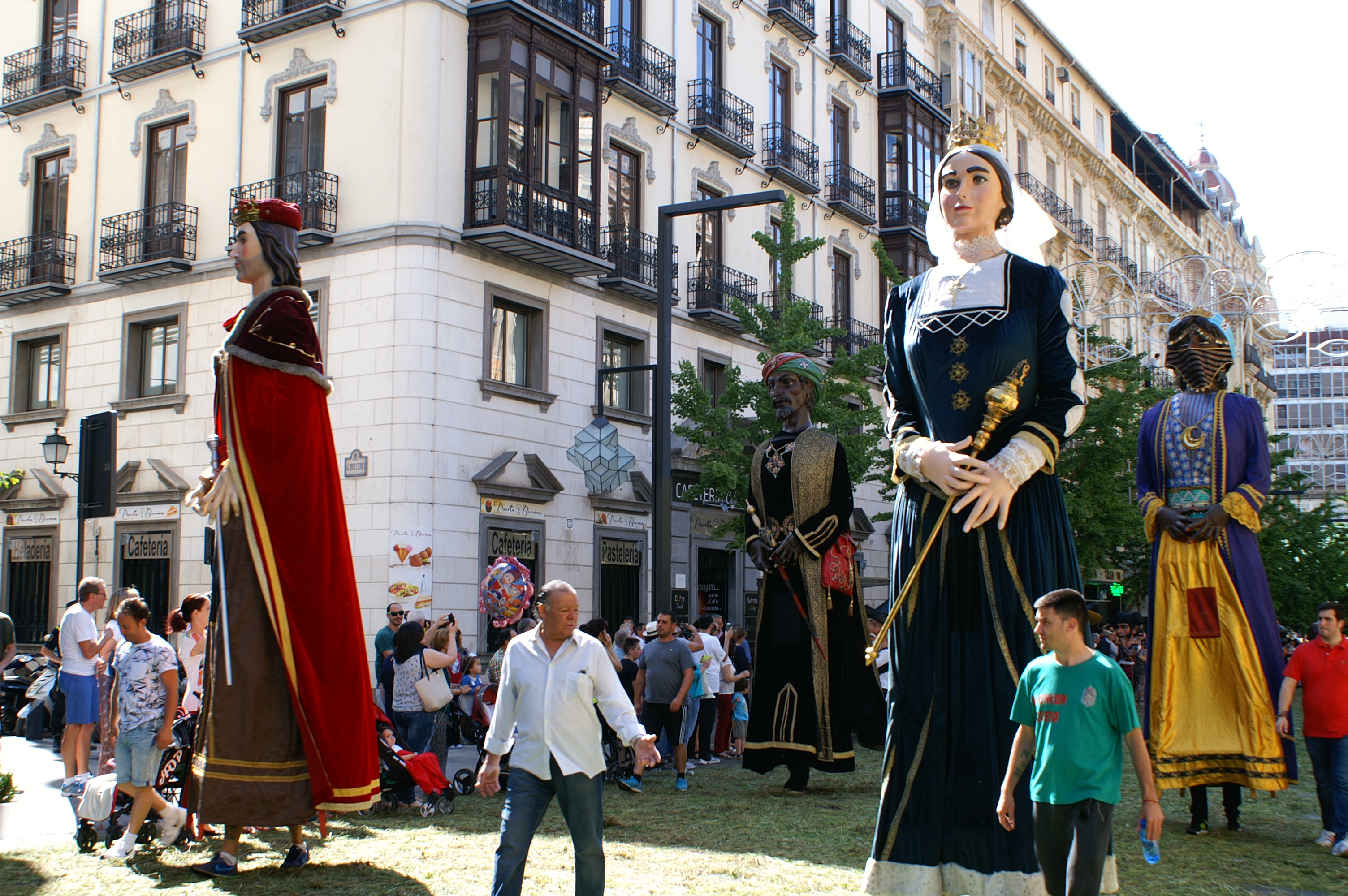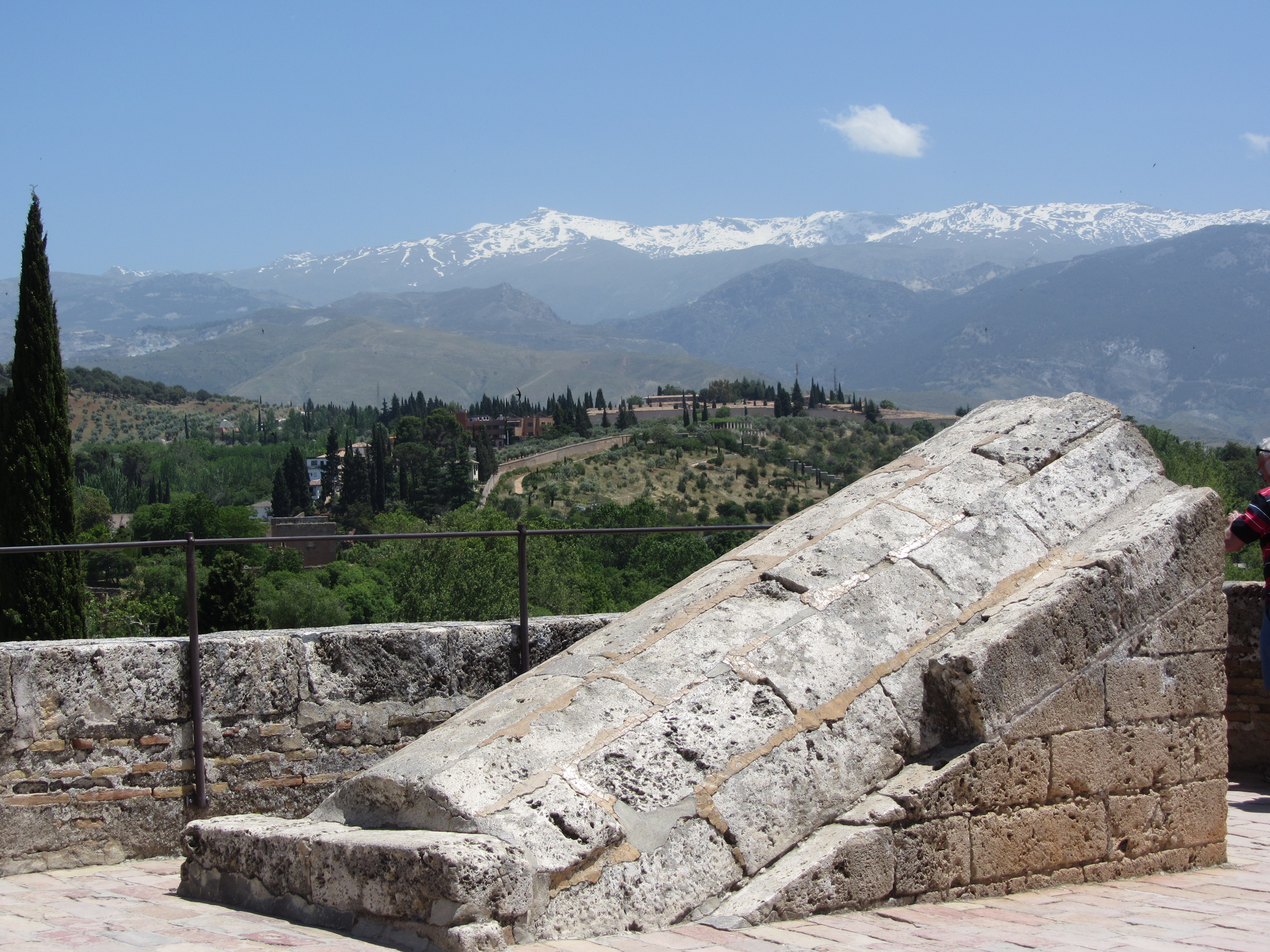 - J14 à Grenade : jeudi 26 jour férié pour la fête du Corpus Christi, avec procession, autels, musique et grandes tenues ! beaucoup de monde depuis la Cathédrale*** vers les rues principales. On en profite pour la visiter quand tout le monde est parti ! puis rapide pique-nique avant de grimper (escaliers pentus) vers l’Alhambra où nous avons réservé sur internet (41,2.€/3pers. entrée de 14h00- palais Nasride à 15h30*** dont la fontaine des Lions, photo ci-dessus). Mais surprise l’entrée n’est plus au début (juste après l’Alcazaba) mais tout au bout, plus haut…près du Généralife ! donc il faut ensuite re-traverser l’ensemble à l’intérieur. D’accord c’est magnifique*** on ne sait pas où poser le regard tellement il y a à voir…et à photographier (380 prises à nous 2, « seulement » 33 présentées ci-dessous) et il faut compter 3h30 sur place pour admirer, méditer et souffler + 30mn aller et 20mn retour. Repas Italien au Vida Xtra dont le spectacle est en live aux fourneaux.