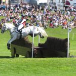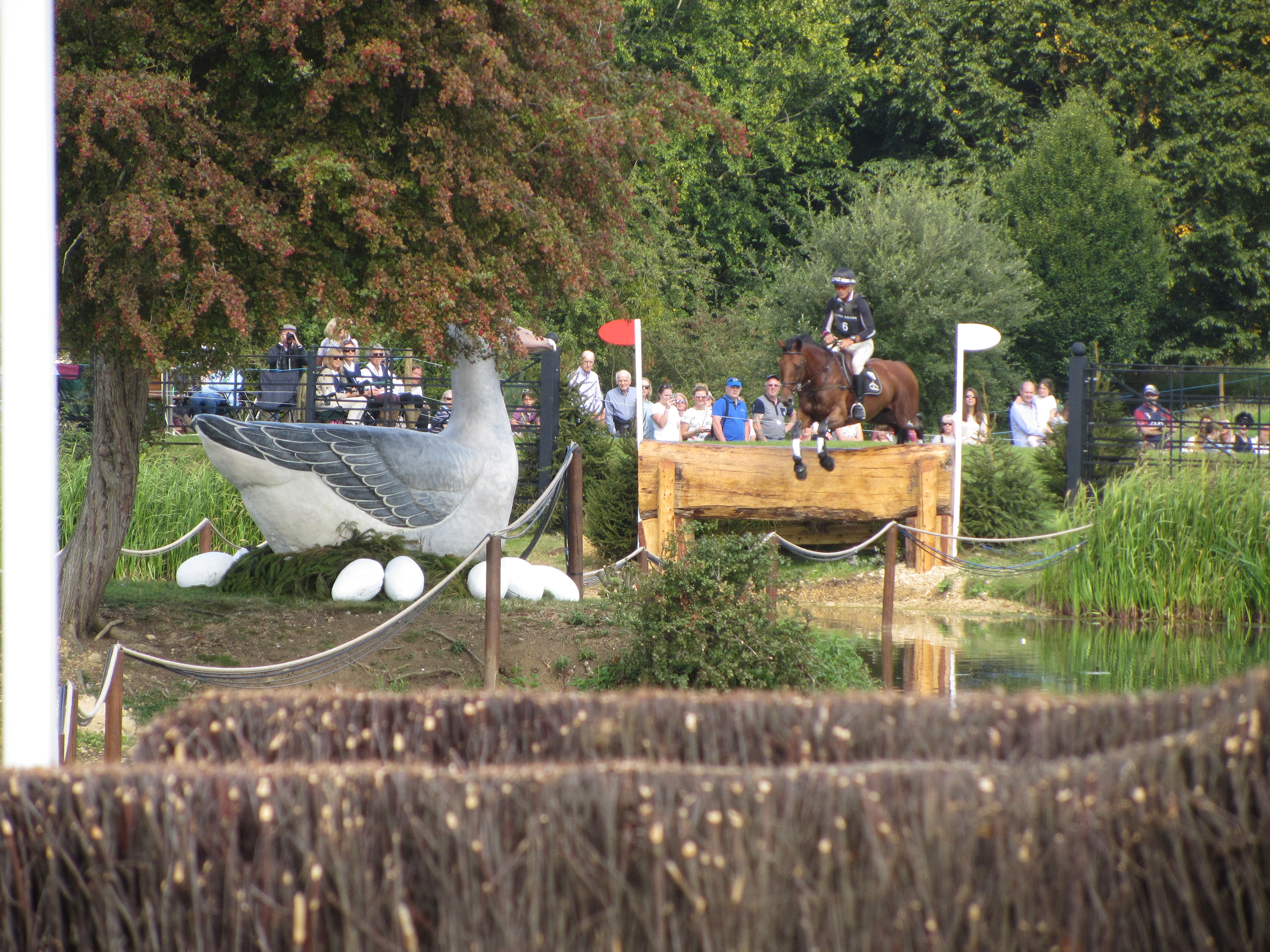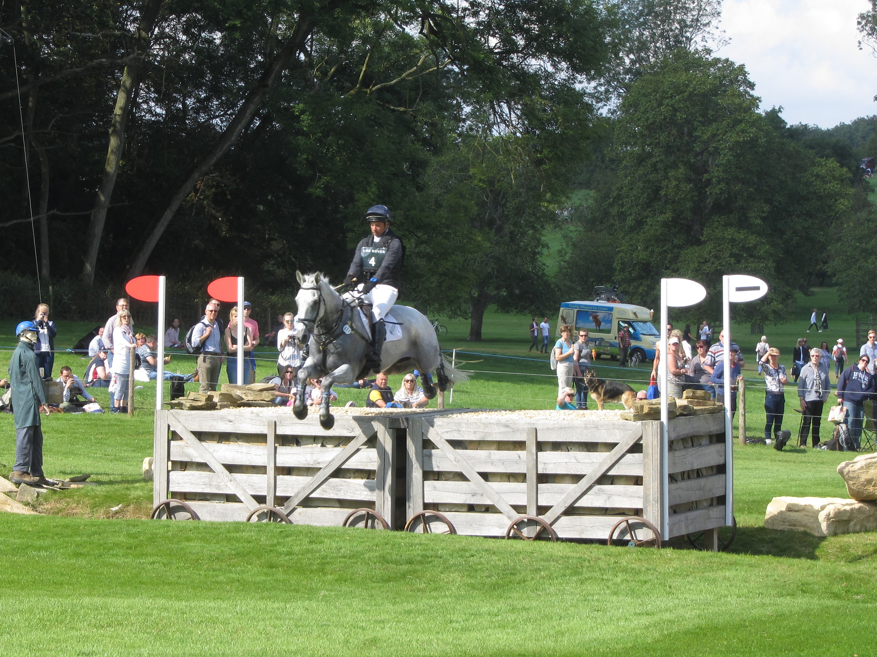 - La partie Cross Test comporte 34 obstacles de cross (48 sauts) sur 6450m en 11 minutes 20 environ. Superbe terrain assez vallonné. De l’avis des spécialistes, le chef de piste depuis 25 ans (Captain Mark Phillips, excusez du peu…), y concocte des obstacles costauds et là il a mis le paquet sur certains oxers ou des combinaisons où il ne fallait pas être timide… Sous un beau soleil, ce fut superbe !