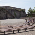 - Puis vers l’Ouest à 17km/25mn, nous nous posons au parking gratuit à 150m de l’entrée de la Ville Close*** de Concarneau. Le soleil est là et les touristes aussi. Belle promenade à l’aller dans les rues commerçantes, puis depuis le haut des remparts au retour. Pique-nique sur le parking.