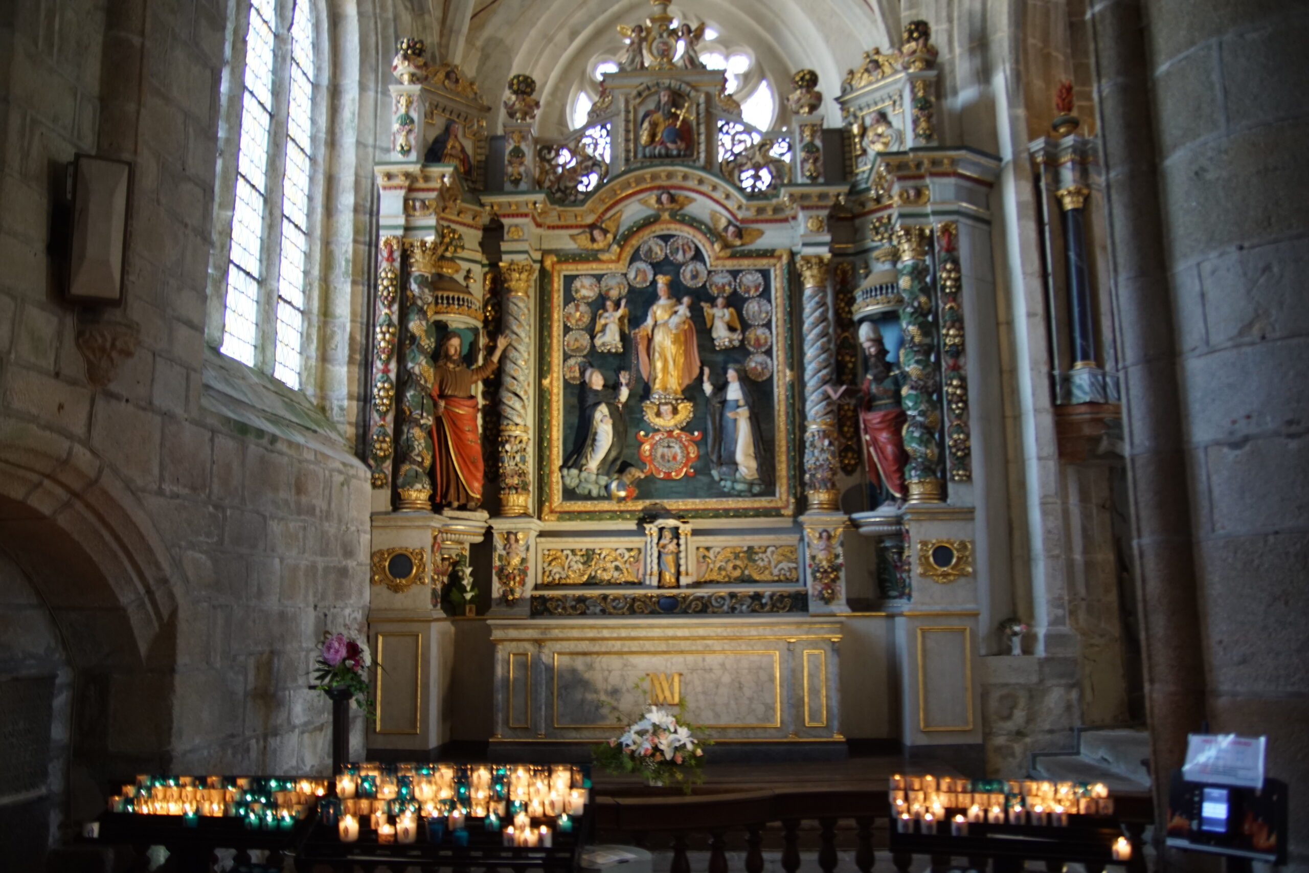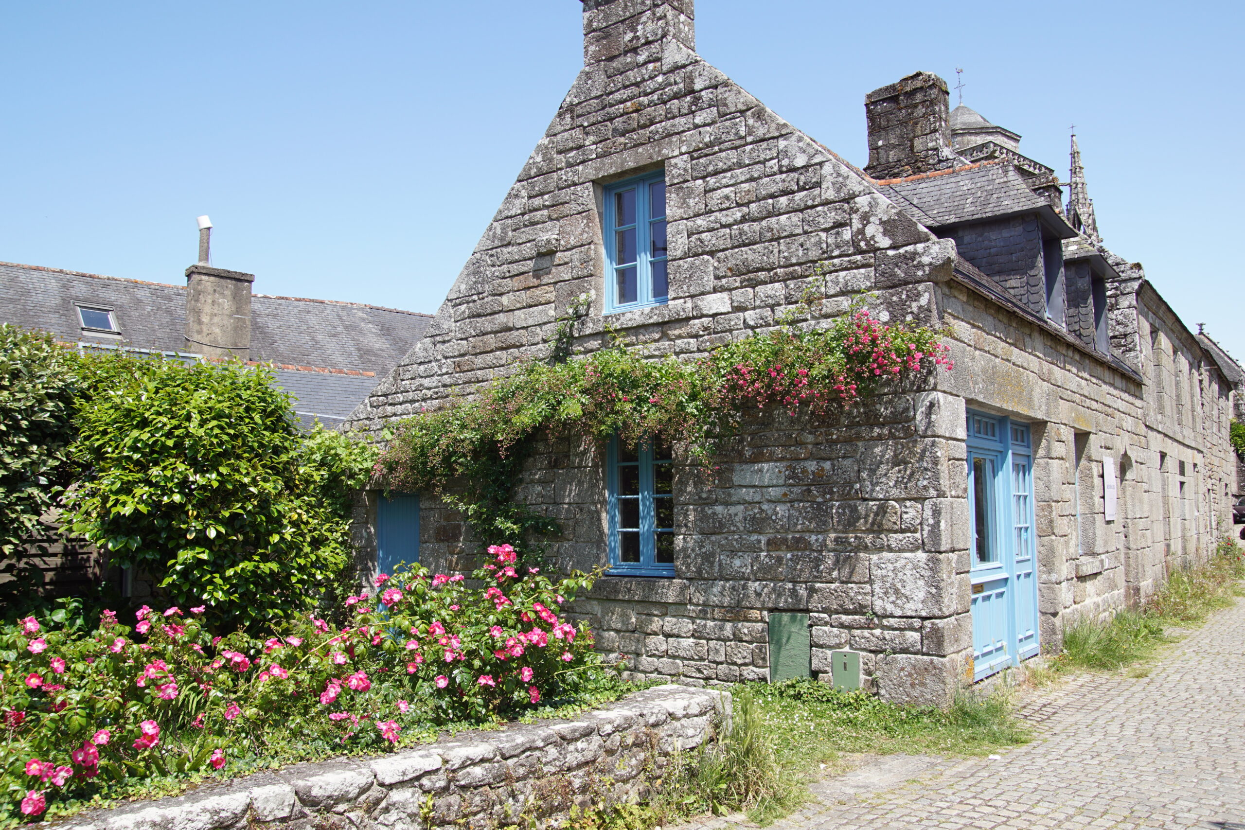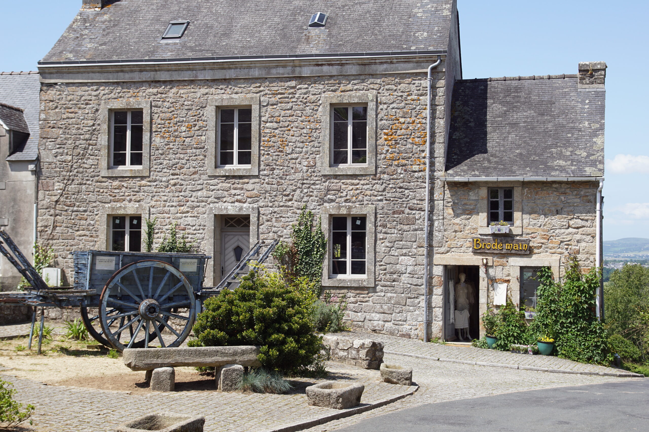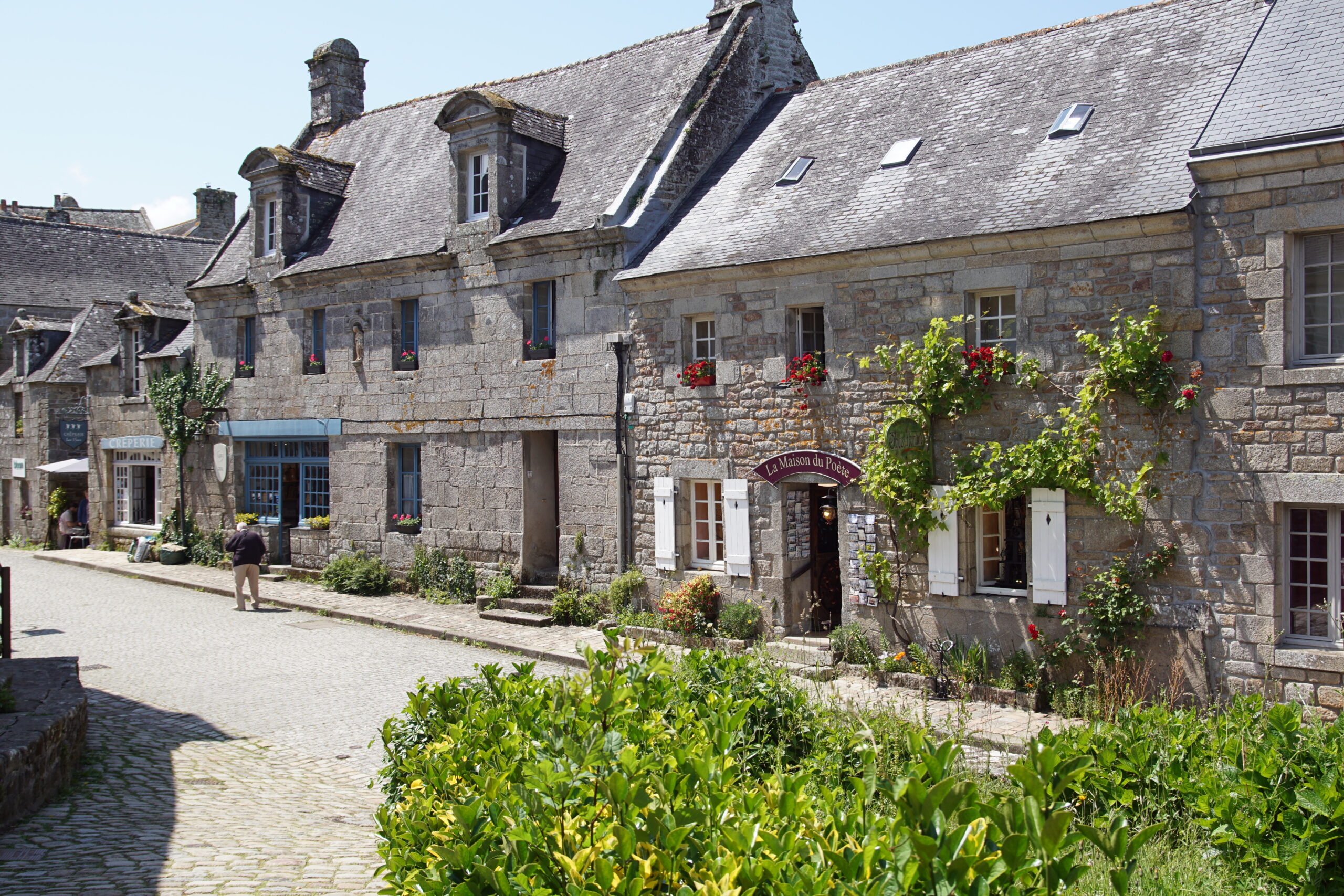 - Nous remettons le cap vers le Nord de Quimper mais plus exactement pour Locronan*** à 43km/40mn (parking juste avant le rond point). Ce village superbe figure dans tous les guides touristiques, et il le mérite, surtout que ce lundi de début de saison ce n’est pas la foule ! La grande place avec l’église est remarquable (photo ci-dessus), mais aller à l’aventure par les ruelles permet de belles découvertes.