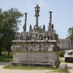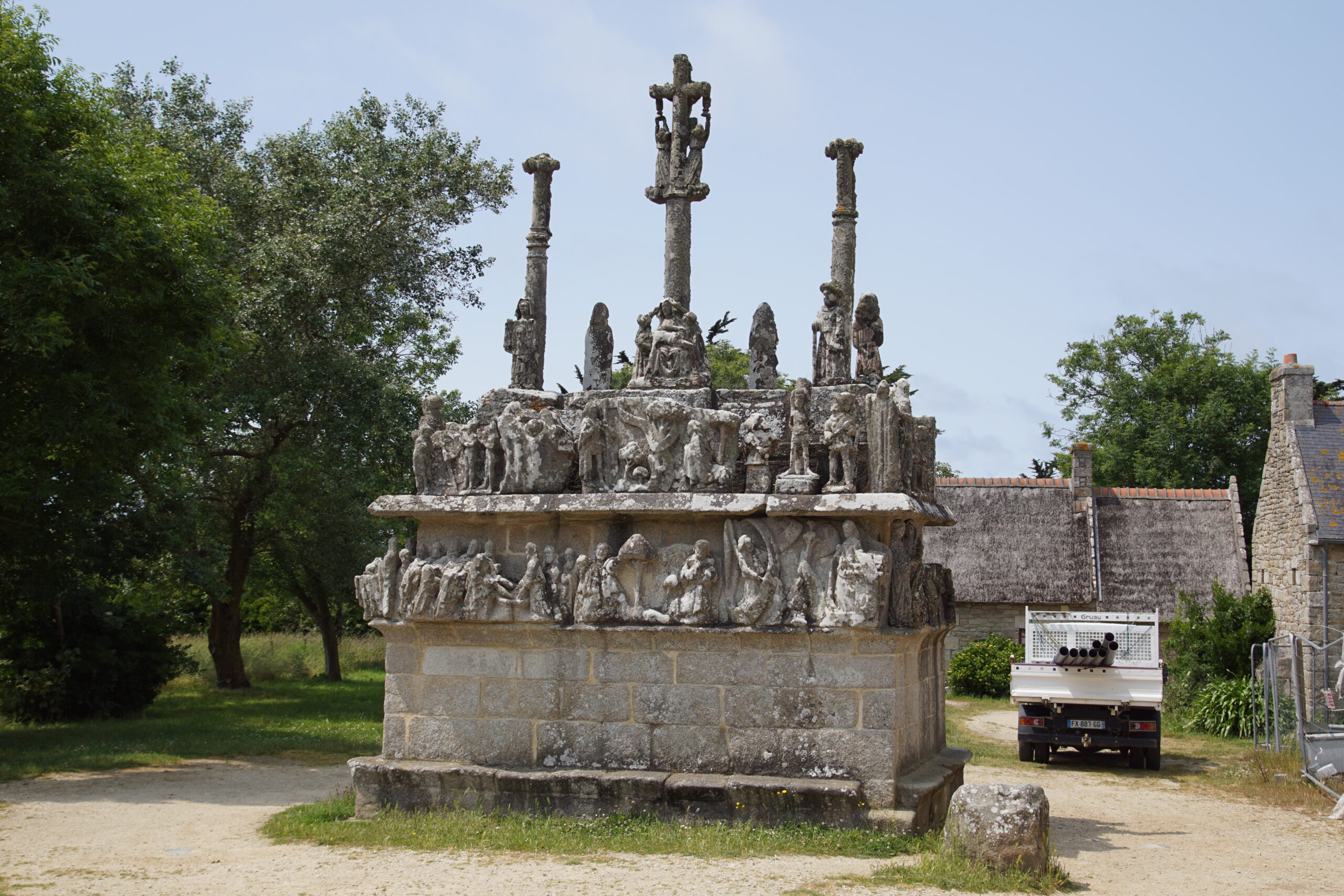 • Matin gris et pluvieux qui n’incite pas à la balade… mais, il paraît qu’au Sud-Ouest il va faire beau. C’est donc reparti, vers 13h00 pour une tournée des caps, ports et bords de mer sous le soleil… et à 28km/30mn c’est vrai ! découverte du Calvaire de Tronoën** (un des plus imposants de Bretagne) et l’église d’à côté en travaux.