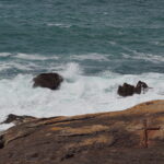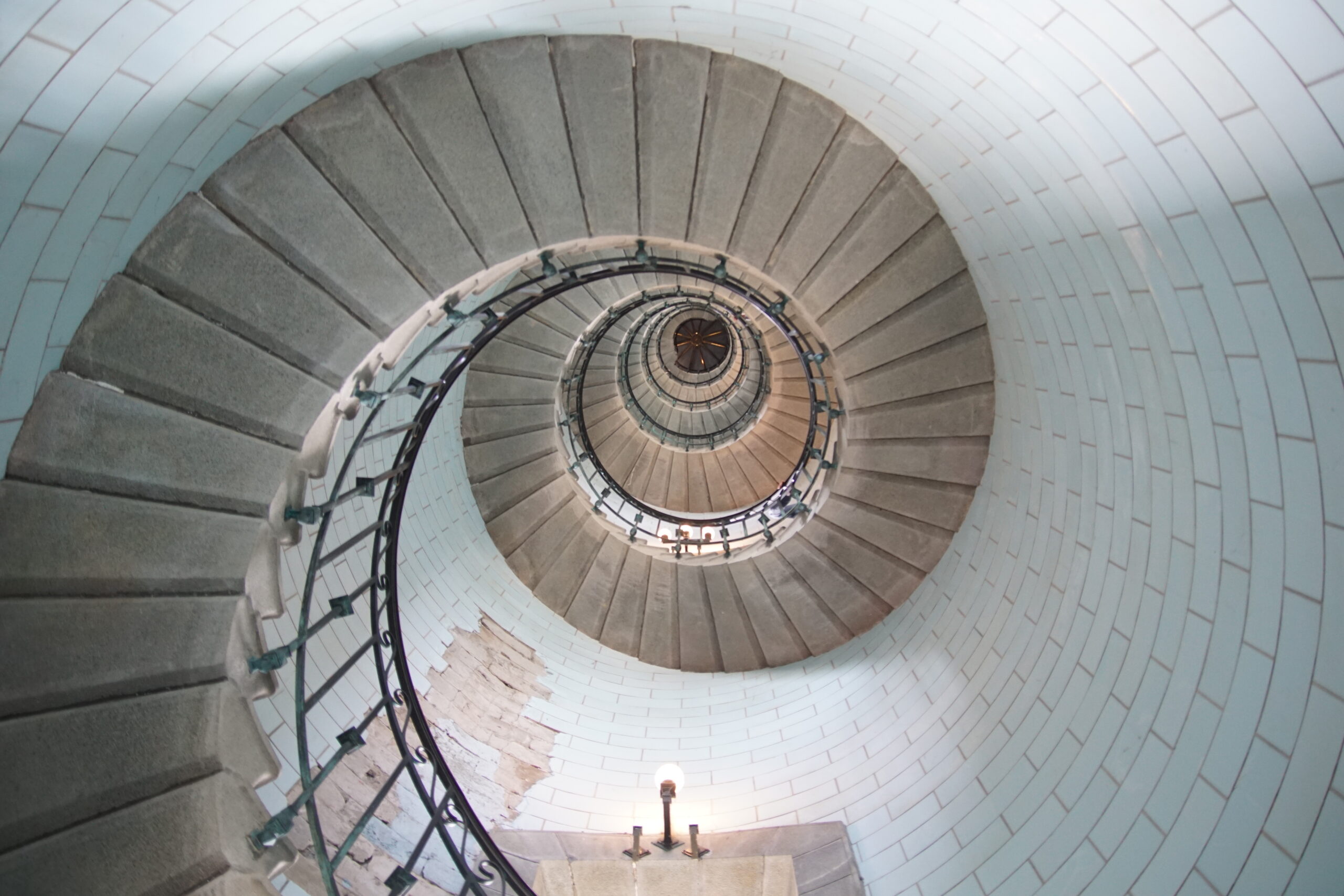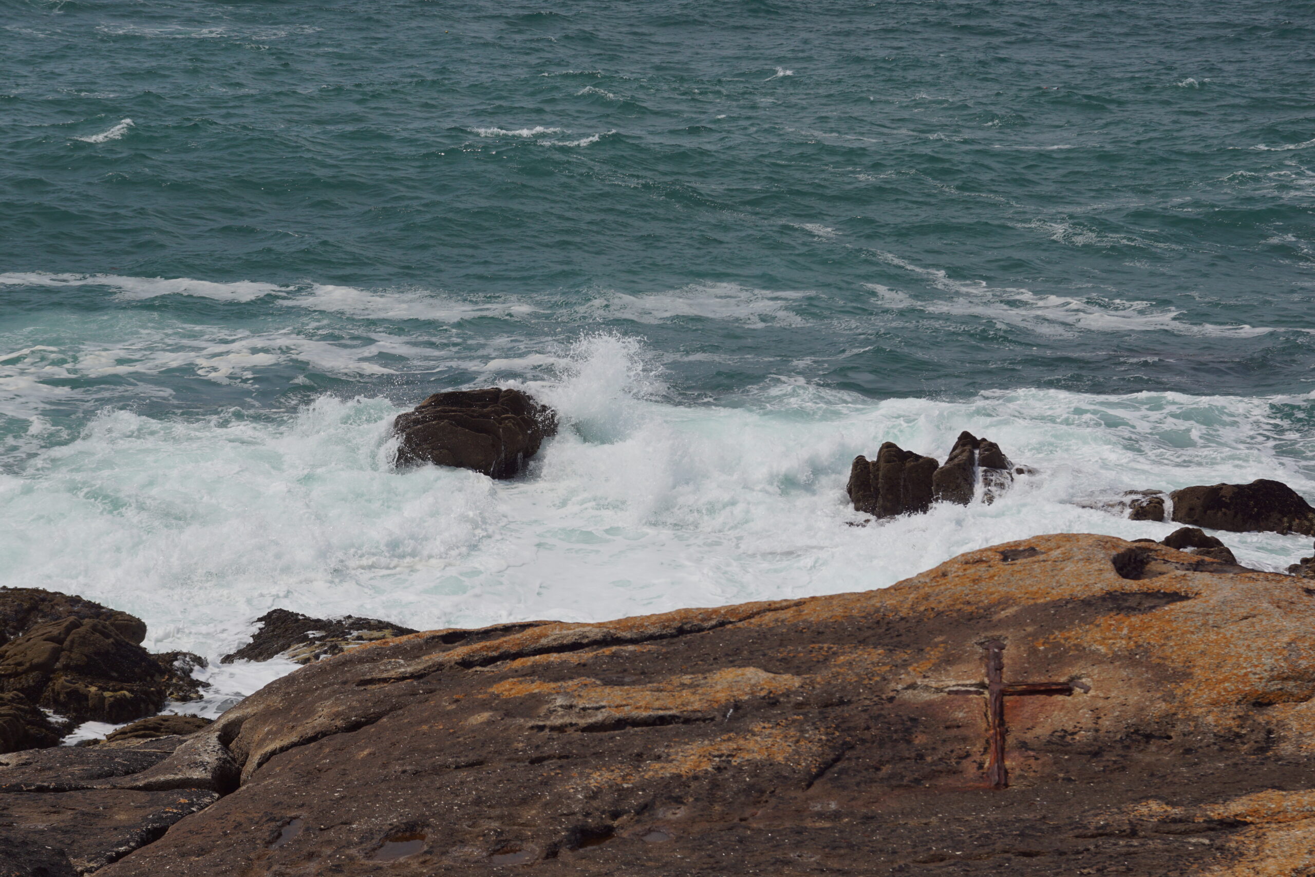 • Encore 5km/10mn pour atteindre le Rocher de l’Ours et le Rocher des Victimes au début de la digue*** avant le port de St Guénolé un peu désert. Continuer 2km pour visite possible de la Chapelle Notre Dame de la Joie (à droite), puis arrêt au parking (à 1km) du Phare d’Eckmühl** et ses 307 marches (y monter pour 5€), jolie vue à 360°. Pointe de Penmarc’h et le sémaphore au pied.