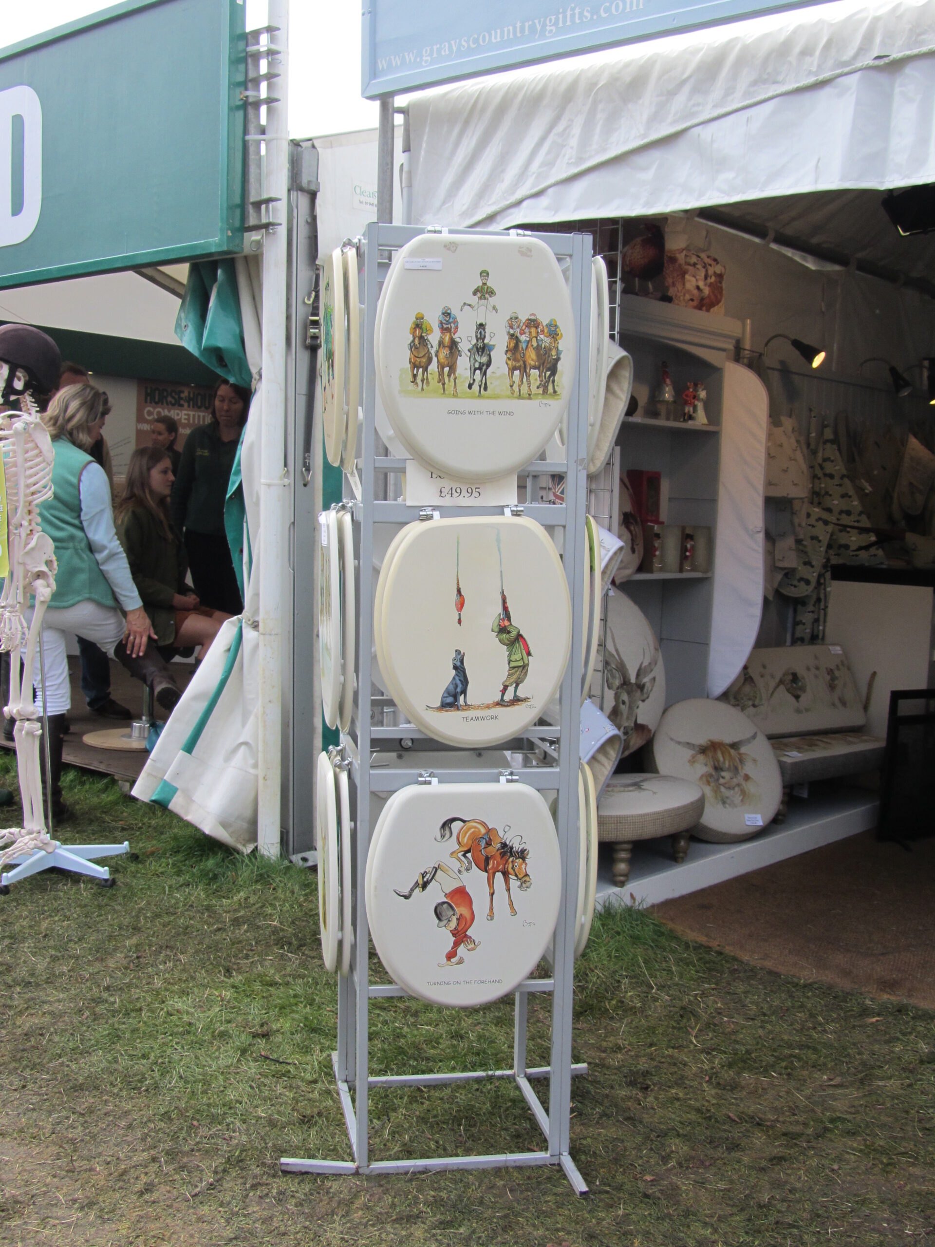 La photo en tête est exceptionnelle car c’est la seule fois (sur 18 concours en Angleterre) où l’on a pu assister à la visite véto du dimanche matin (8h30…). Bien sûr c’est Rodolphe et son trot aérien !