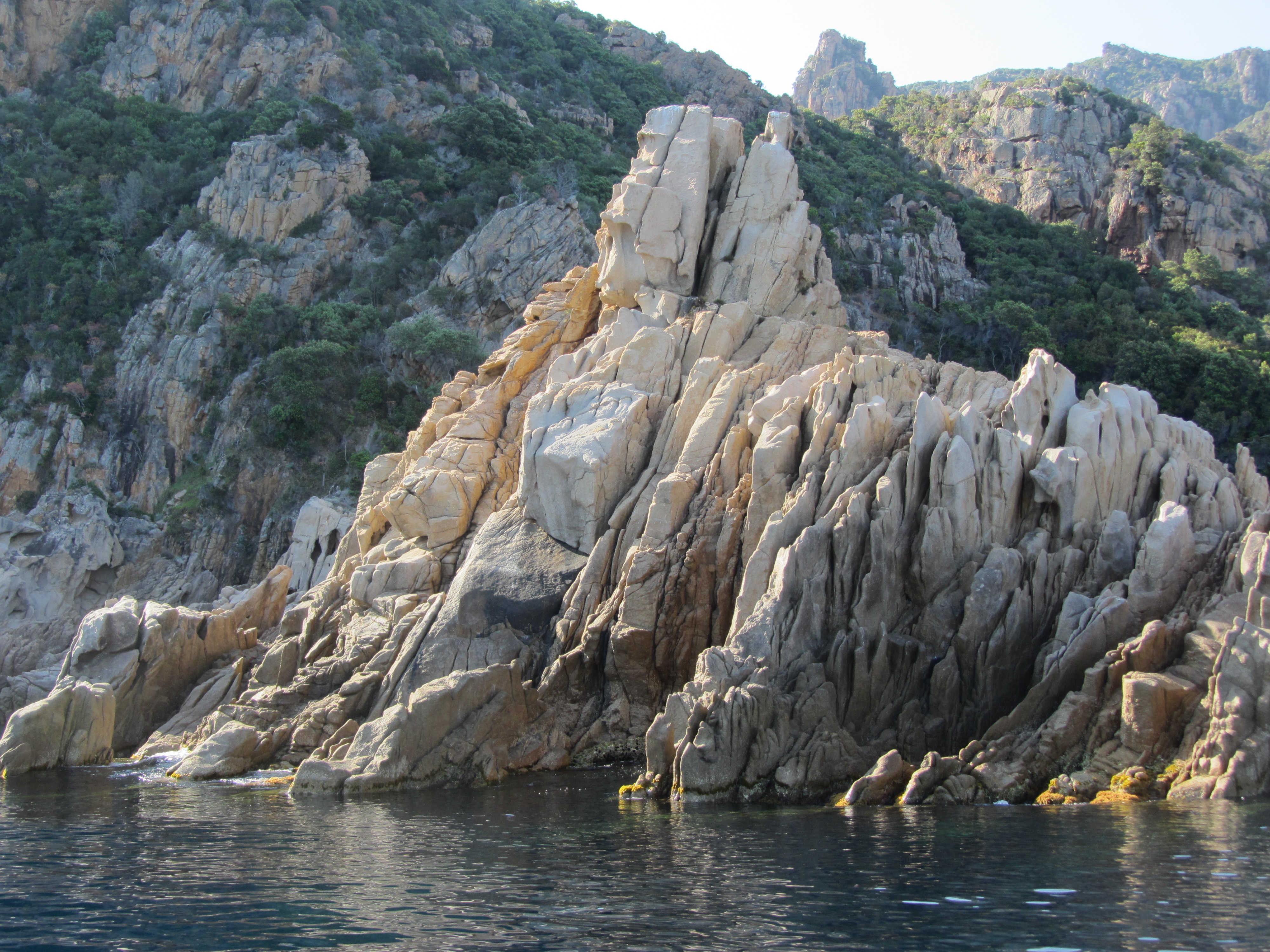 • J02 journée à Porto: mardi 02 Juin, matinée consacrée à la croisière vers la réserve de Scandola*** (ci-dessus) et au village de Girolata*** (halte de 30/40mn pour une visite libre) avec un passage près des calanche de Piana et le Capo Rosso. C’est le petit bateau rouge « Pass Partout » qui nous emmène (dès 9h00, pour 4h00 et 55€/pers. réservation internet et règlement sur place par chèque). Très beau temps, mer calme et commentaires passionnés de Joseph notre Capitaine.
