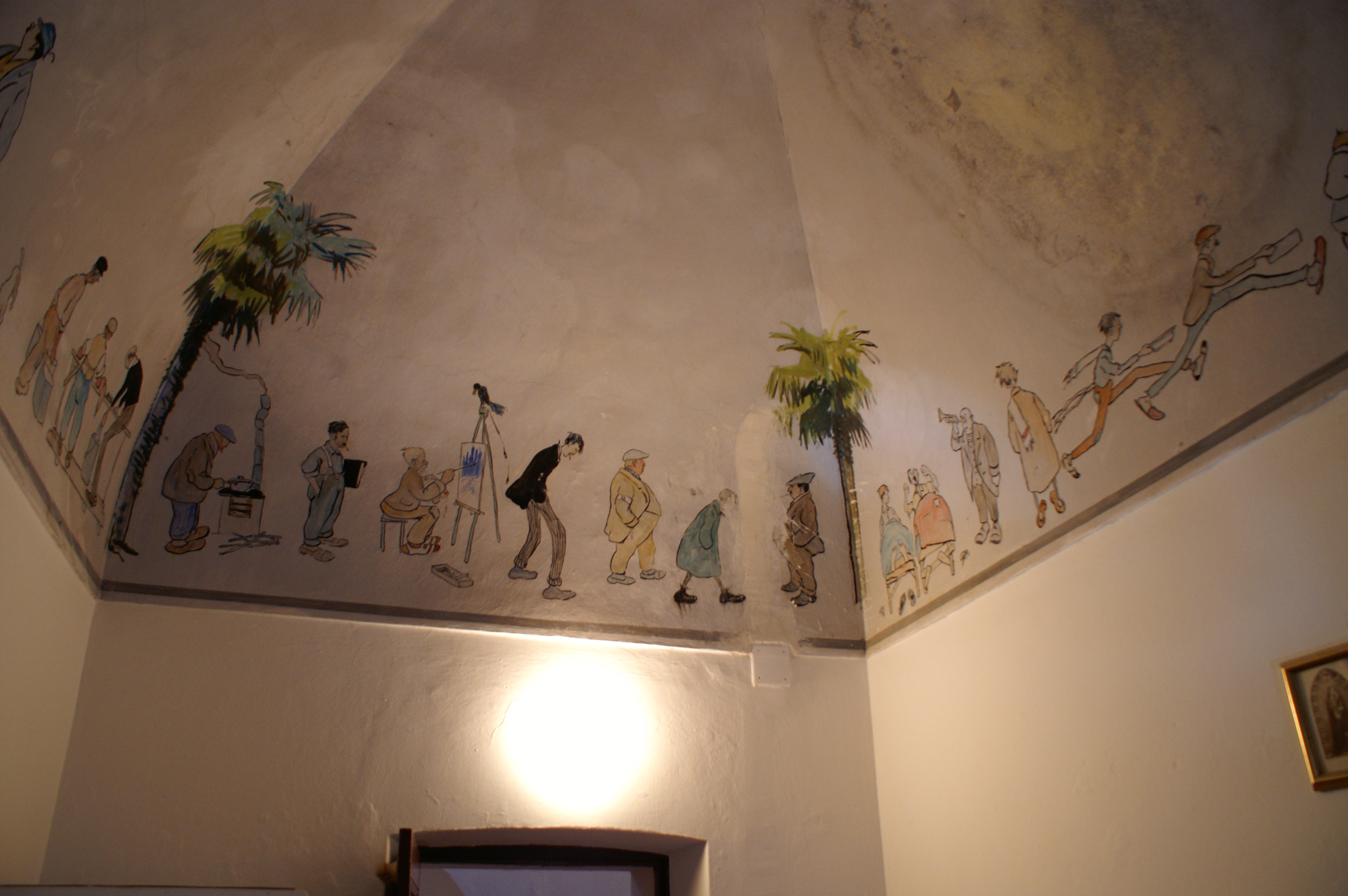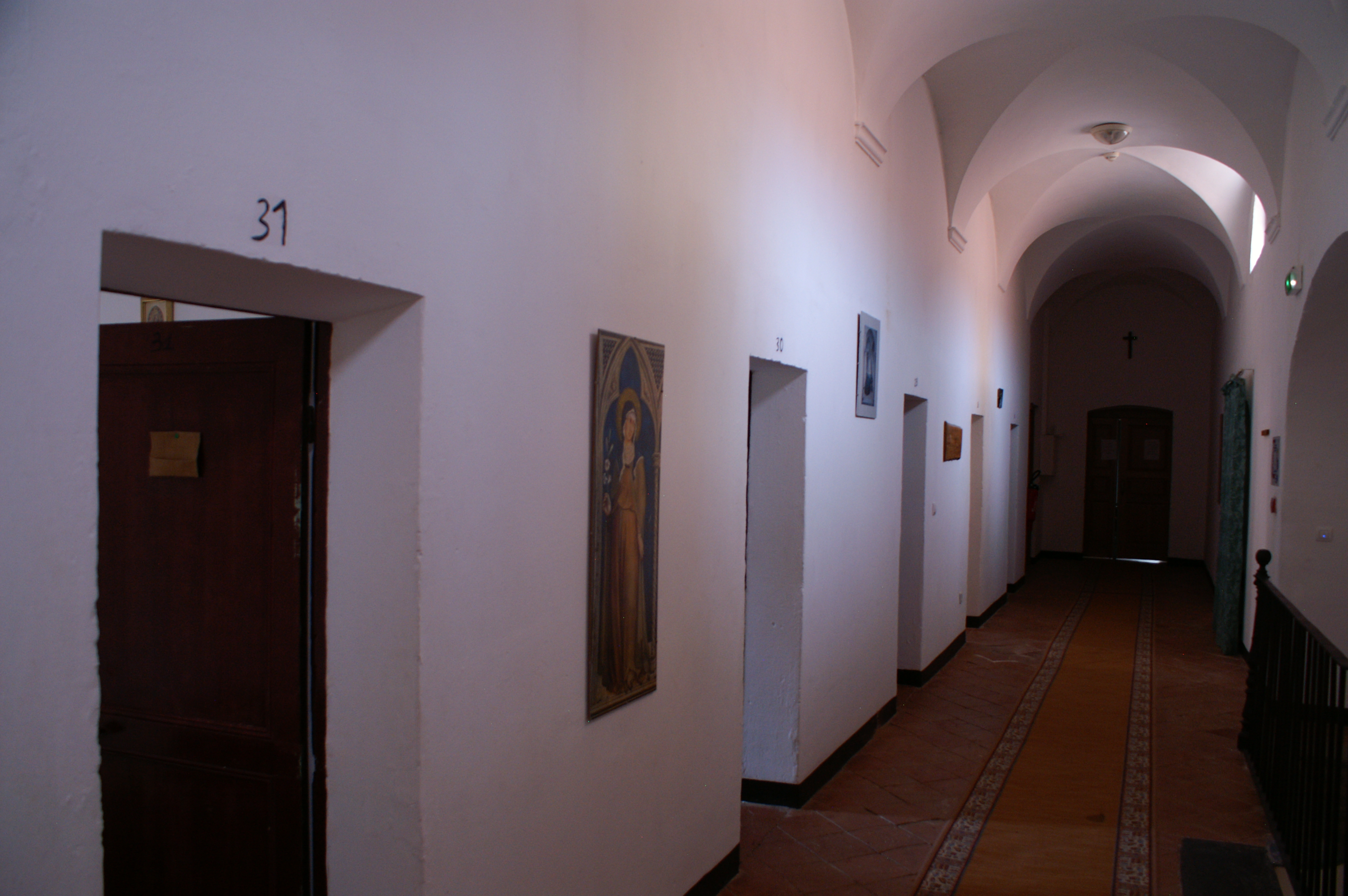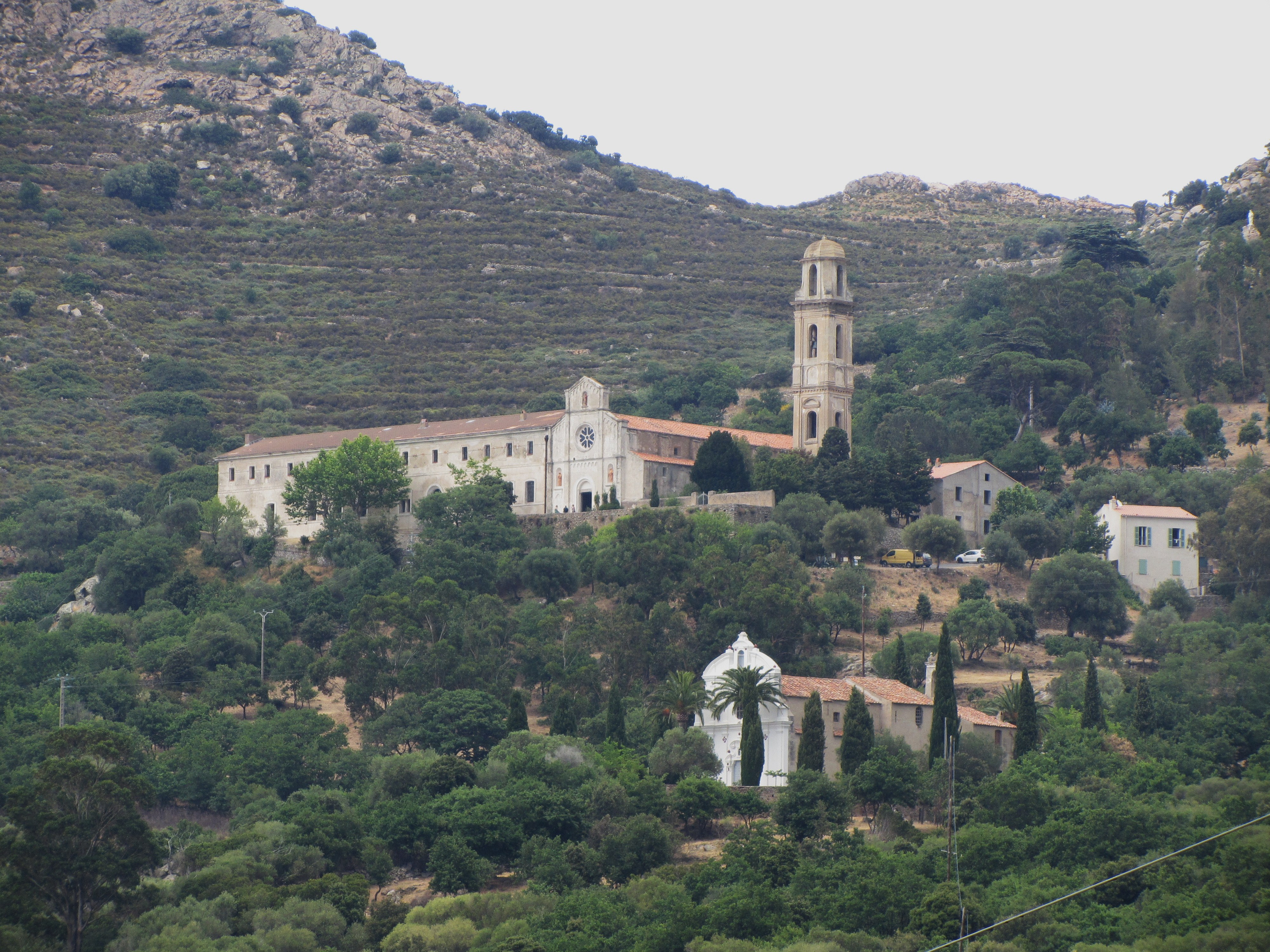 • Par la D263 tortueuse, nous filons vers Corbara et son couvent St Dominique*** (centre de prière et d’accueil tenu par 7 frères) dont la visite démarre à 15h00. Un « frère » très sympa et compétent nous guide à travers l’église, le cloître, les salles et chambres dont une comporte encore des fresques peintes par un prisonnier (en 39/45 c’était une prison sous l’occupation …). Un beau moment de spiritualité.