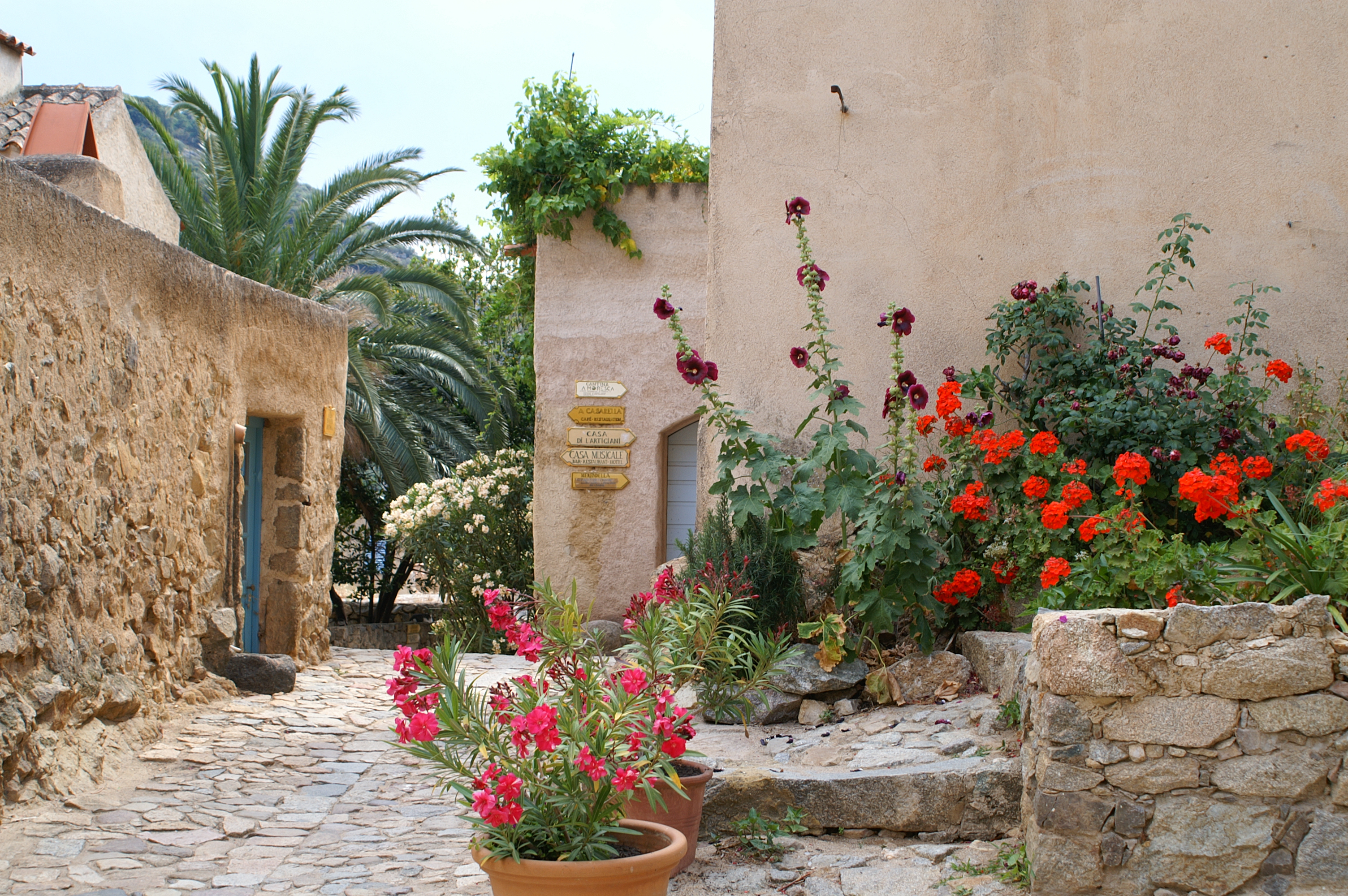• Il faut revenir vers l’île Rousse pour grimper ensuite vers Monticello** par la D63 (7km): charmant petit village fleuri où Jacques Dutronc demeure (sur les hauteurs). Petit hôtel resto près de l’église. Nous pique-niquons à proximité.