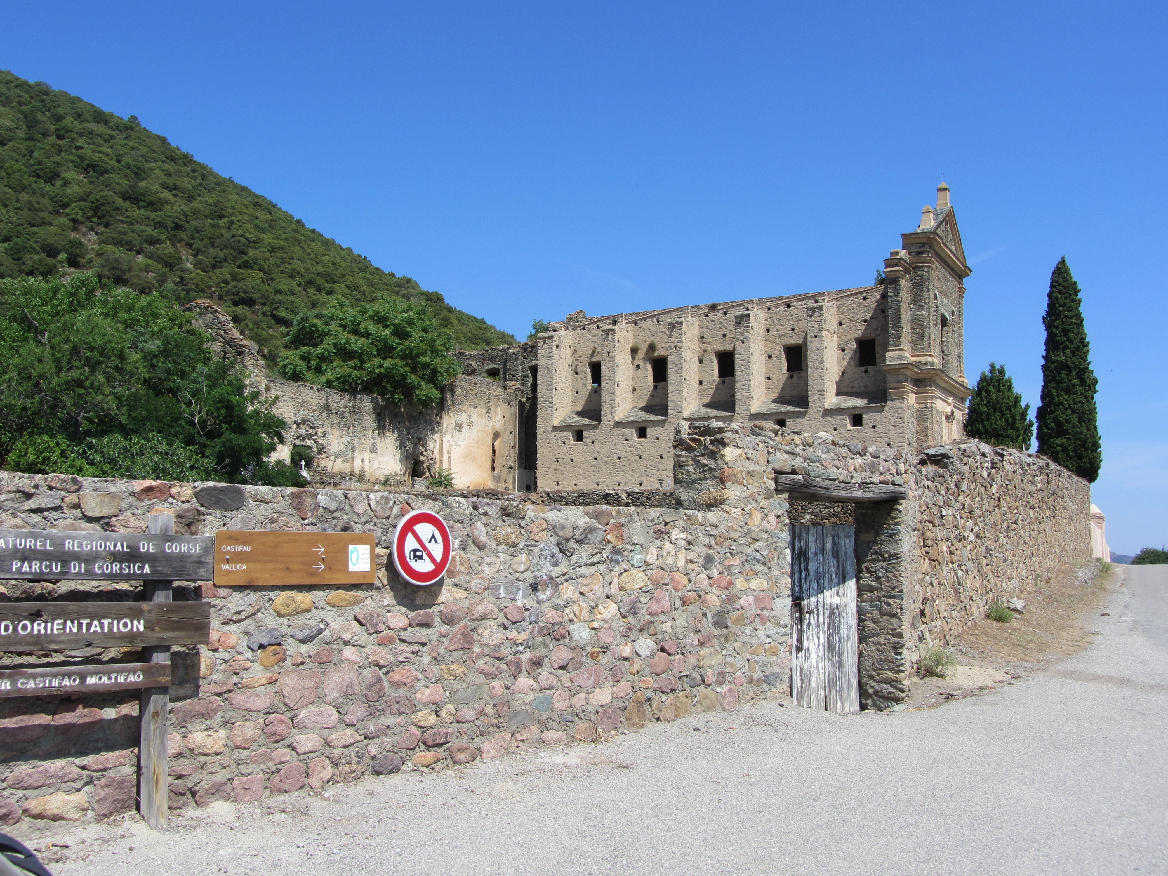 - J10 depuis l’île Rousse jusque Corte : mercredi 10 Juin, cap au Nord par la route côtière pour prendre la voie rapide (T30) descendant vers Corte, mais juste après Pietralba, après 34km, c’est à droite la D247 pour Castifao (en cul de sac), le couvent San Francesco* (en ruines) et Moltifao= 47km/55mn. Charmants villages un peu perdus et relief de moyenne montagne.