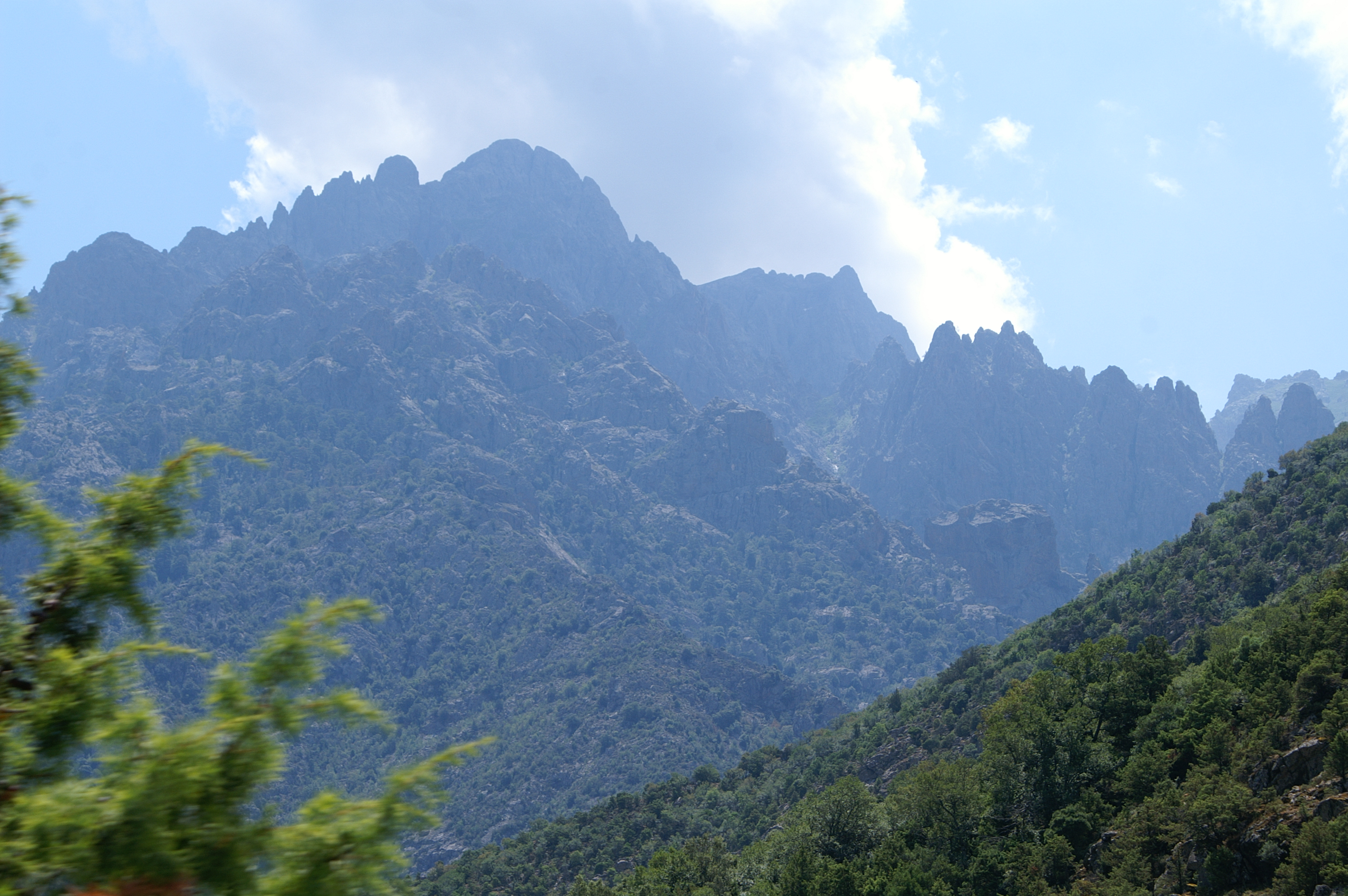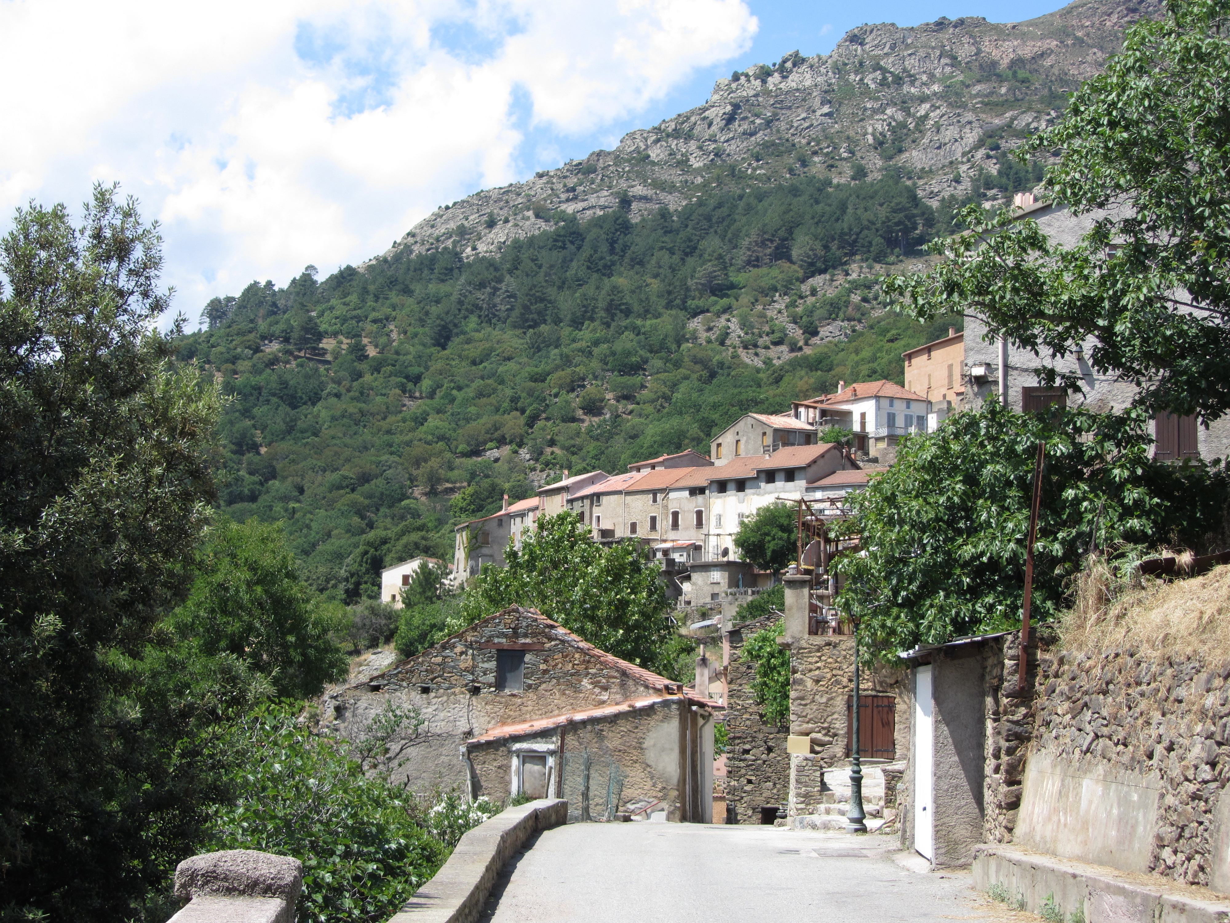 - Il est 11h20 lorsque nous quittons Moltifao* pour prendre la D147 à travers les gorges de l’Asco*** vers le village du même nom à 15km/30mn de superbe route encaissée et en lacets. Petite balade dans ce calme village très sympa.