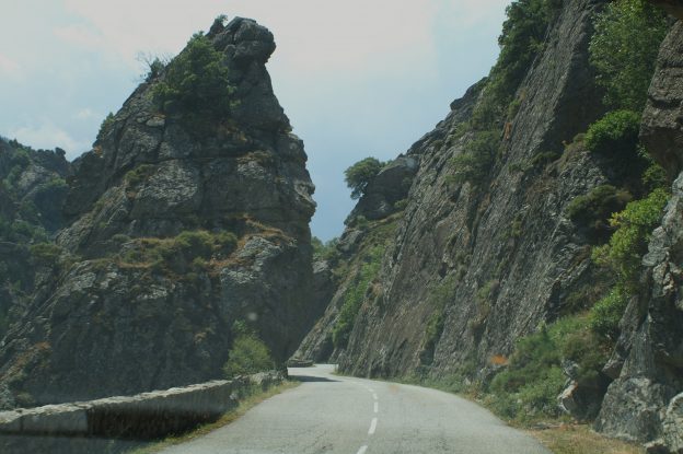 - Retour par le même défilé puis une petite section jusque Castirla (vers Corte) et à droite la D84 dans l’autre superbe défilé, celui de la Scala di Santa Regina*** jusque Calacuccia*= 48km/1h10. Nous y pique-niquons derrière l’église vers 13h15.