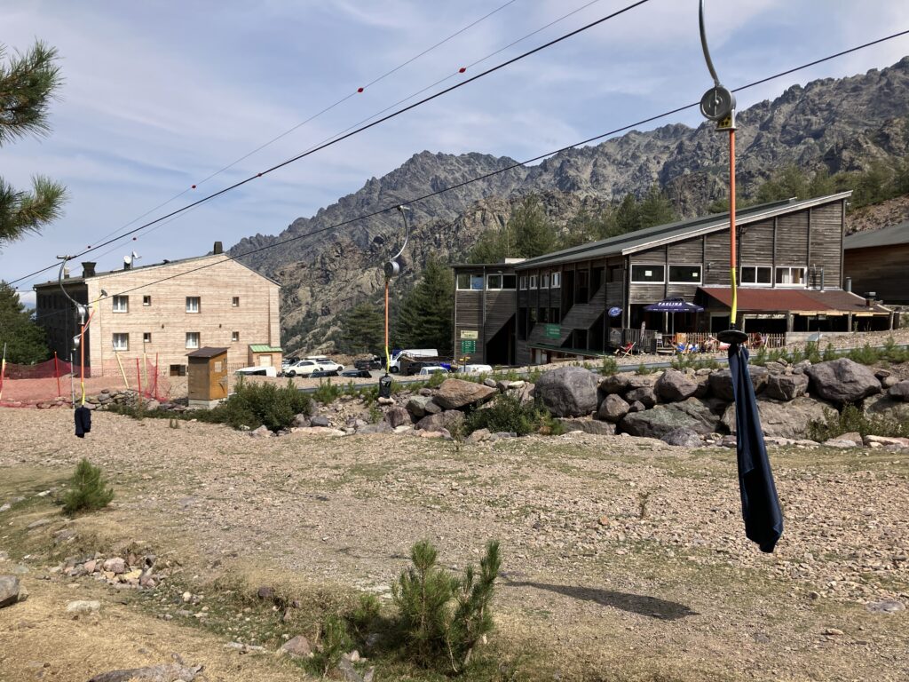 Un pas après l’autre, après une dernière partie dans une forêt d’immenses pins, on finit par arriver vers 13h15. Il est tôt et cette fois le confort est bien meilleur : on va directement au snack l’Altore et on profite de burgers, bowl végé et glaces 🍔🍨. C’est ici que le 3e randonneur décide d’abandonner… c’était trop intense pour lui et l’accès à la route permet de quitter le GR20 facilement. On raconte que la statistique est de 40% d’abandons dans les 3-4 premières étapes… on comprend mieux pourquoi, mais il faut s’accrocher et faire une étape à la fois pour mettre toutes les chances de son côté.