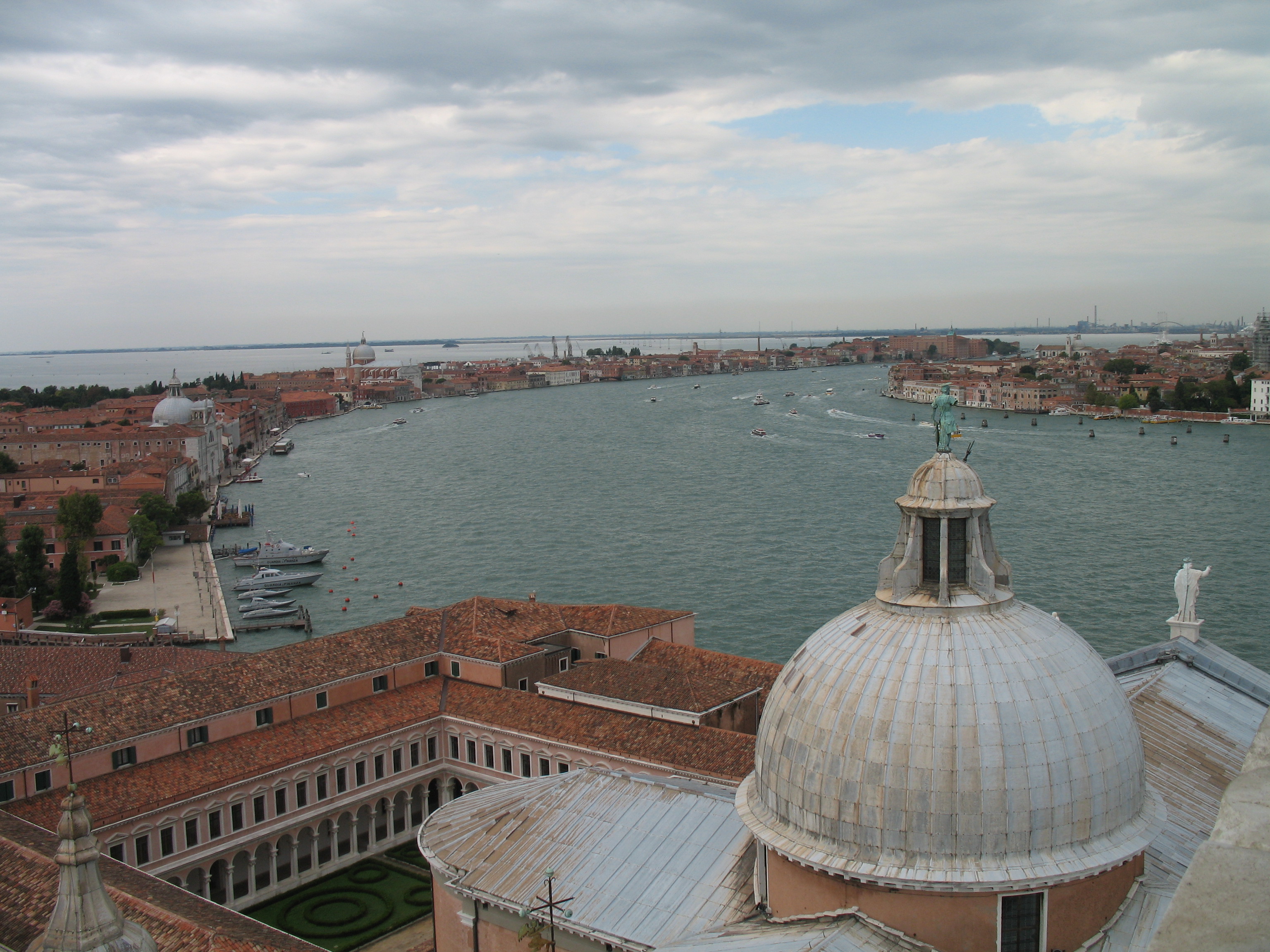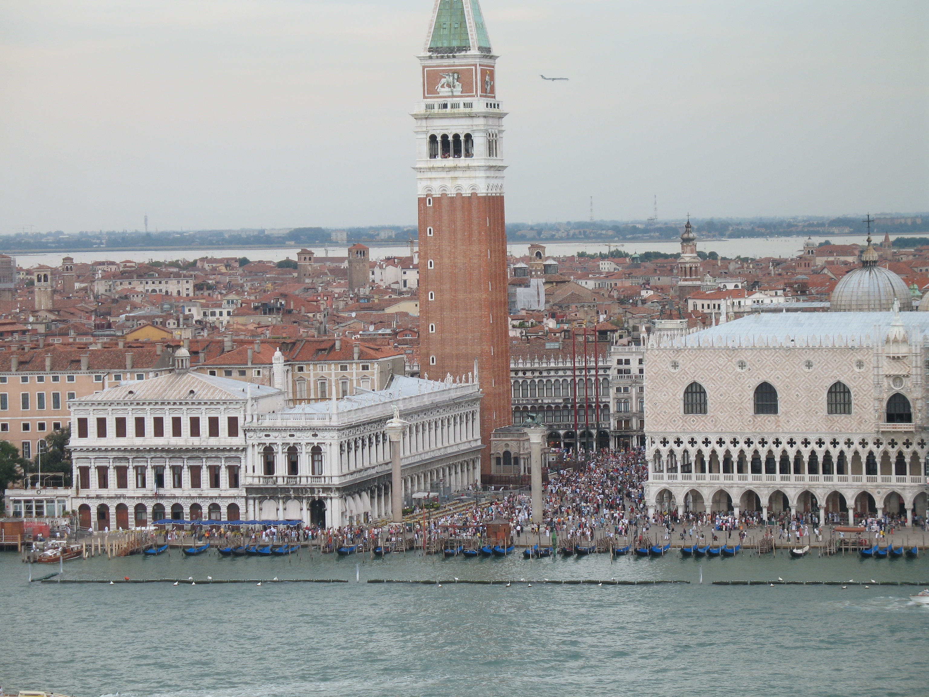 - Passage en vaporetto de l’autre côté du canal, l’ile au ras de l’eau de San Giorgio Maggiore et son campanile avec ascenseur !