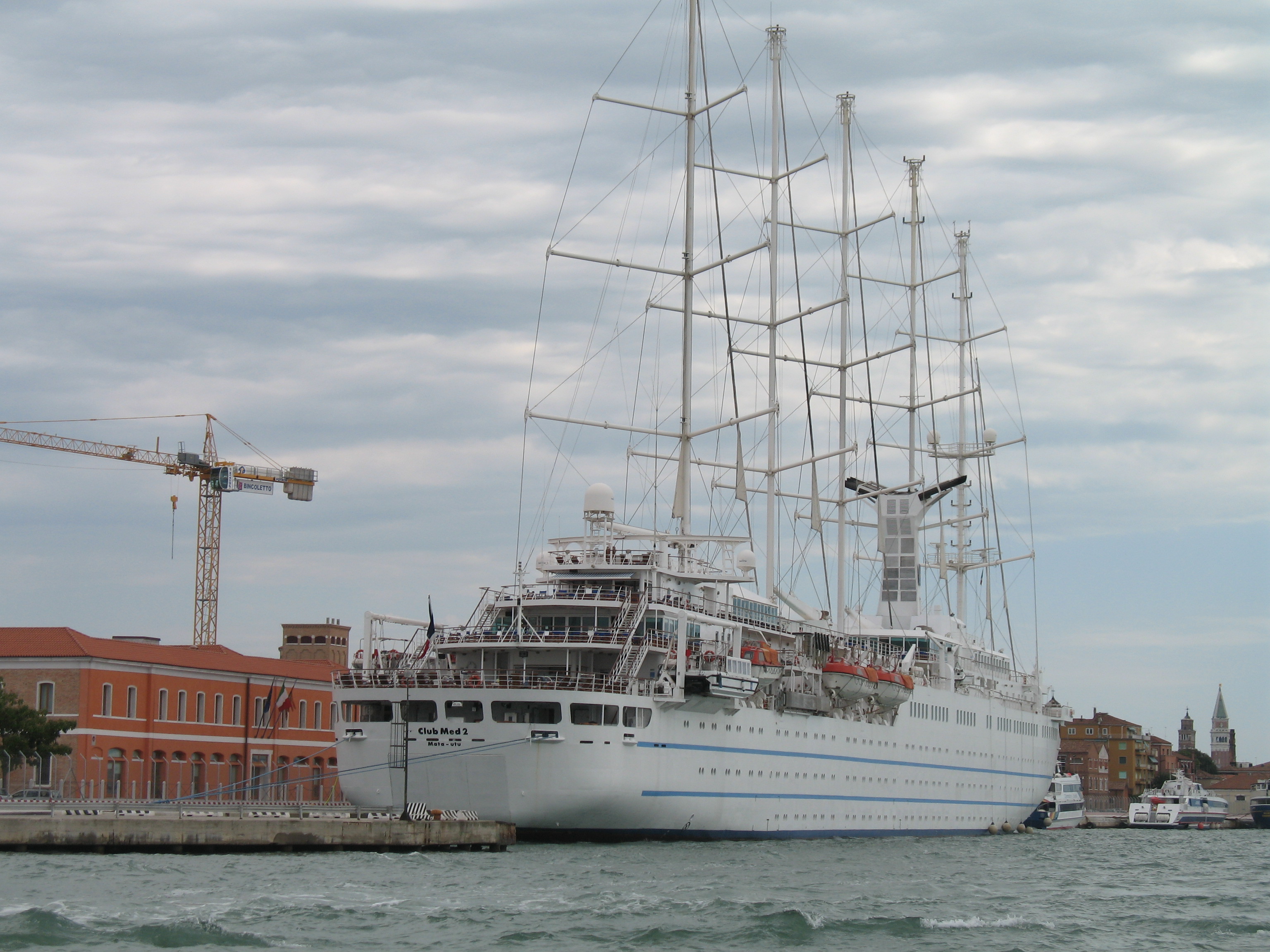- Retour par le grand canal vers le port et ses navires de croisières, dont le Club Med 2 en vadrouille.