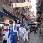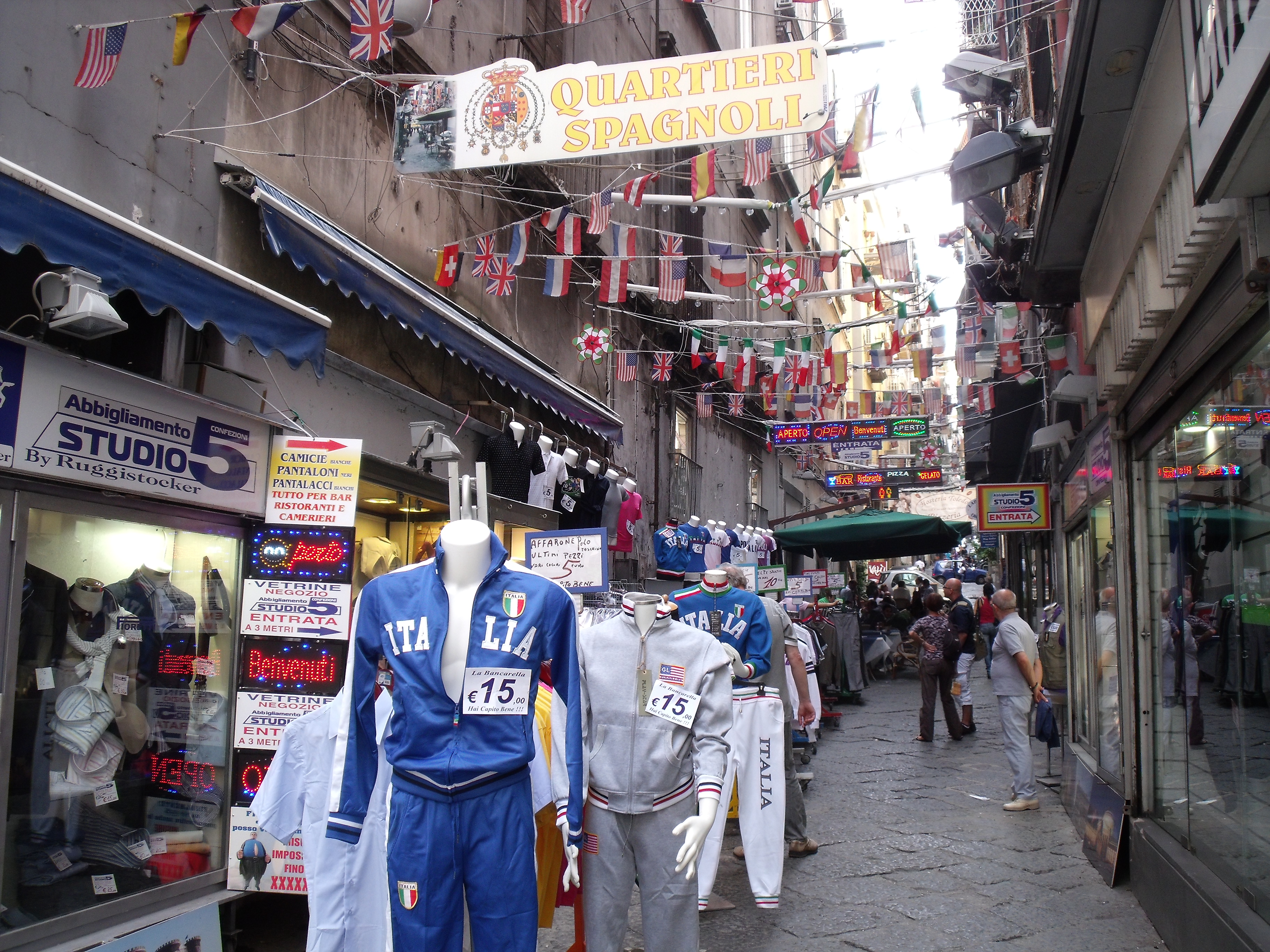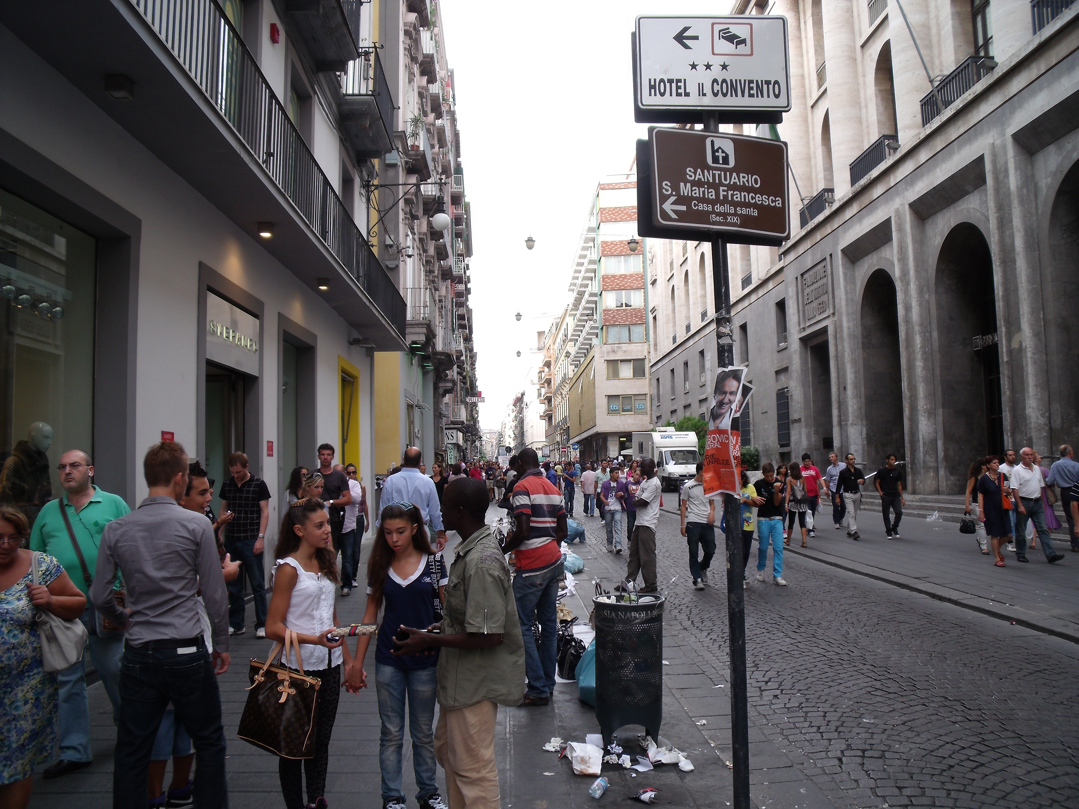 • La via Tolédo* est une importante artère Nord/Sud représentative de l’ambiance populaire de Naples. Les voitures et piétons évitant les scooters « chevauchés » par 1-2 ou 3 personnes (femmes et enfants) sans casque, mais avec klaxon !