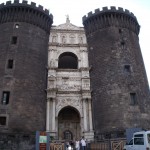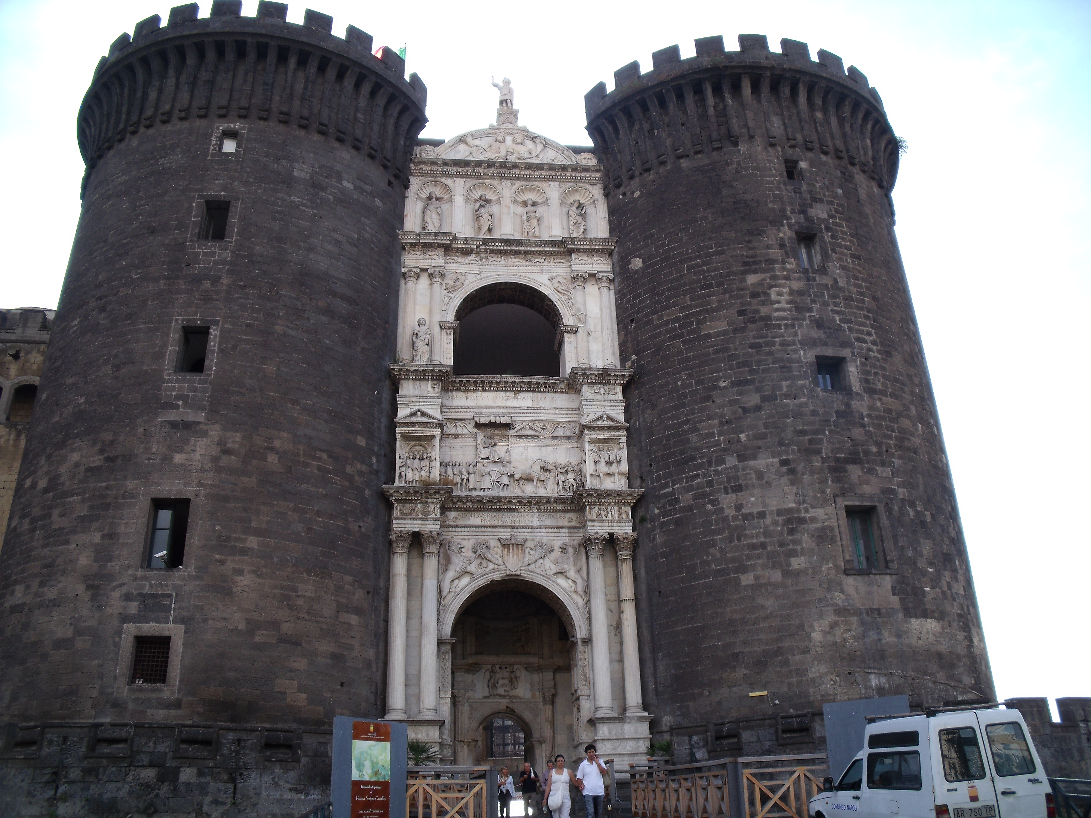 - Nous nous rendons ensuite au Castel Nuovo (construit en 1282 sur le modèle du château d’Angers-5€/pers.) pour visite, belle vue sur le golfe de Naples depuis les remparts.