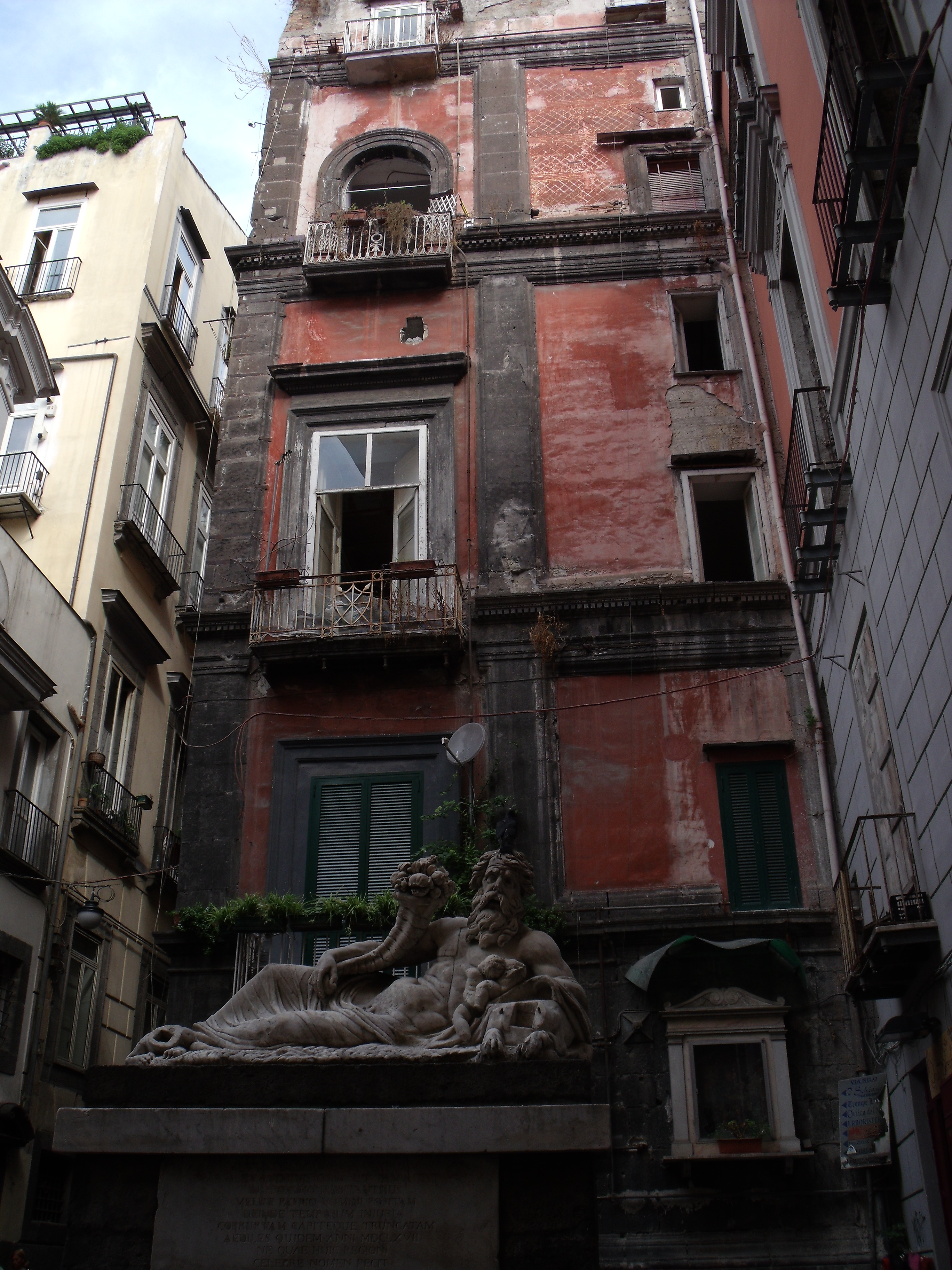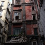 - En ce samedi 18 août 2010, matinée relaxe après ces 3 jours intenses, quelques courses au Carrefour Express à 300m, puis petite escapade vers Spaccanapoli (Via Benedetto Croce, après la piazza del Gesu Nuovo), pour acheter de la « vraie » mozzarella et une statuette de Pulchinella, personnage emblématique de Naples, et que l’on trouve partout, en « vraie » porcelaine du Capodimonte. Passage dans la rue des crèches (Via San Gregorio Armeno, et son église baroque).