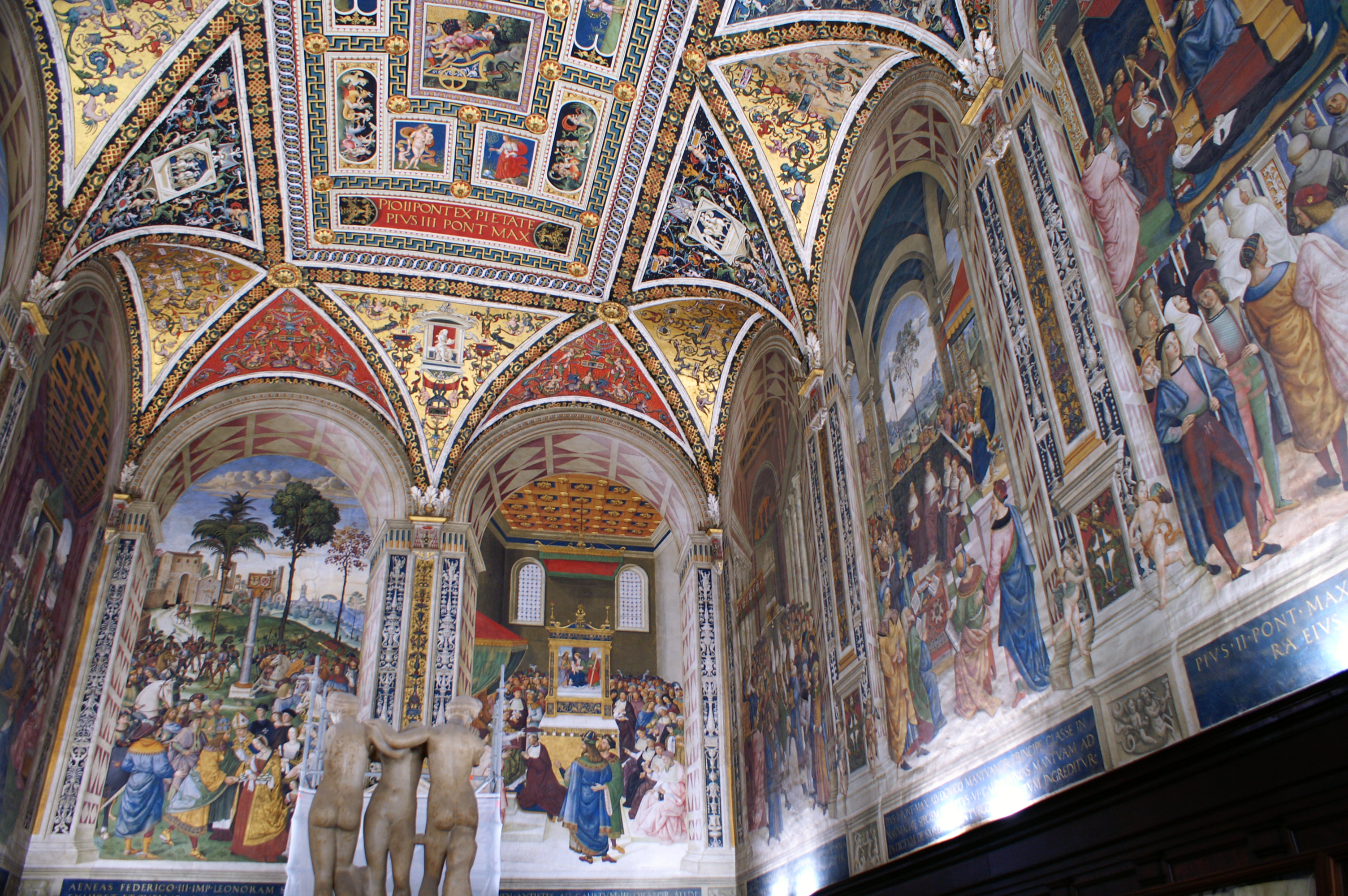 - Il est 11h20 et la voie est libre pour visiter l’intérieur du Duomo*** et ses superbes pavements, et la Libreria Piccolomini (où l’on nous presse d’avancer un peu plus vite…).