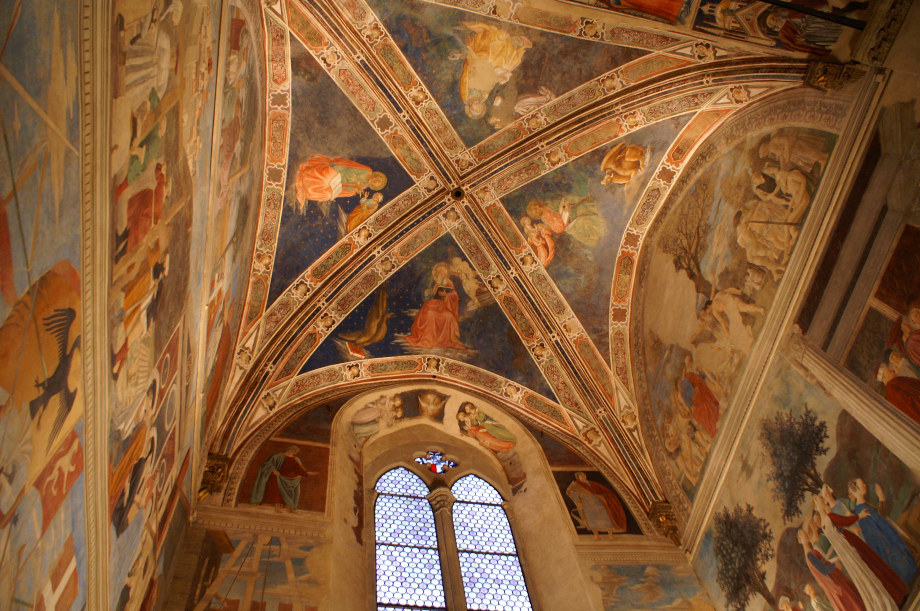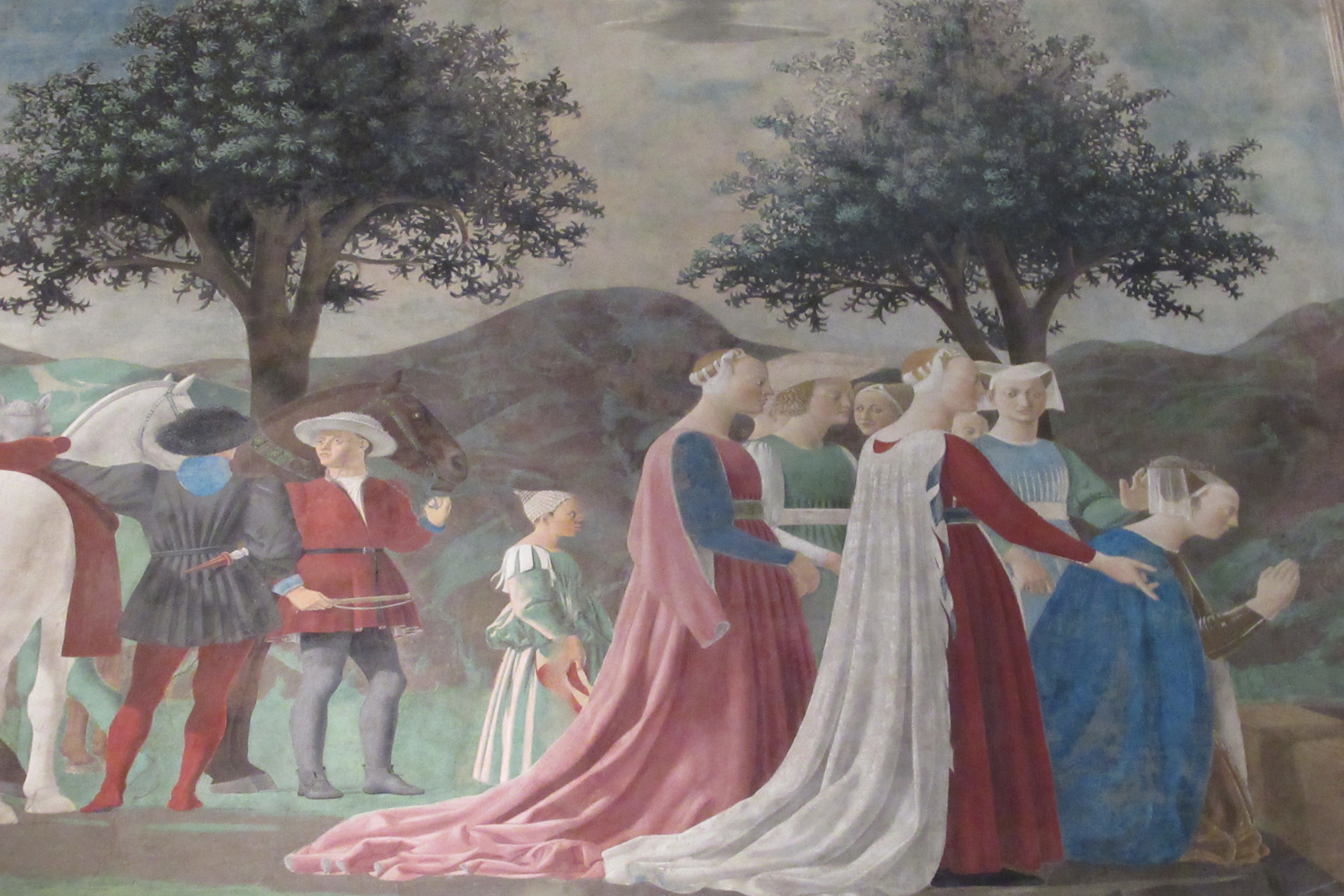 - Après un pique-nique en chambre nous sommes prêts pour la visite réservée à 13h30 (8€ cash/pers.). Située à 150m, la Basilica Di S.Francesco présente les fresques de Piero della Francesca*** peintes sur la plupart des murs, mais principalement dans le choeur. Le nombre de visiteurs est limité par tranche horaire; c’est très beau.