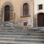 - Idem pour le village suivant Monte San Savino à 8km/10mn. Les centres historiques de ces 2 villages promettaient d’être intéressants malgré leur petite taille (300m x 150m). Donc nous filons vers Arezzo à 22km/25mn et le parking/garage San Agostino situé hors ZTL. Il ne nous reste qu’à crapahuter les valises sur les 500m/10mn vers le BandB Palazzo dei Bostoli, et notre chambre du 2ème étage (encore !). Il est 12h30 et la pluie à cessé provisoirement.