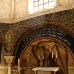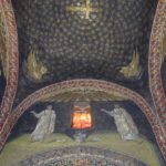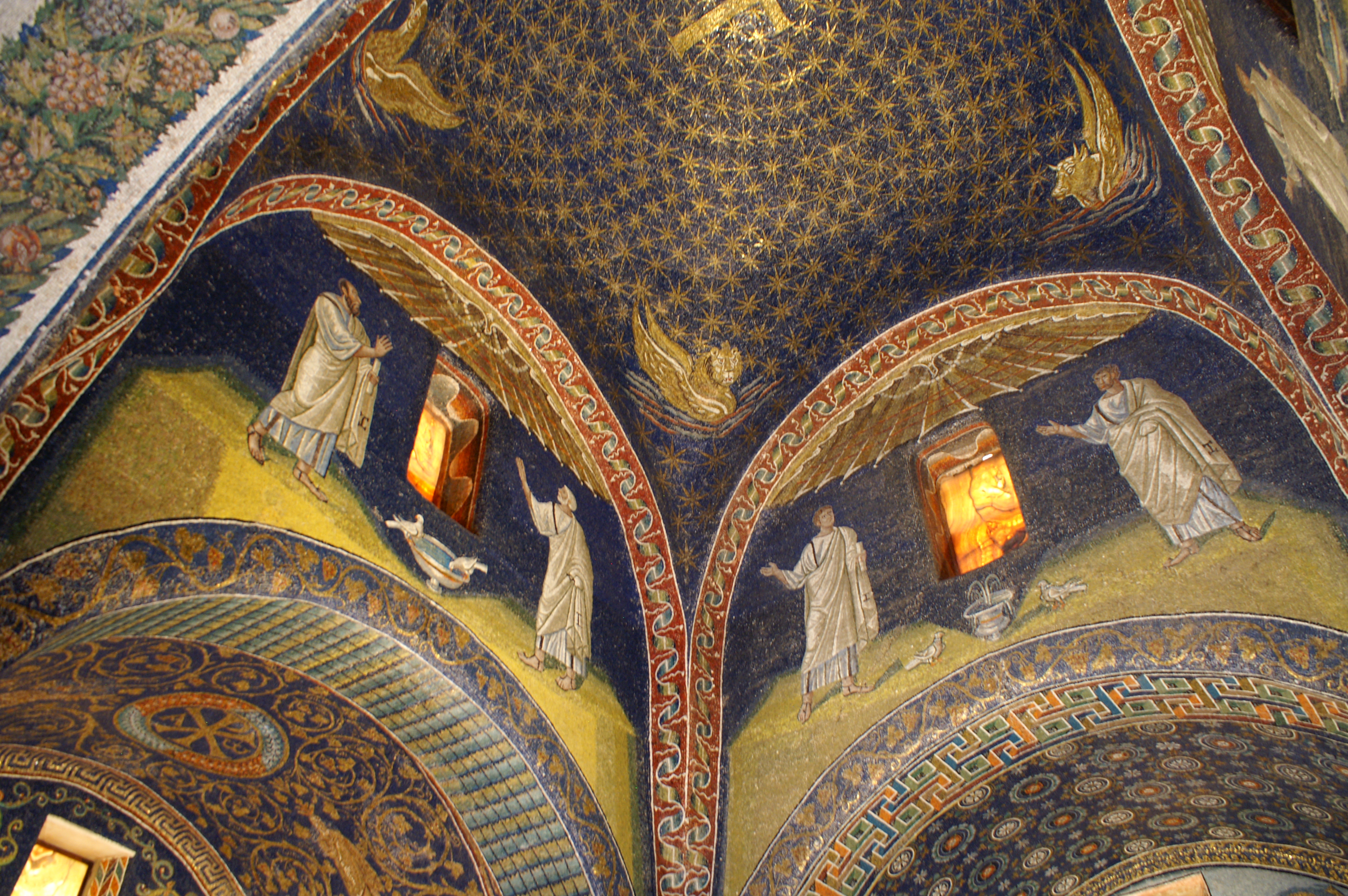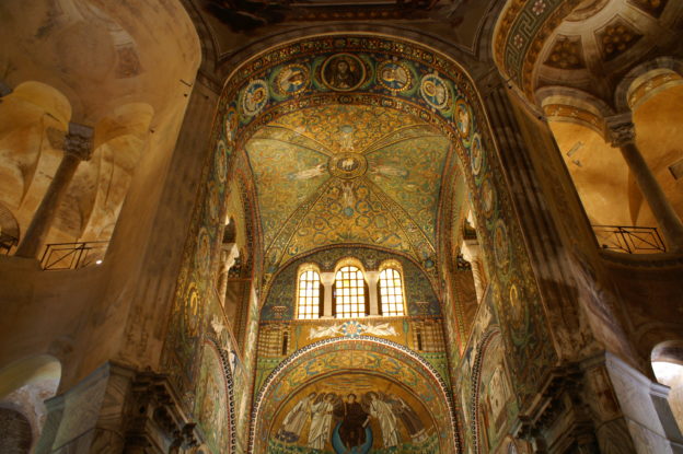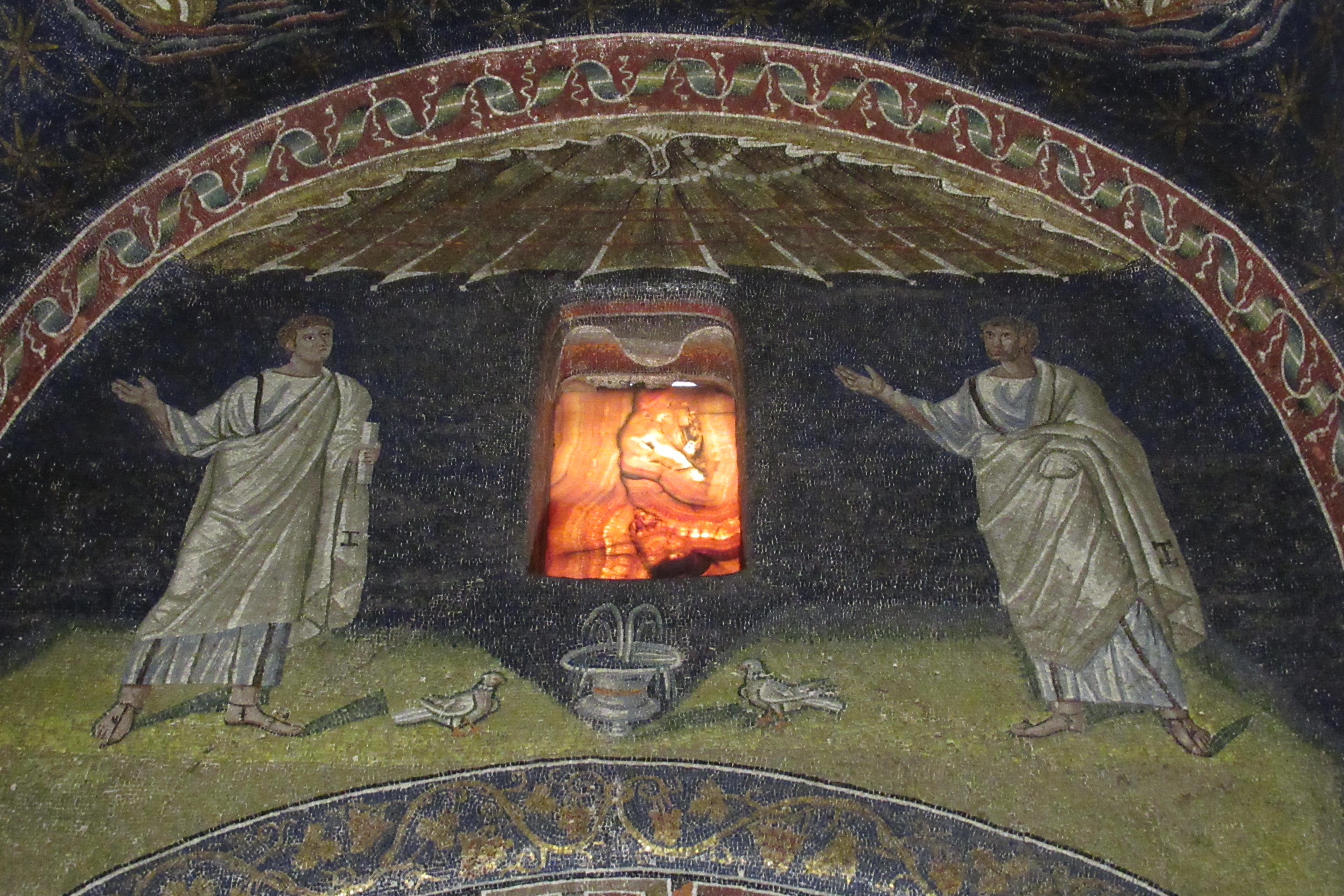 - 13h30 c’est parti vers le Mausoléo di Galla Placidia*** dans l’enceinte de la Basilica di San Vitale*** photo ci-dessus avec du Wahoouu en prime. Les mosaïques sont superbes. Ces premières visites à Ravenne donnent le ton ! suivent le Baptistère des Ariens* (1€ non inclus dans le forfait), la piazza del Popolo, la piazza San Francesco et son église** avec la crypte inondée, la tombe de Dante* juste à côté.