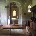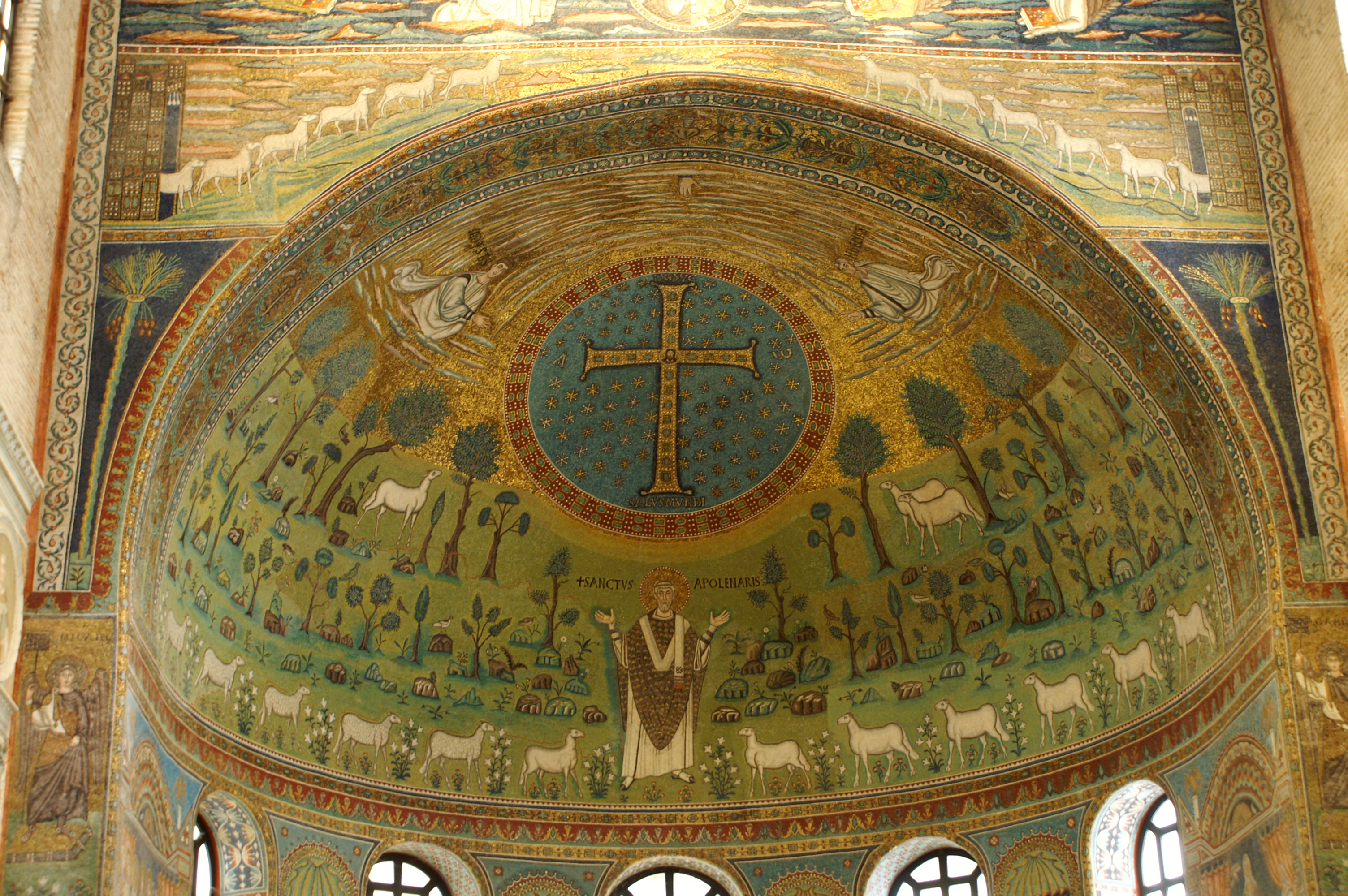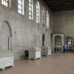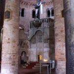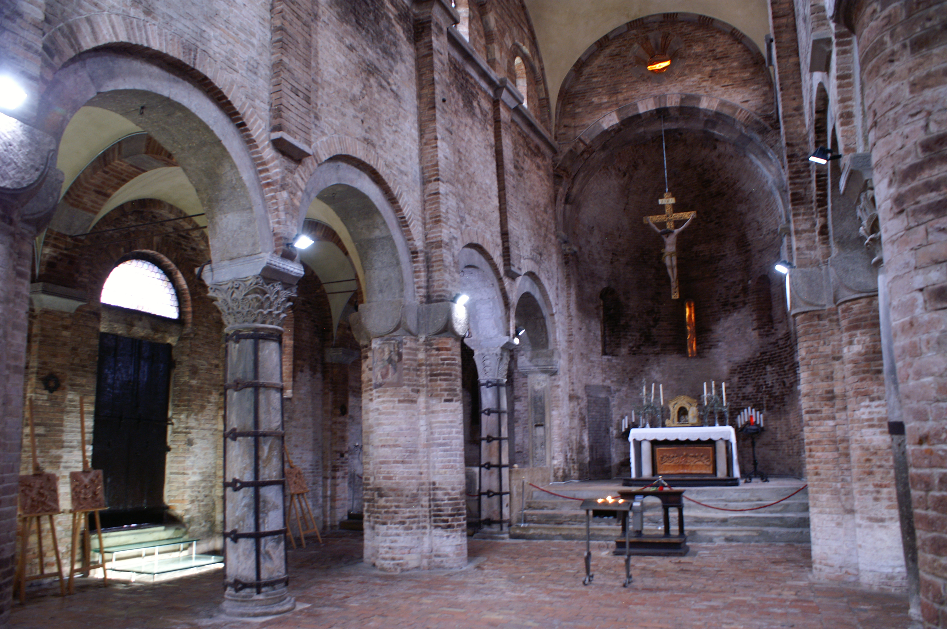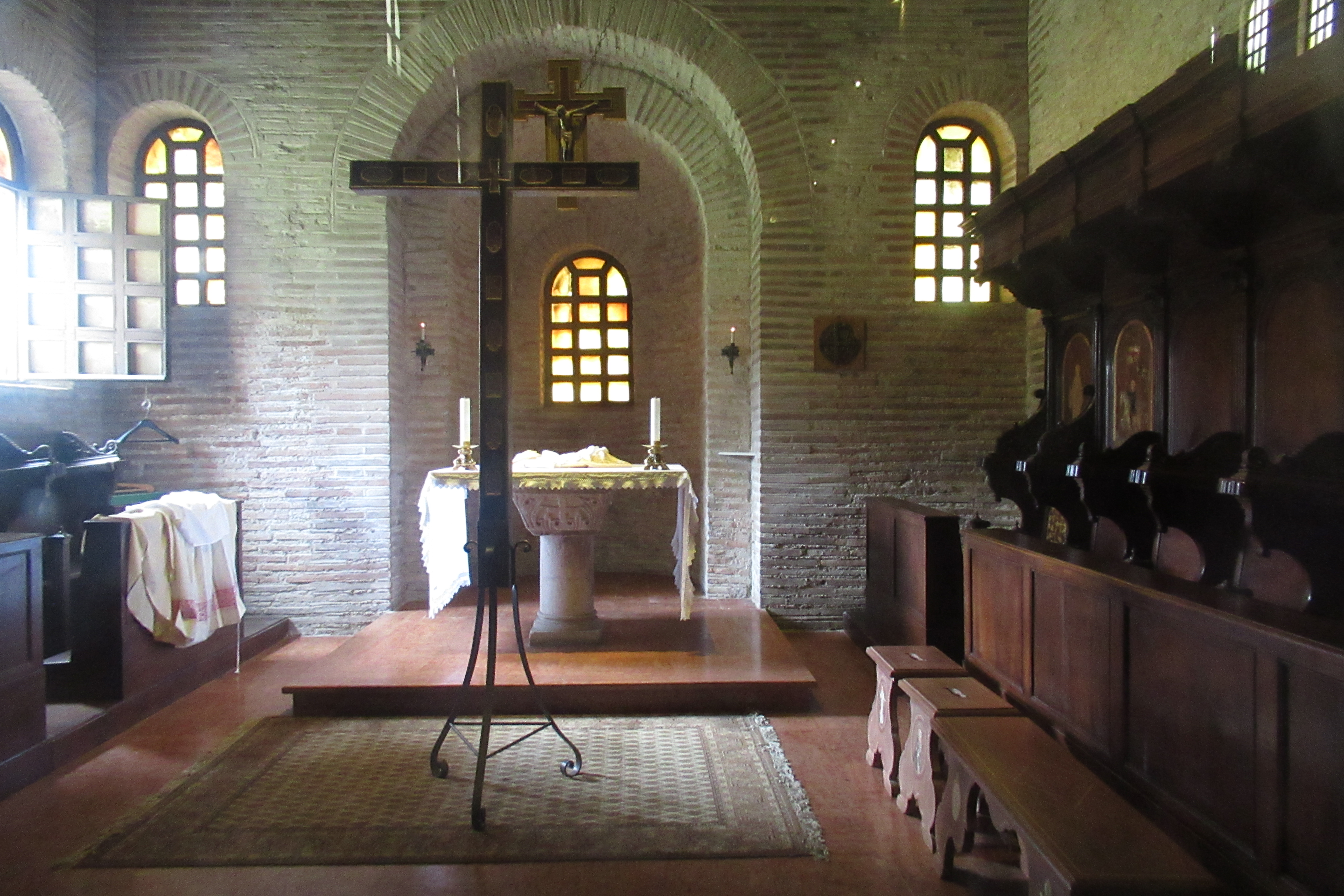 • Après le petit déjeuner copieux dans le très beau cadre de la salle à manger du Ai Giardini di San Vitale, nous n’avons que 8km/15 mn pour rejoindre Classe, l’ancien Port de Ravenne. C’est là que nous visitons cette grandiose Basilique de Sant’Appolinare*** (l’autre…).