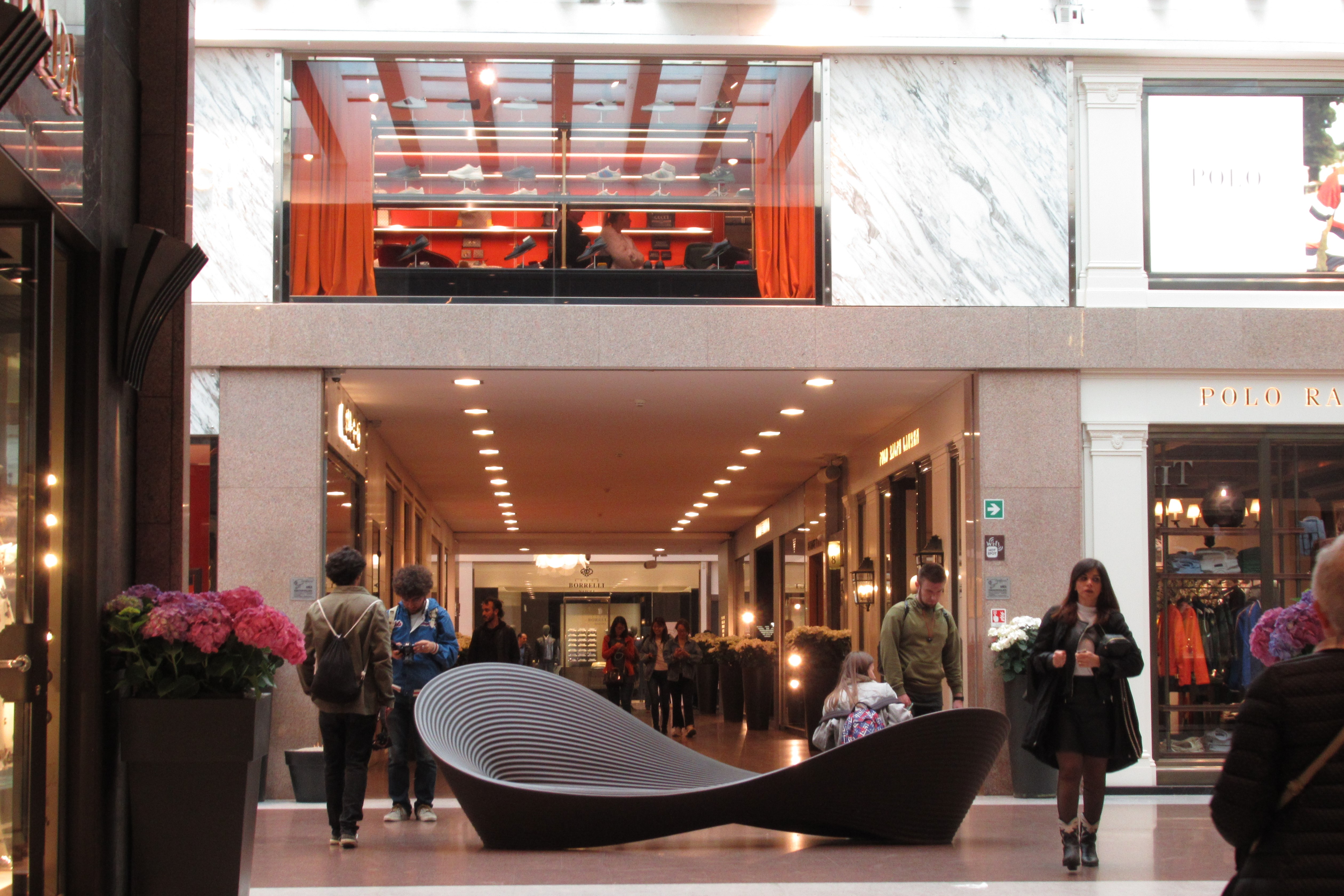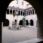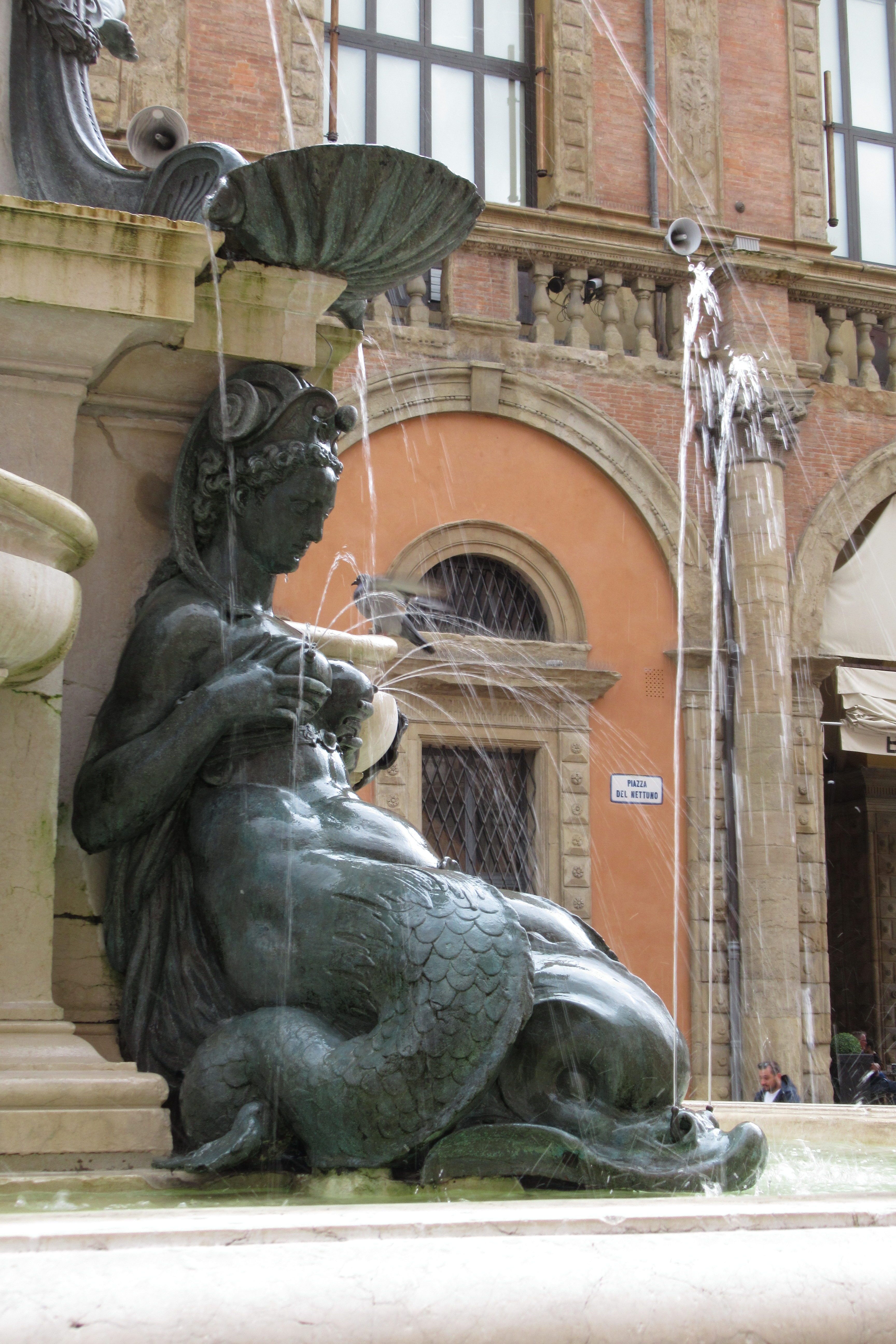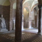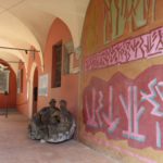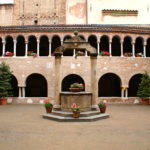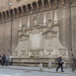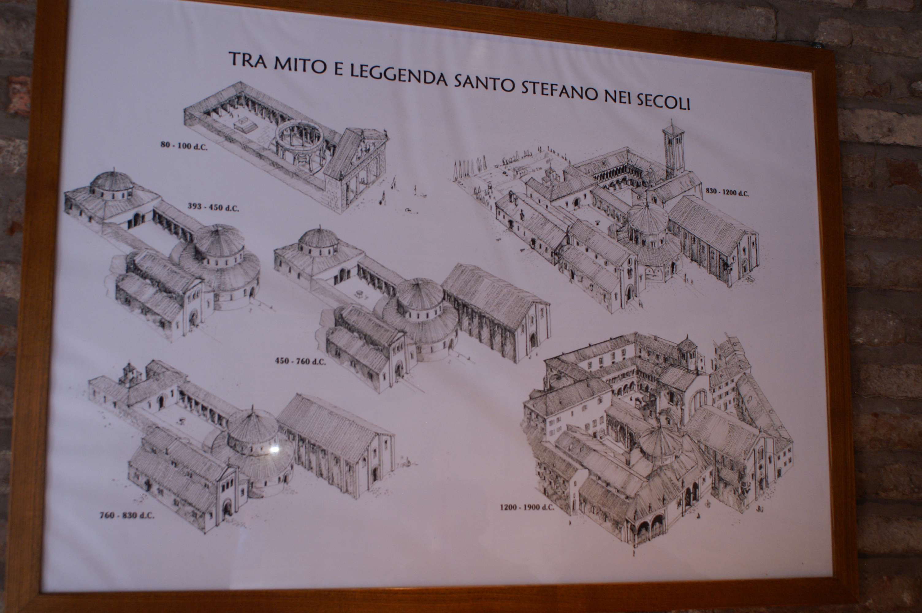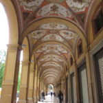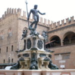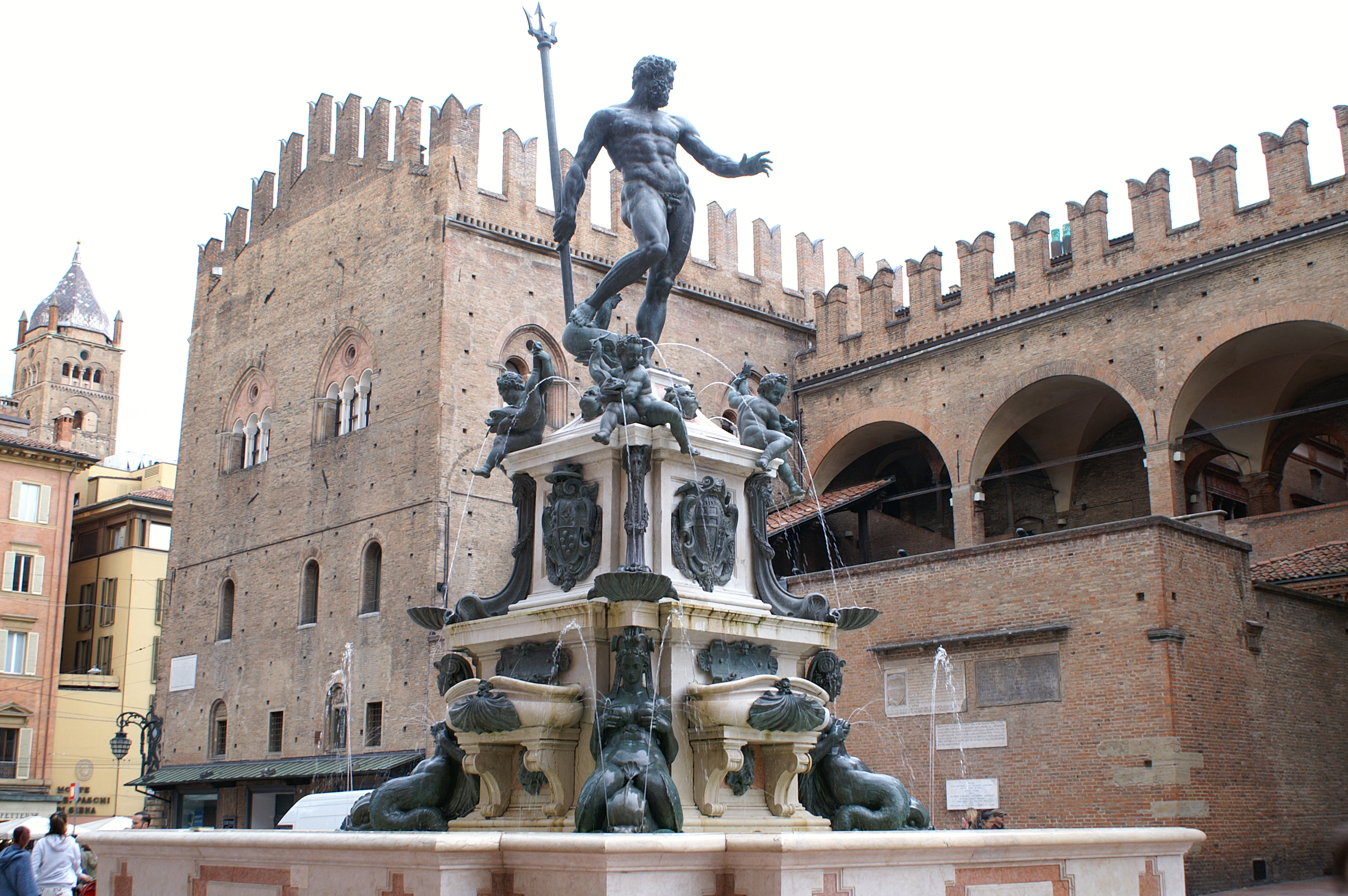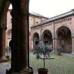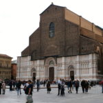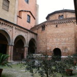 • D’abord emprunter les trottoirs mais surtout quelques uns des 48km d’arcades (bien pratiques) vers la piazza Maggiore**, la fontaine de Neptune**, le palais de l’Archiginnasio (en travaux), une galerie de commerces « très haut de gamme » : Gucci, Rolex, Hermès et Cie… puis nous nous retrouvons, vers l’Est, sur la plazza Santo Stefano*** et son incroyable complexe de 4 églises imbriquées + chapelles et 2 cloîtres, magnifiques ! surtout avec les commentaires du « frère » présent, ponctionneur de dons.