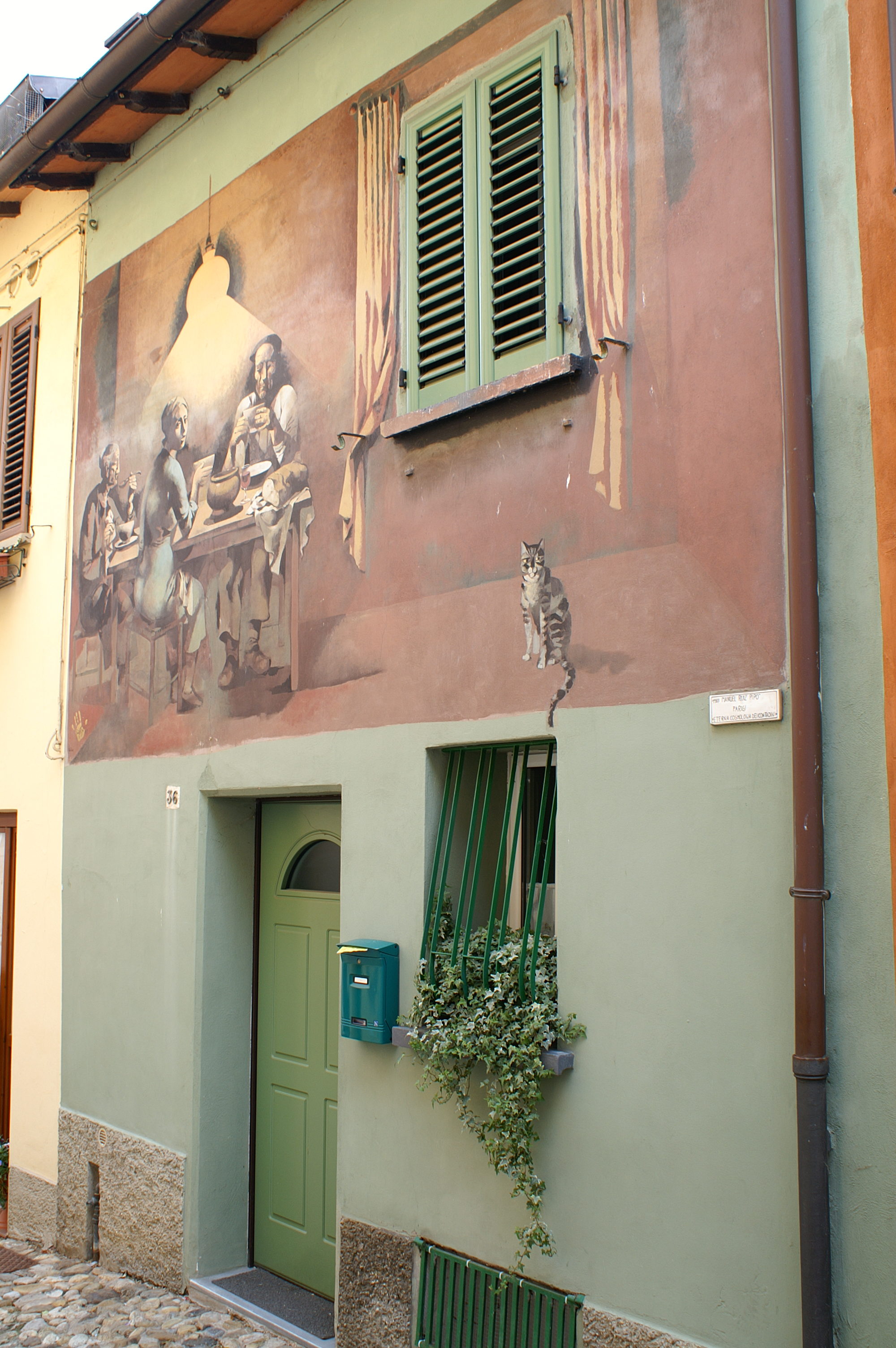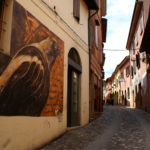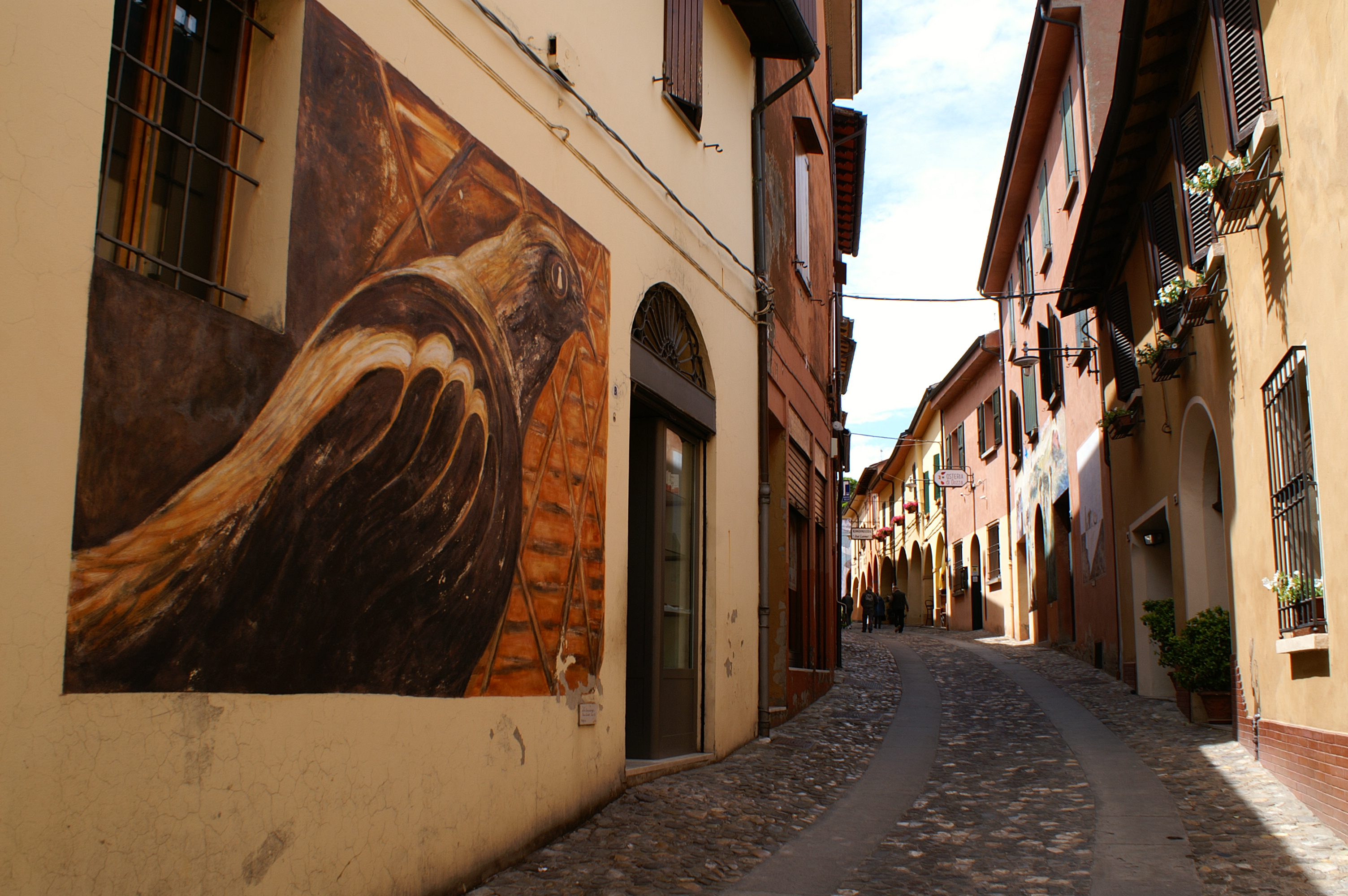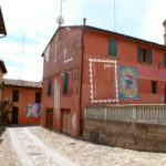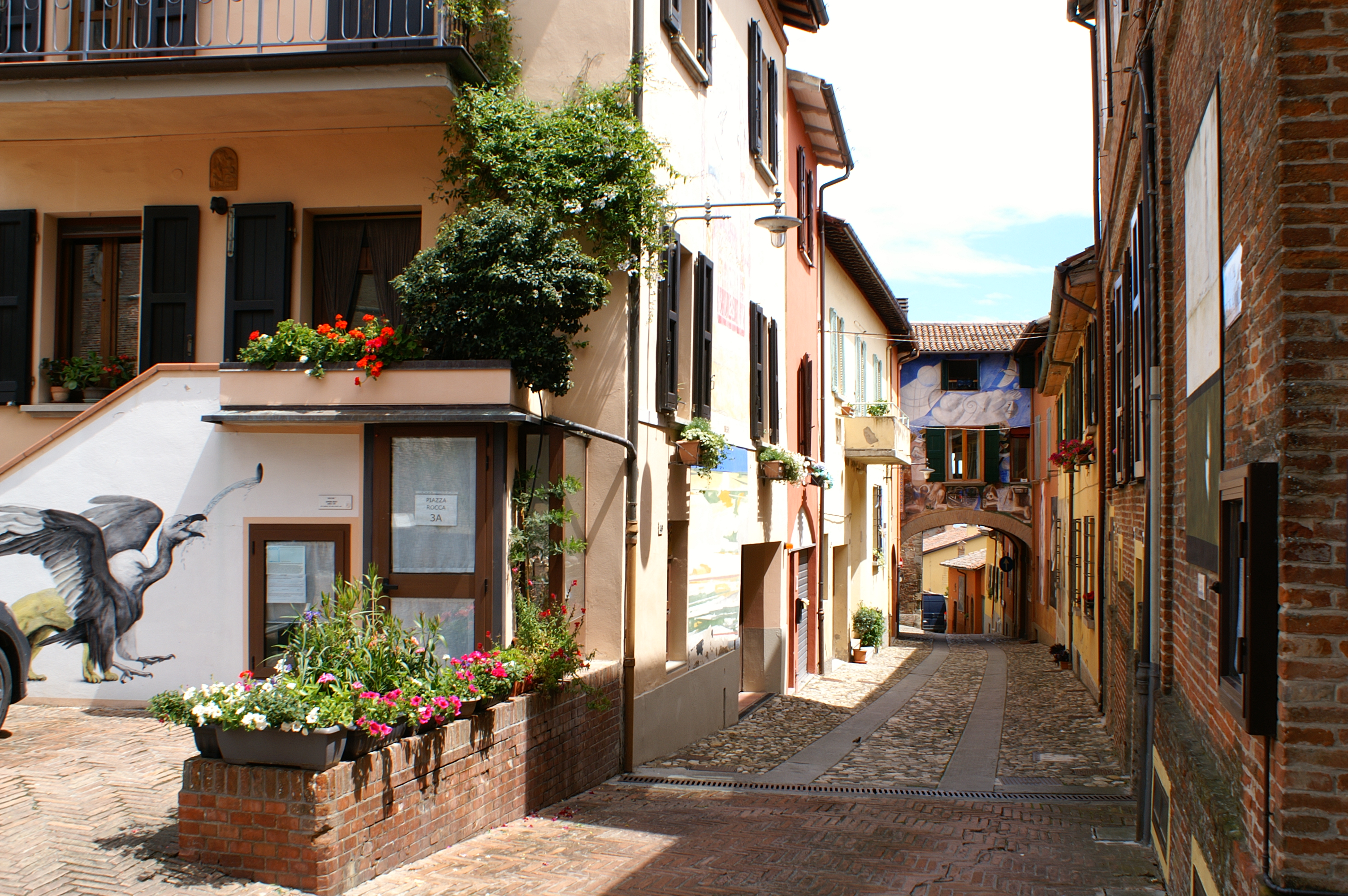 • Vers l’Ouest encore pour 11km/20mn et le village coloré de Dozza (c’est tout petit avec une rue principale et une petite rue parallèle= 60mx500m). Jolies façades et fresques peintes. Puis pique-nique sur le parking à l’entrée. Nous en repartons vers 13h30.