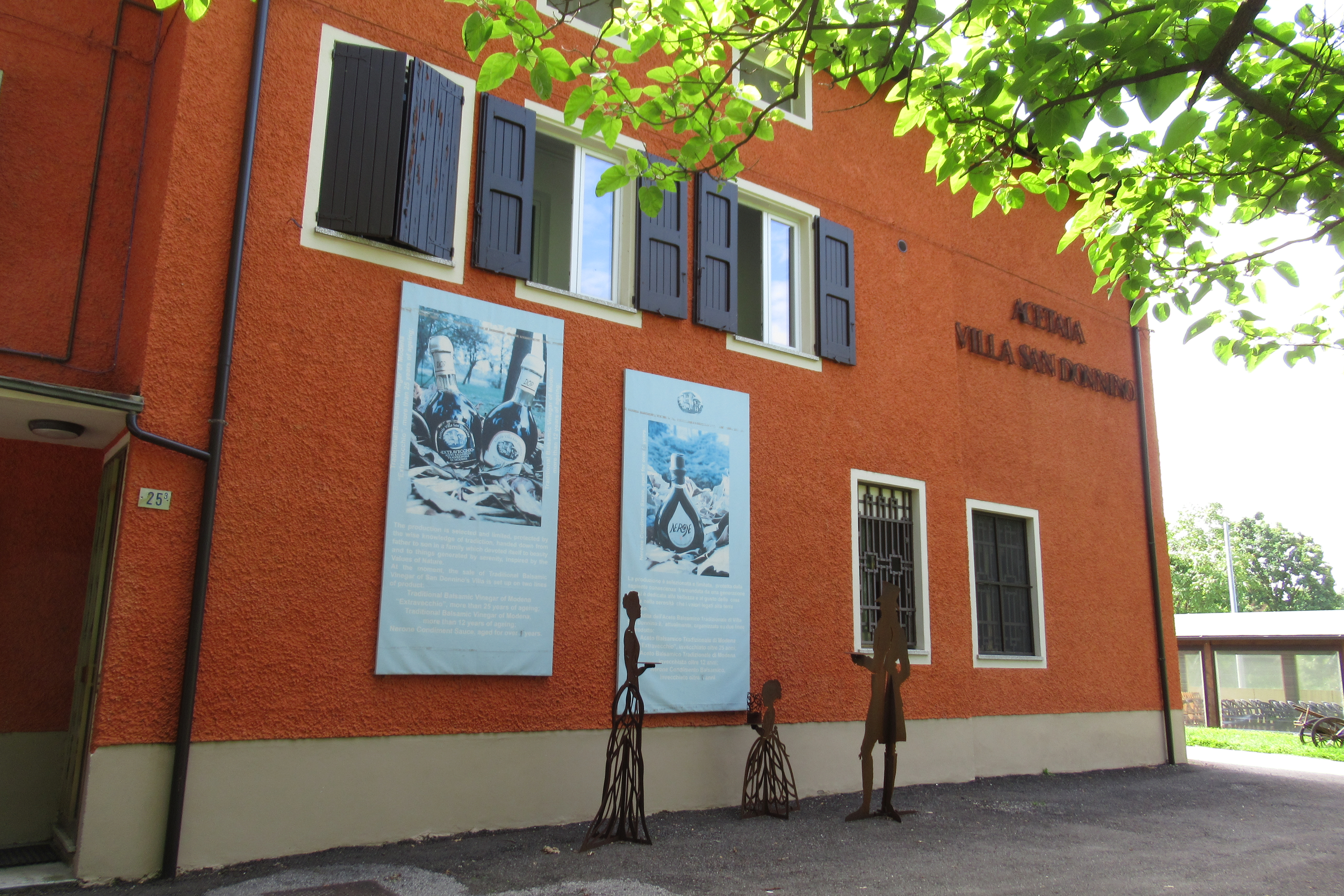 - Après un copieux petit déjeuner à l’hôtel Palace de Bologne, nous partons tranquillement vers Modène. Ma troupe n’étant pas décidée pour un départ « tôt » c’est-à-dire 9h00 maxi, je dois zapper à contre-cœur la visite de la collection Panini de modèles anciens Maserati (au Sud/Ouest de Modène), pour honorer la visite réservée de l’Acetaia San Donnino*** (au Sud/Est de Modène, prévue à 11h30, et gratuite, durée 1h00). Juste avant d’y entrer, une « surprise » passe devant nous: 2 prototypes camouflés de très rares Ferrari Monza SP2 (499 exemplaires prévus en SP1 et SP2 à plus de 1,6 mio€/pièce, moteur V12 de 810ch) en essai routier, Ouahh/Vrooum. Les portes de l’Acetaia s’ouvrent à 11h00 et nous sommes sympathiquement accueillis. Suivent les explications très détaillées sur la fabrication du « Vrai » vinaigre Balsamique Traditionnel de Modène. Passage par la boutique pour un petit achat…