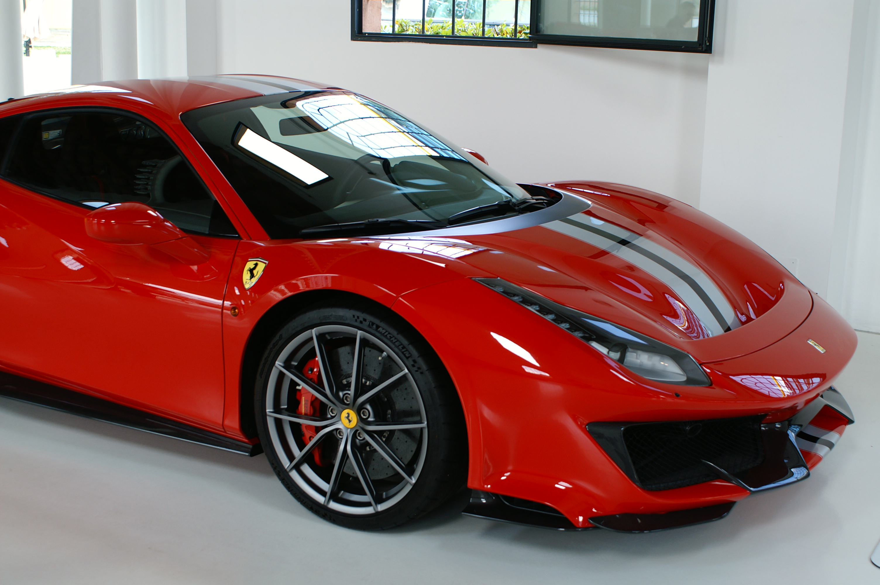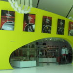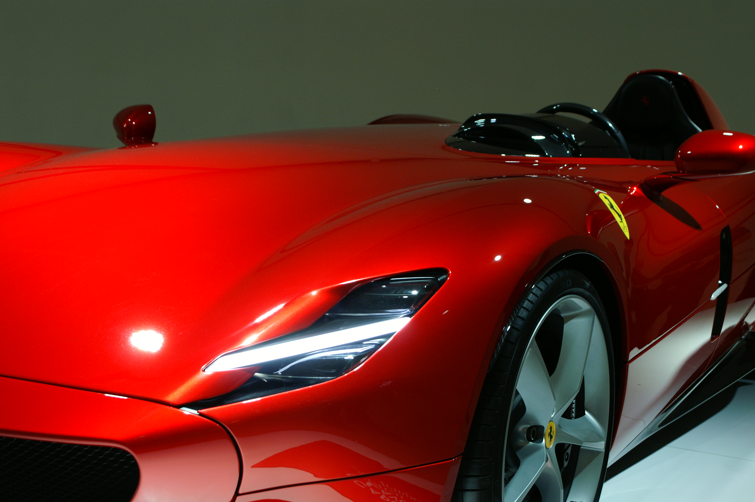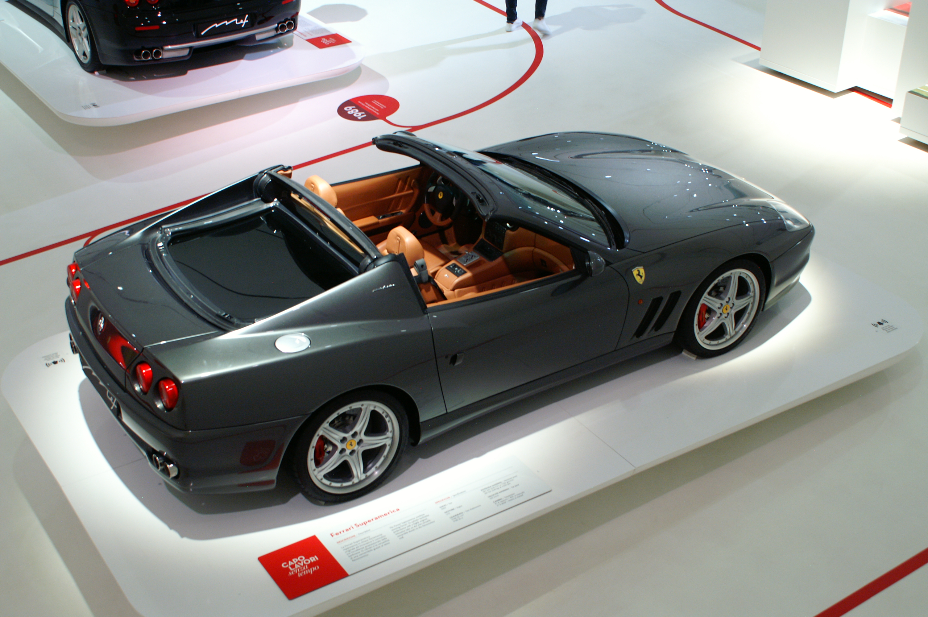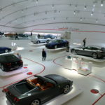 - Le musée Enzo Ferrari*** photo ci-dessus, est tout près, derrière la gare, un superbe bâtiment futuriste construit à côté de la maison où est né le Commendatore. Nous y sommes pour 14h15. La scénographie, lumières, socles et murs blancs est magnifique comme les modèles d’exception exposés (dont une 750 Monza de 1955 à l’entrée, et un proto Monza SP1 de toute beauté, au fond à droite). Juste à côté un autre bâtiment expose les moteurs, une réplique du bureau du Chef, 3 voitures (la F1 de A.Prost, une actuelle 488, et une Dino). Prix 44€/3pers.