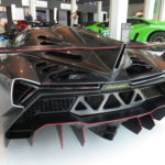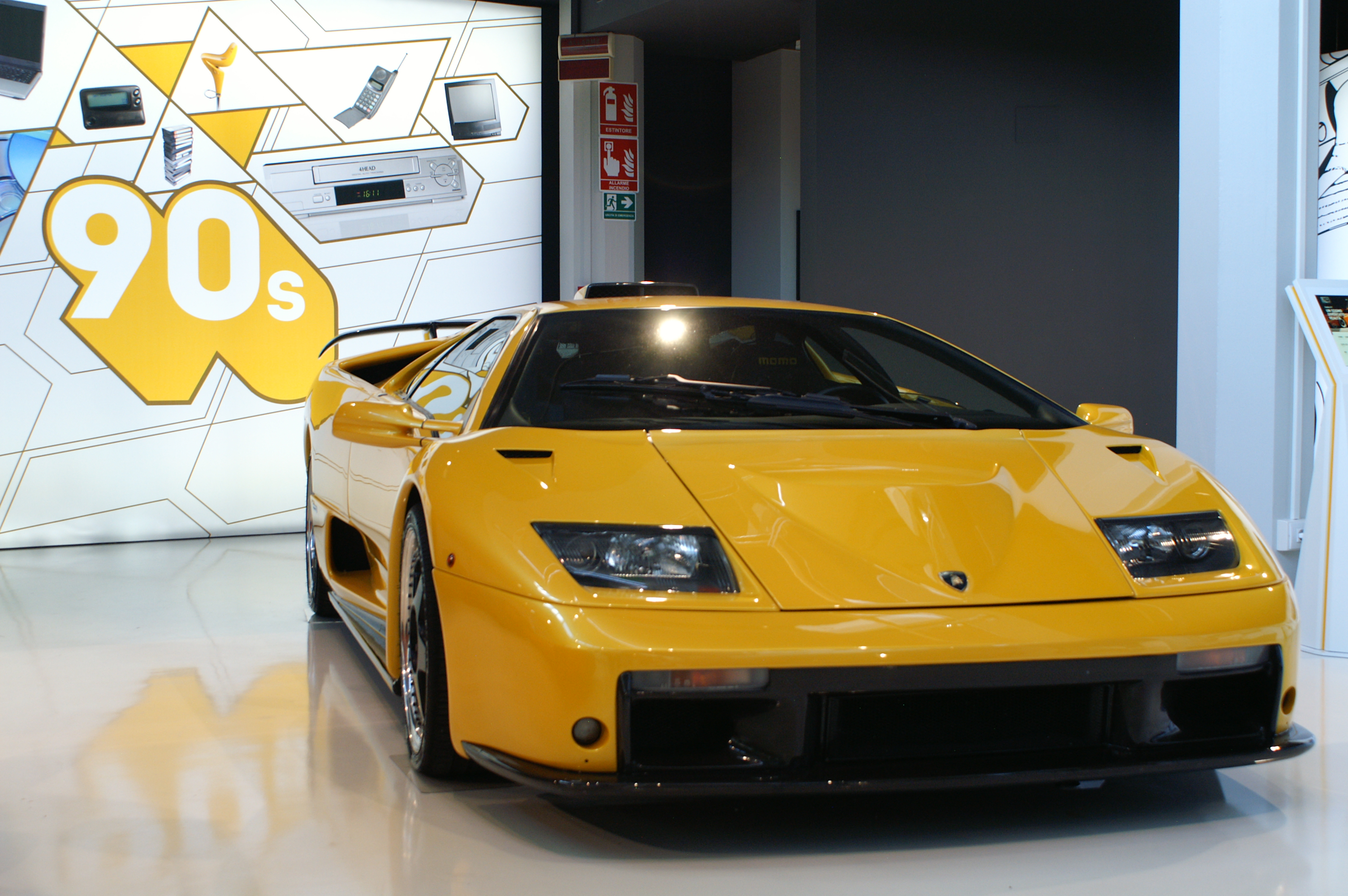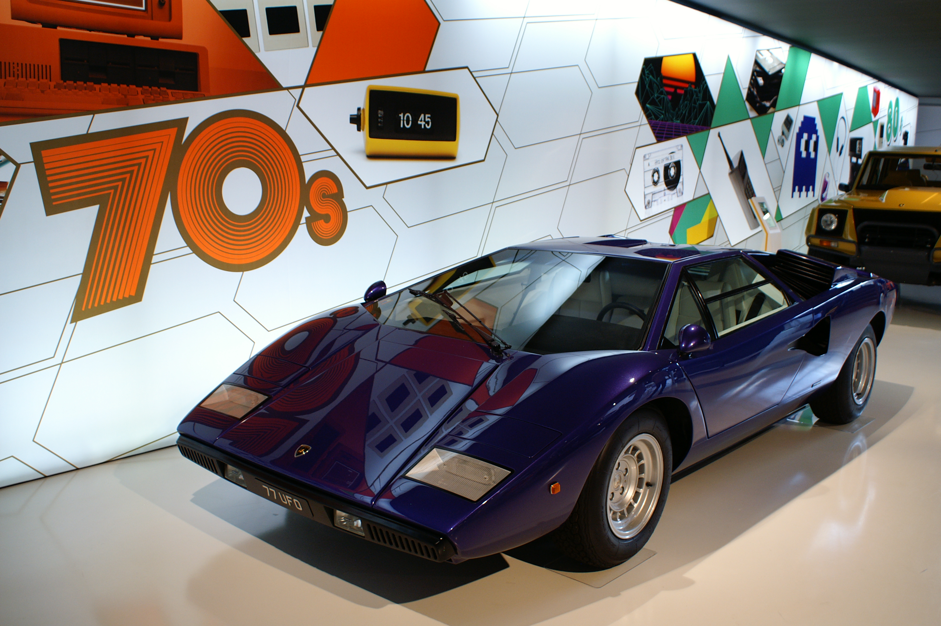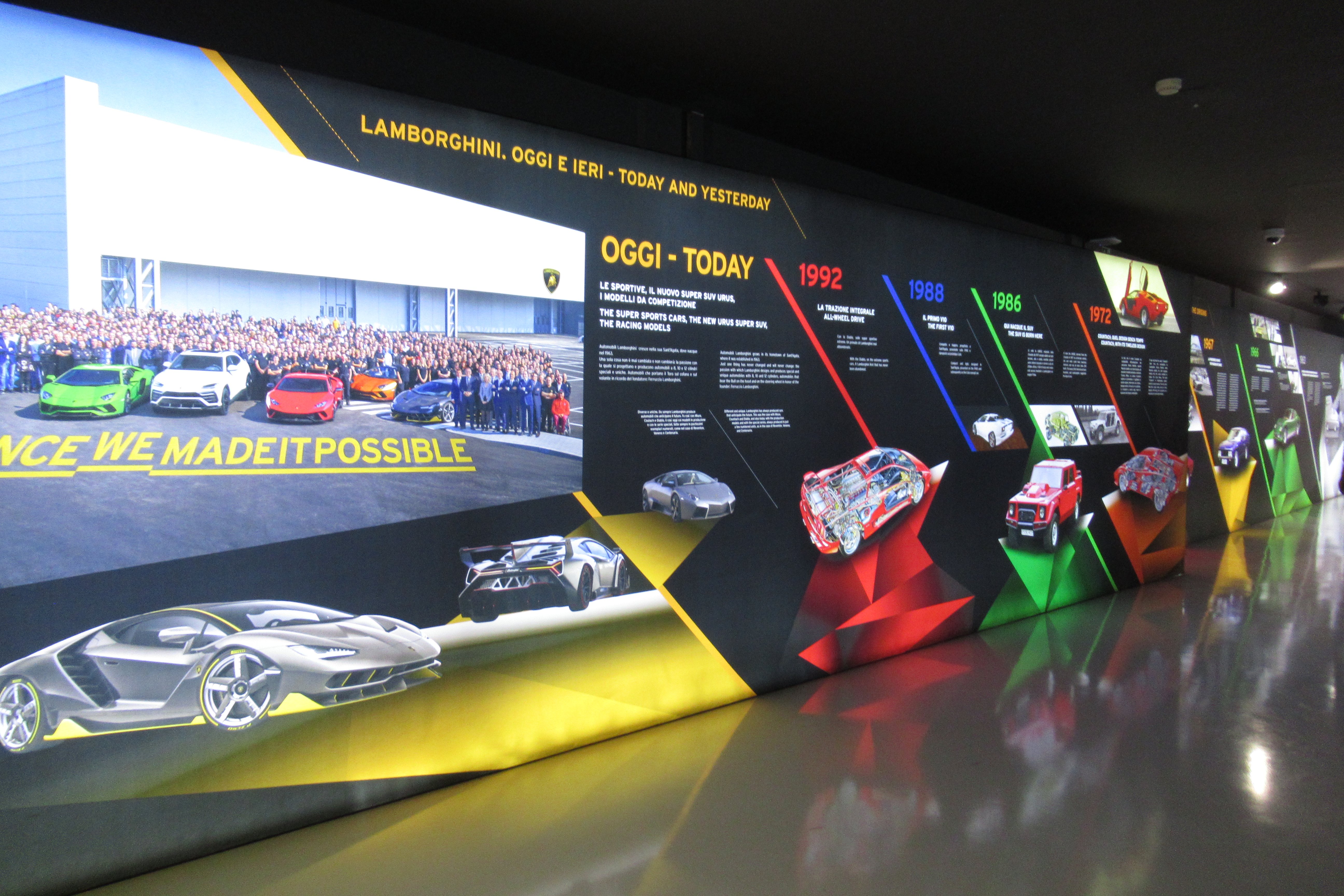 - 1h00 plus tard, en route pour 18km/25mn : le rêve continue à Sant’Agata Bolognese, siège de Lamborghini et du muséo*** avec des bolides encore plus démonstratifs. Là aussi c’est un écrin sur 2 étages pour les modèles qui ont fait l’histoire de la marque, plus les modèles actuels et les études de style. Prix 39€/3pers. Nous y passons 45mn et vers 16h30 nous mettons le cap sur Ferrare à 61km/1h00.