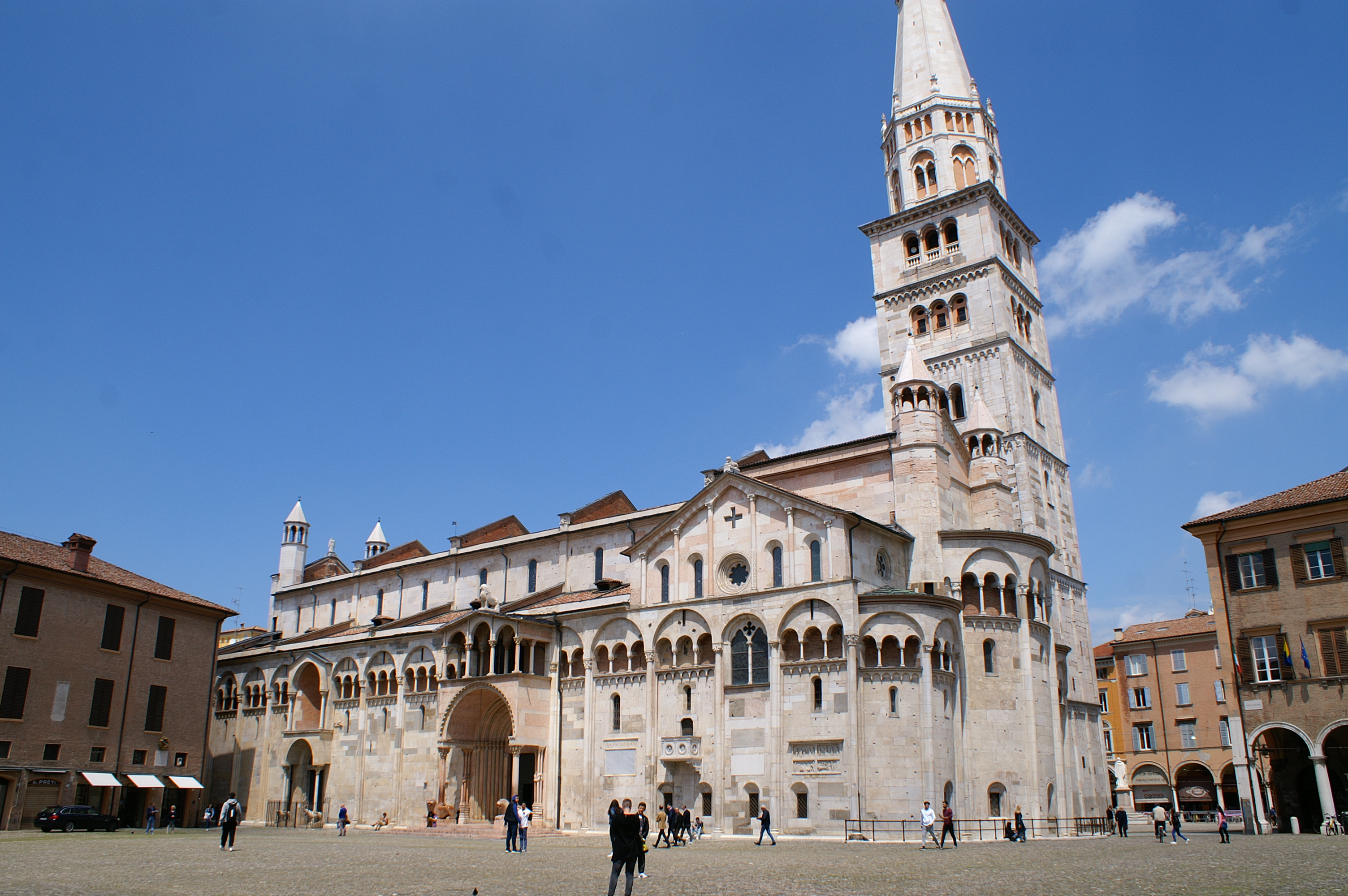 - Nous nous baladons tranquillement dans le beau centre historique*** assez compact : la piazza Grande, le Duomo*** (à visiter, magnifique avec ses chapelles cachées), la Tour Ghirlandina (penchée) fermée de 12h30 à 15h00, et d’autres places et bâtiments (comme le Palazzo Ducale/académie militaire).