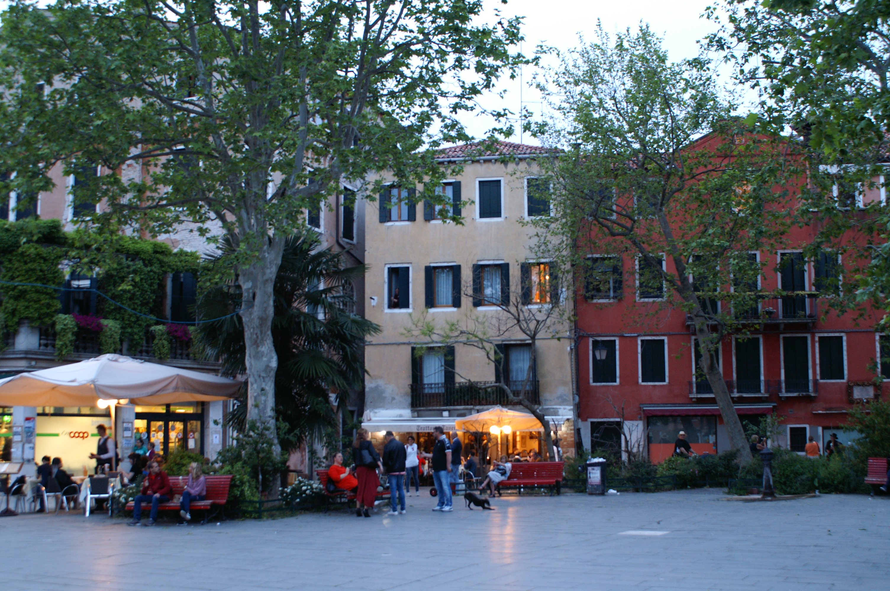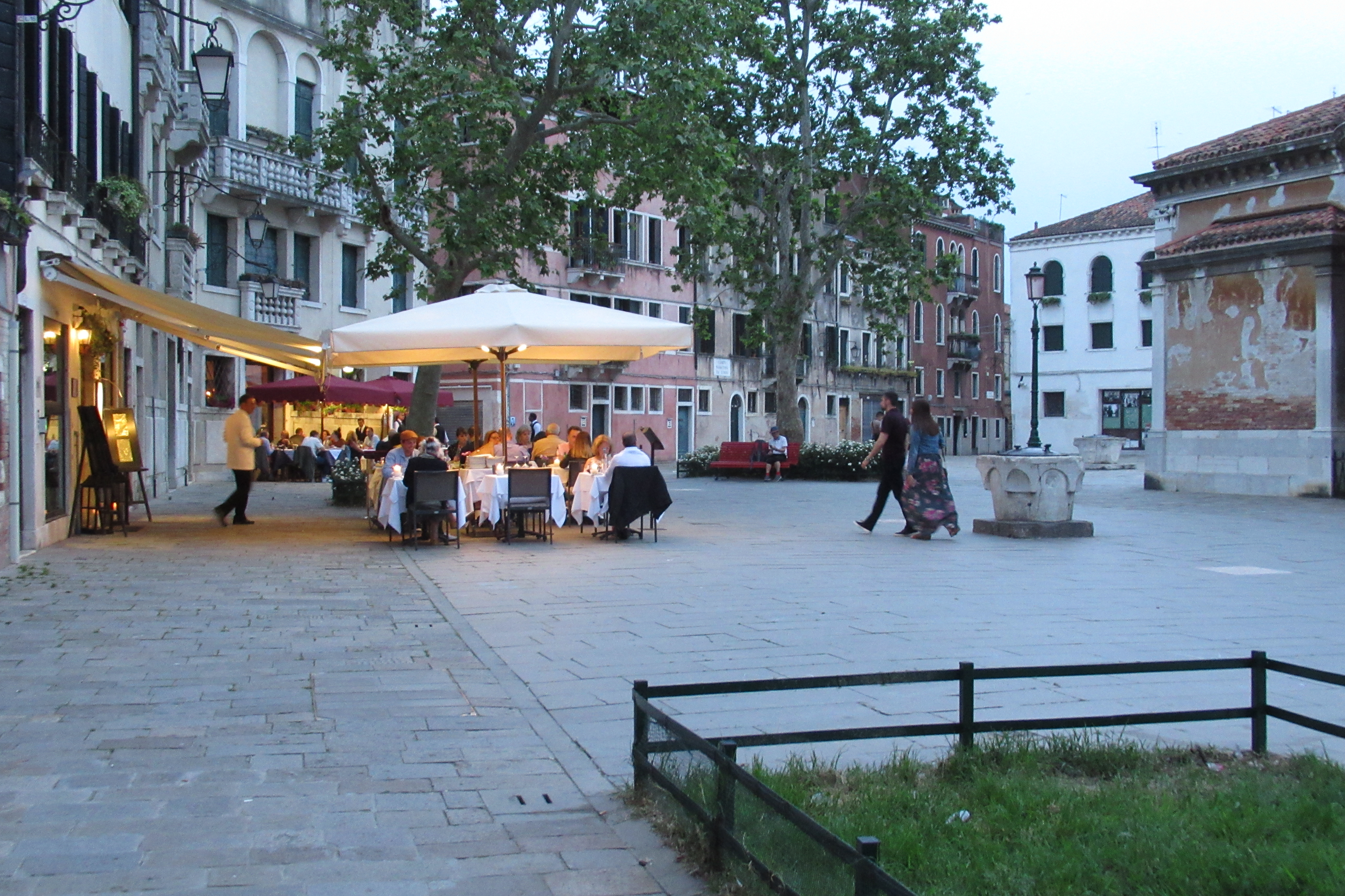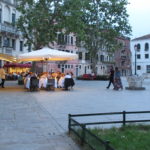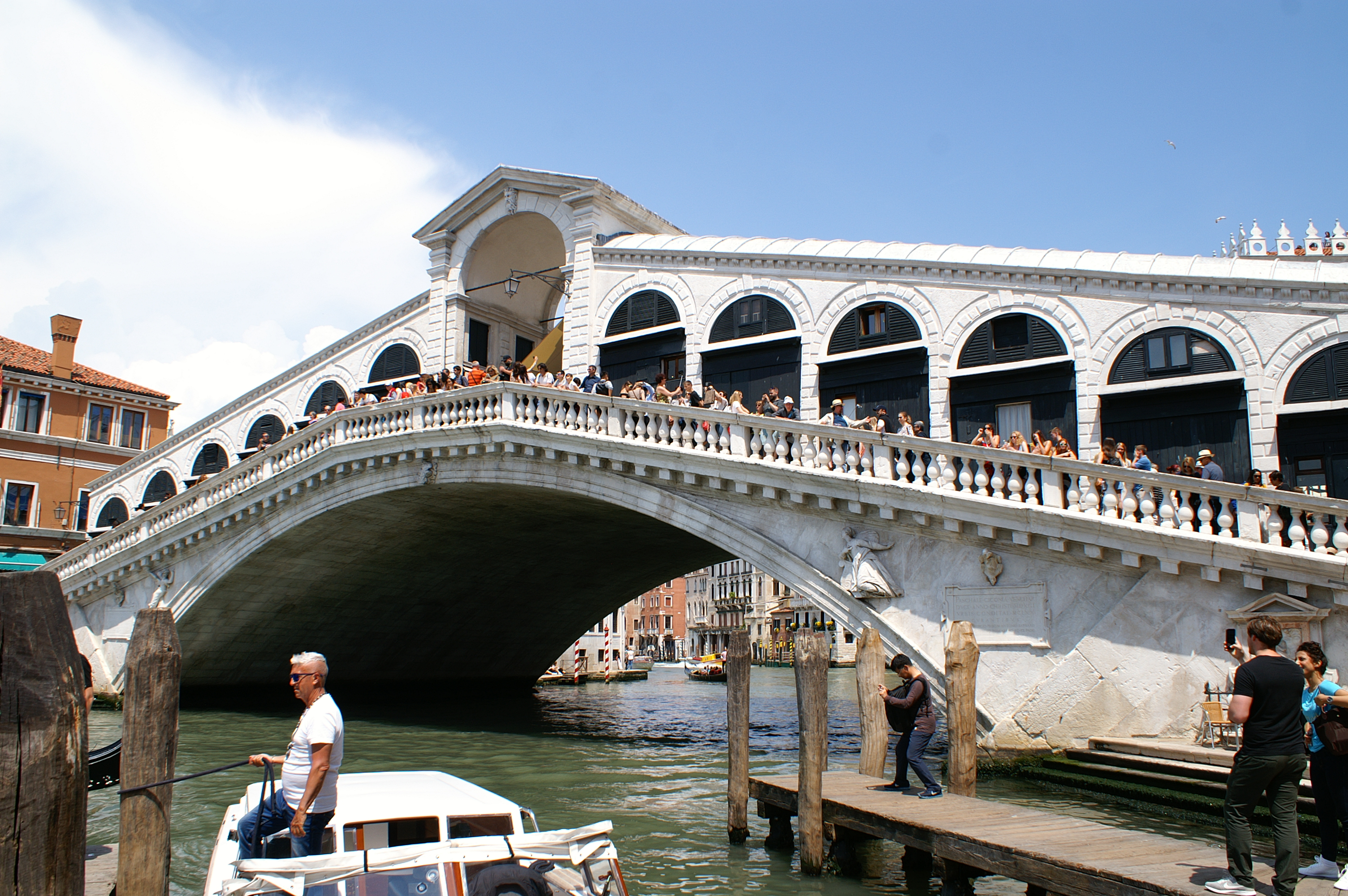 - Même spectacle un peu plus loin au Pont du Rialto que nous traversons comme des saumons remontant le courant… pour atteindre un Campo San Polo plein de douceur de vivre (vers 13h30). Repas à l’appartement, sieste, rangements, classements, car c’est notre dernier jour de vacances.