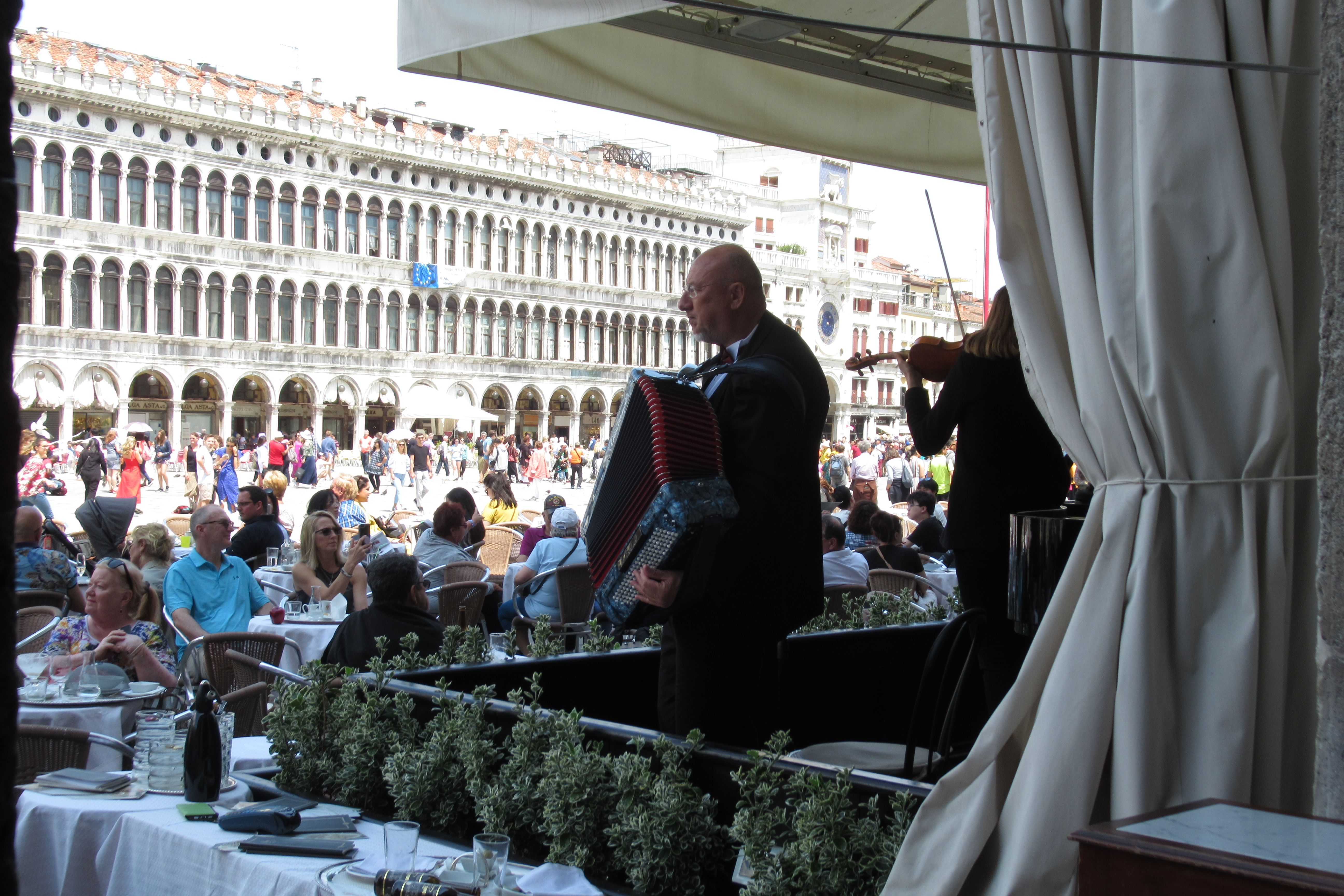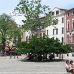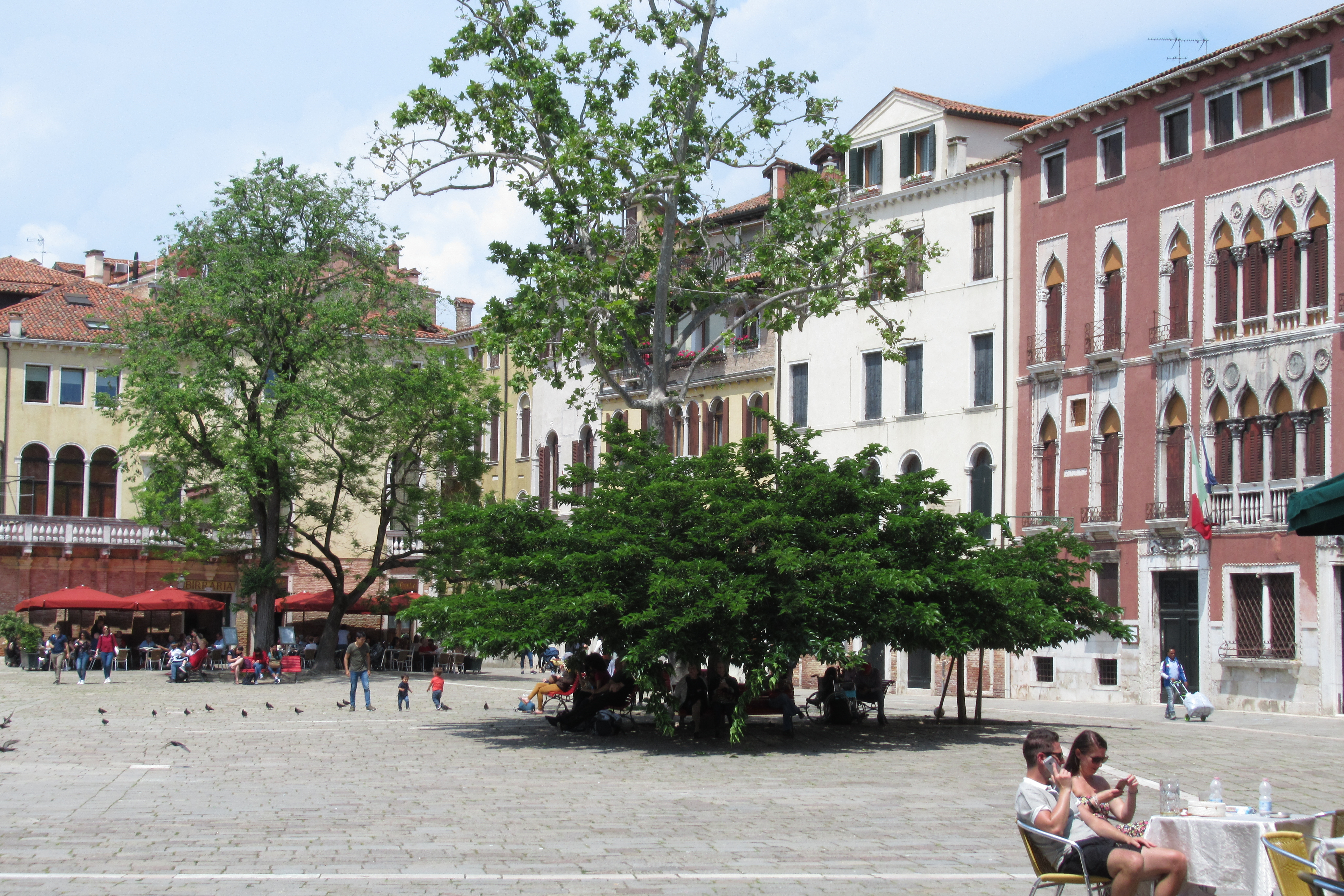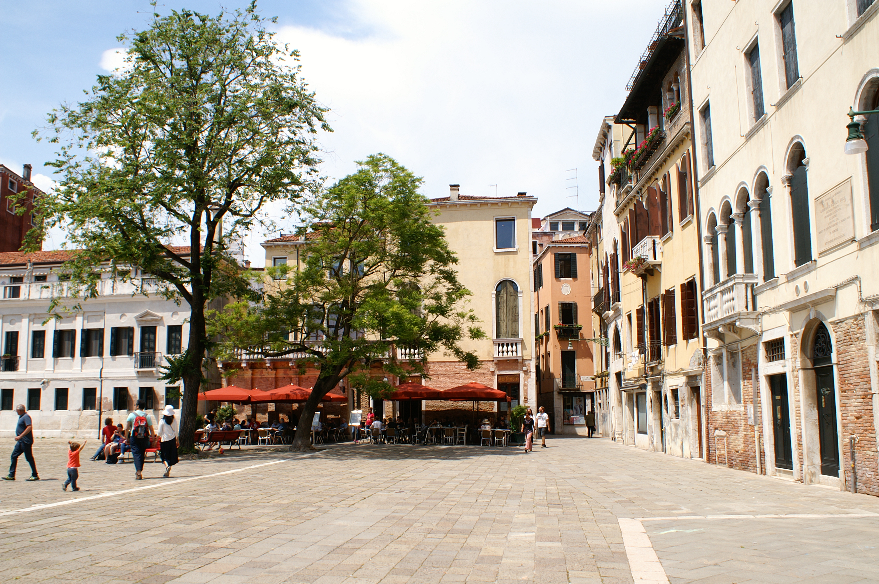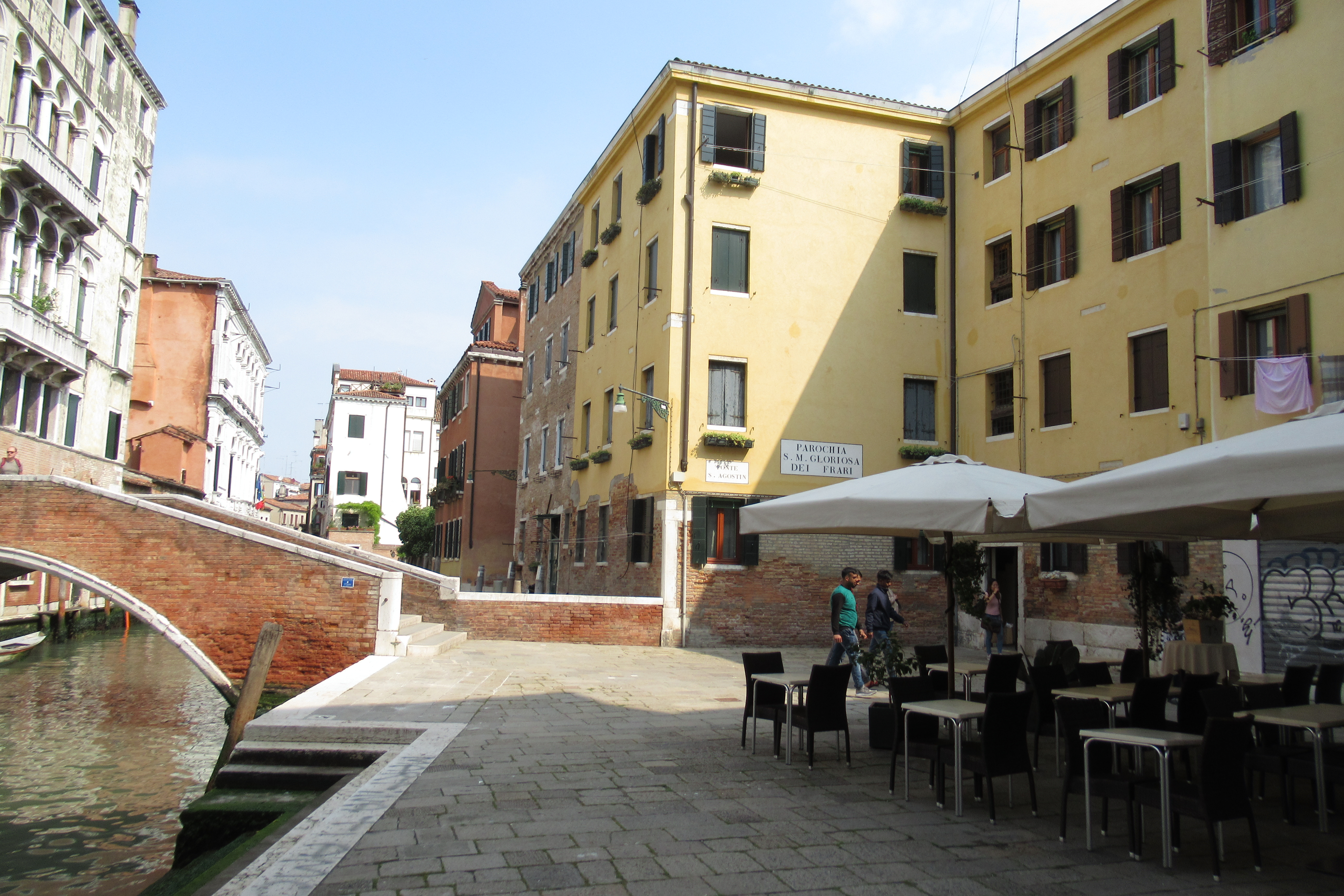 - Même spectacle un peu plus loin au Pont du Rialto que nous traversons comme des saumons remontant le courant… pour atteindre un Campo San Polo plein de douceur de vivre (vers 13h30). Repas à l’appartement, sieste, rangements, classements, car c’est notre dernier jour de vacances.
