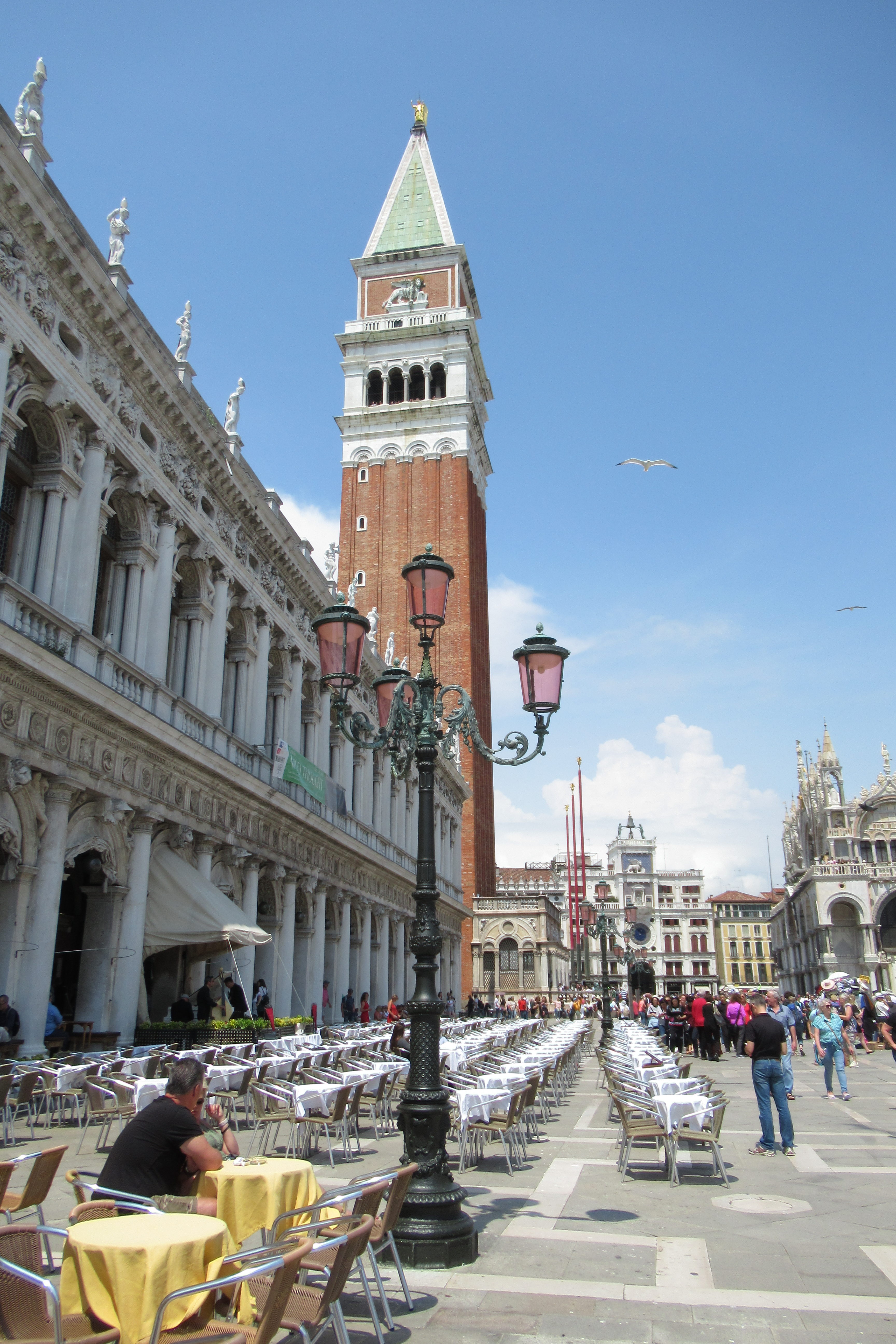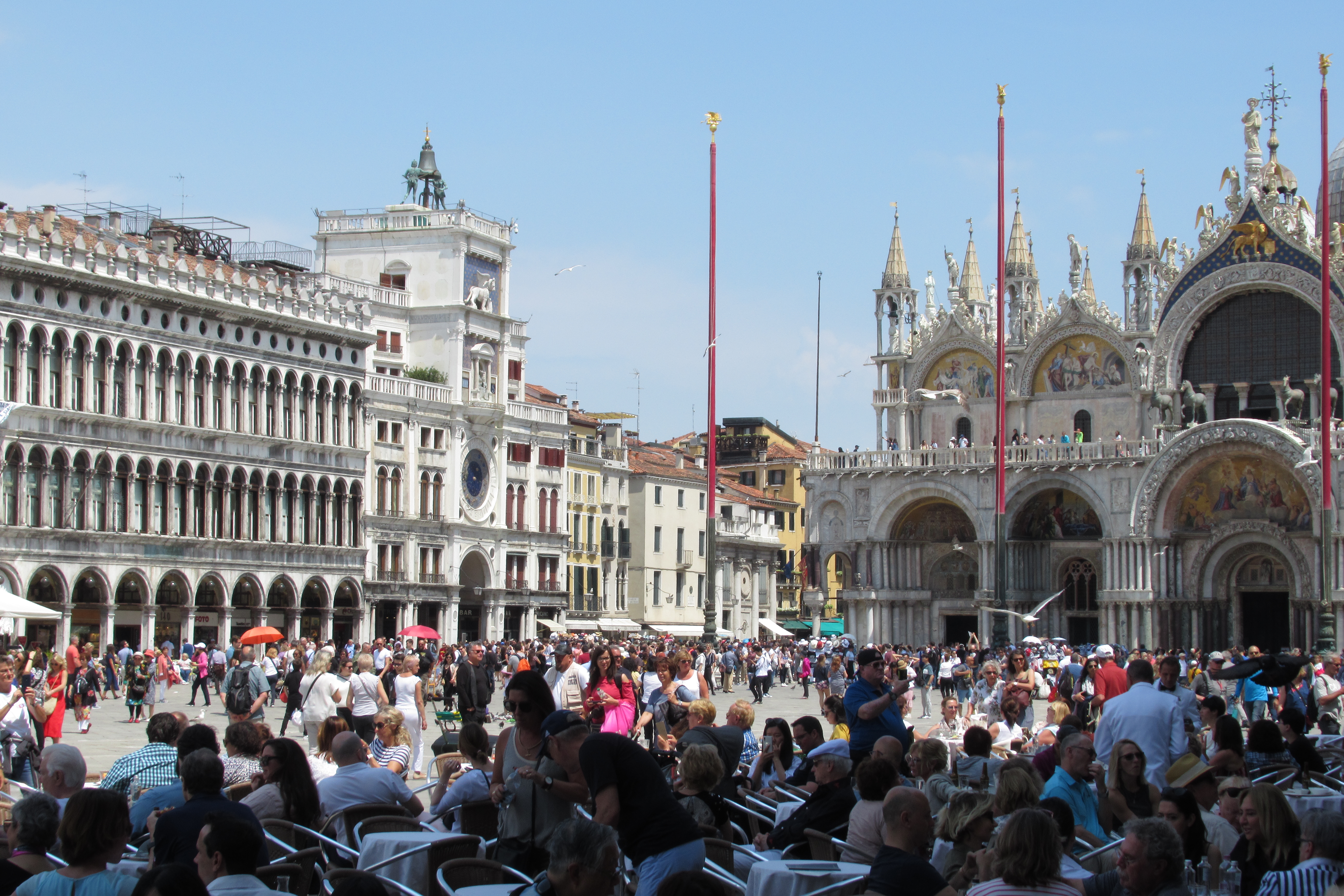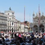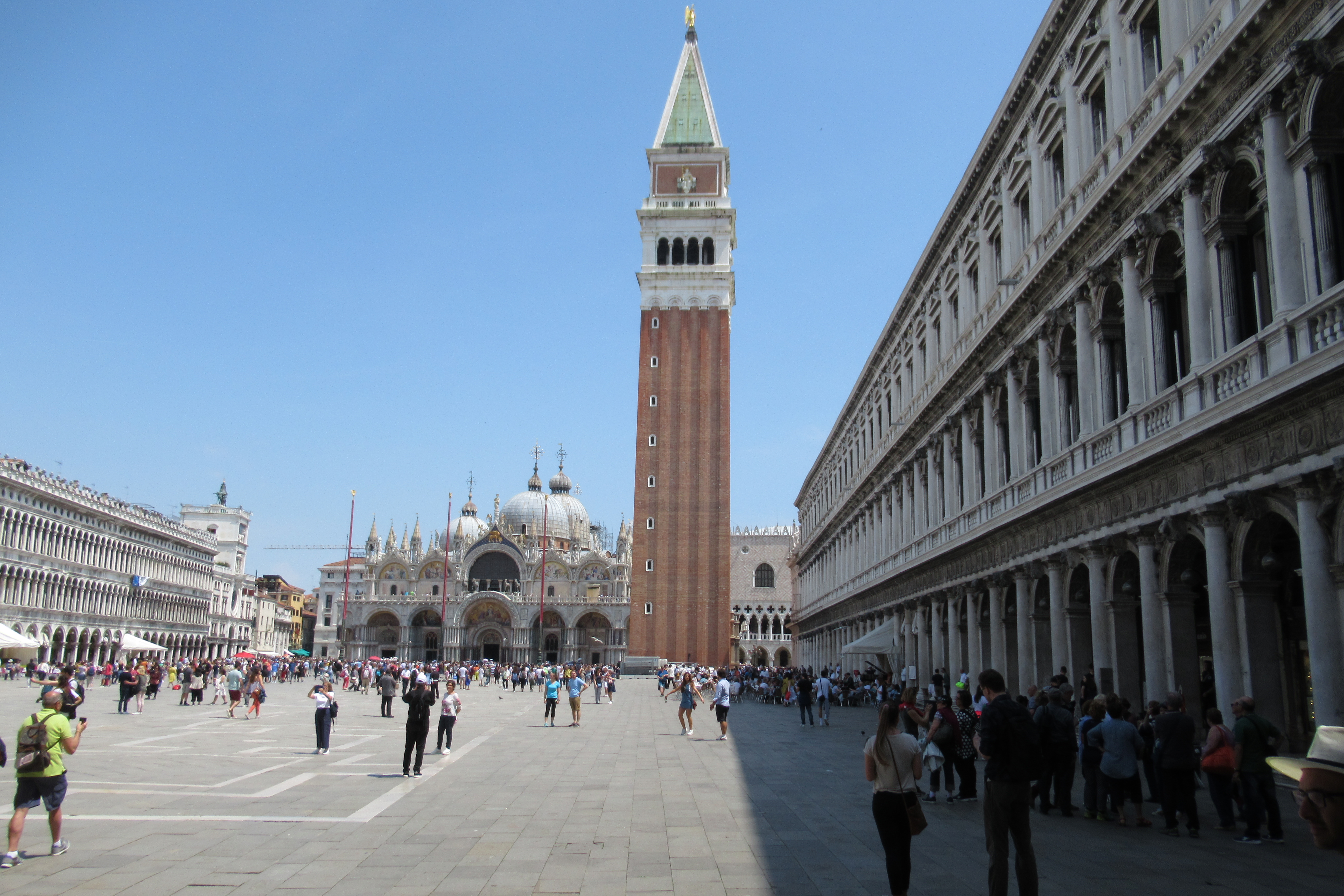 - Un petit coup de vaporetto plus tard et nous voici sur la place Saint Marc***, haut lieu de rassemblement des touristes du monde entier, ou plutôt agglutinés face à la Basilique et au Palais des Doges, car tout au bout c’est plus calme.