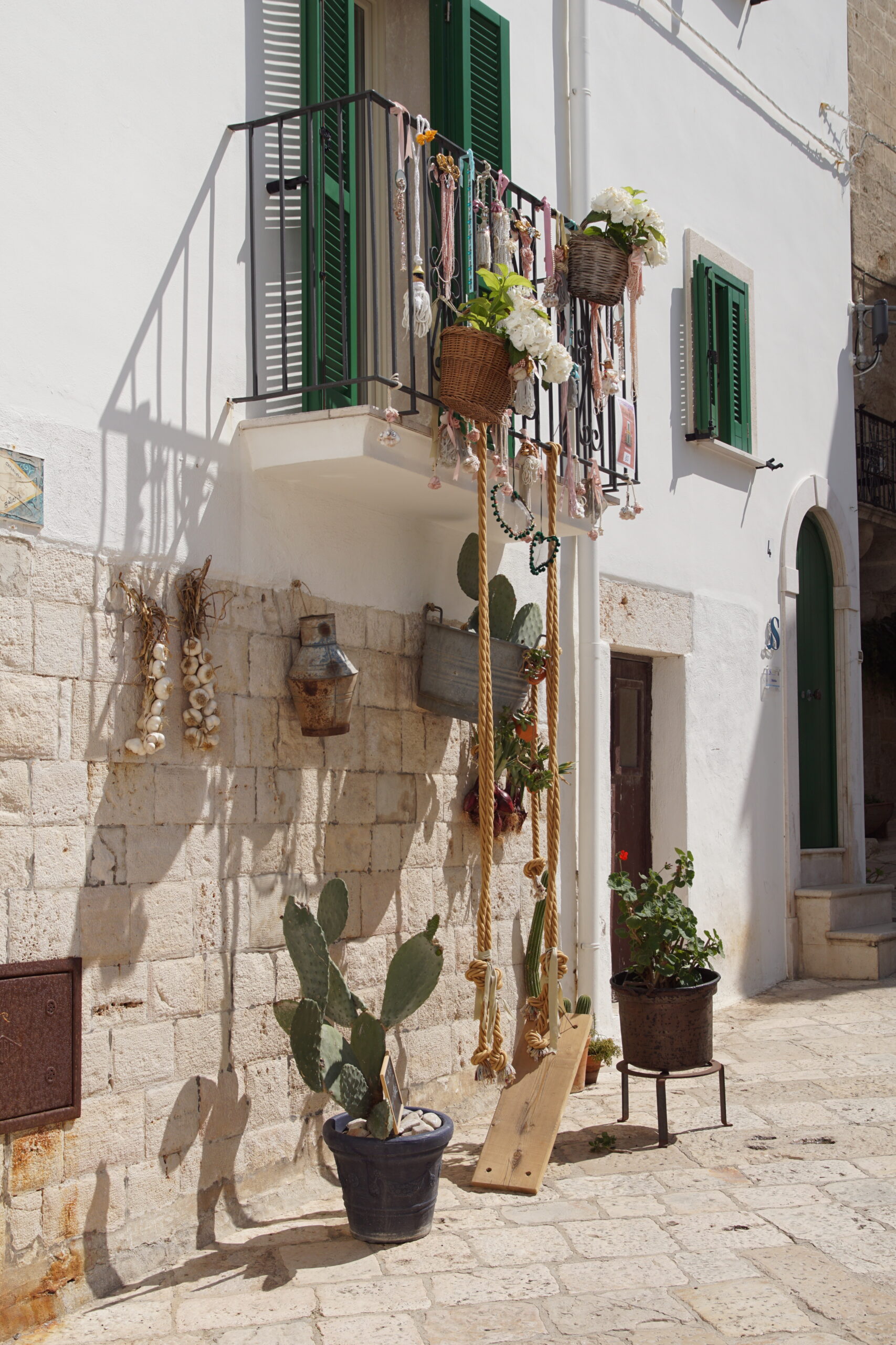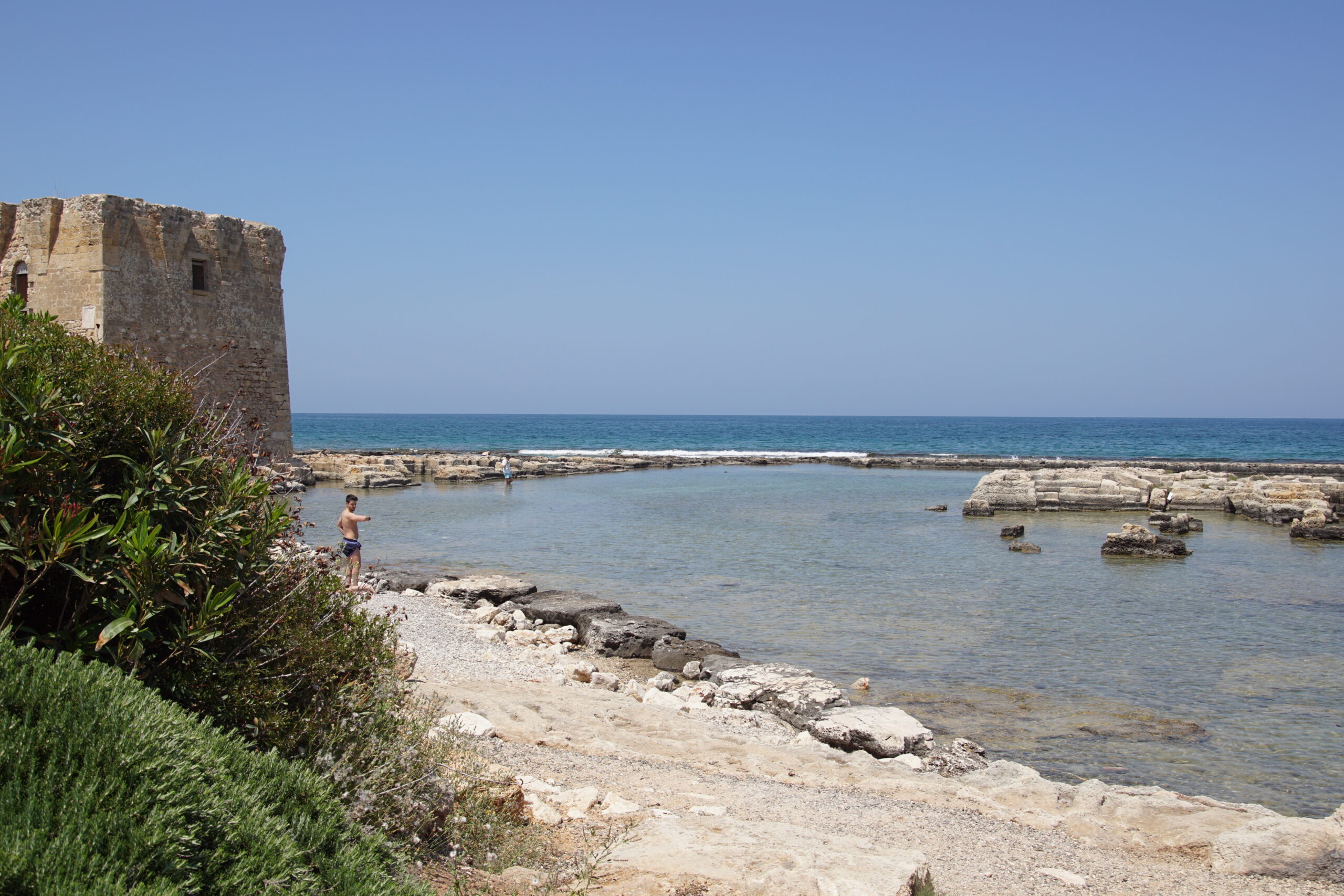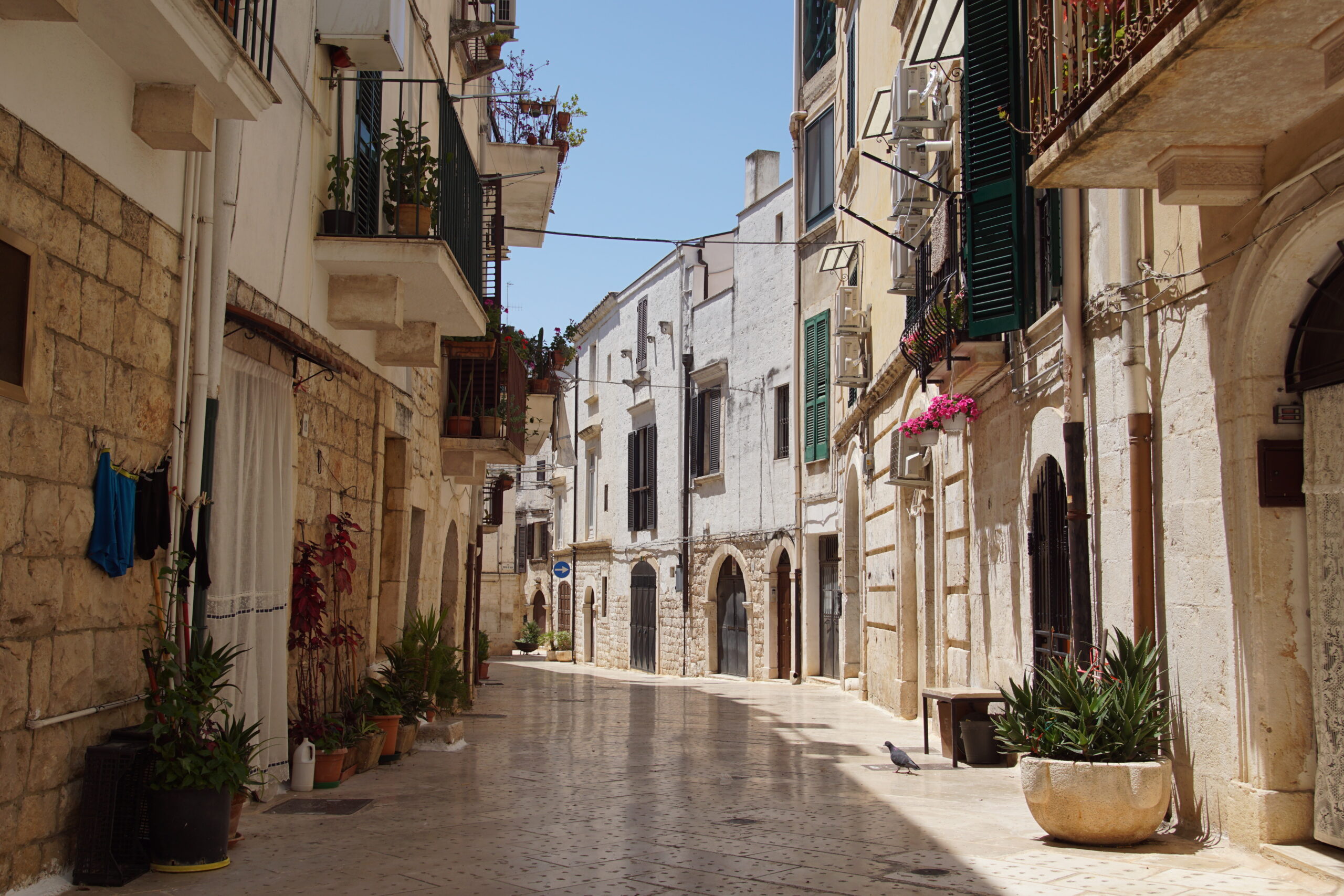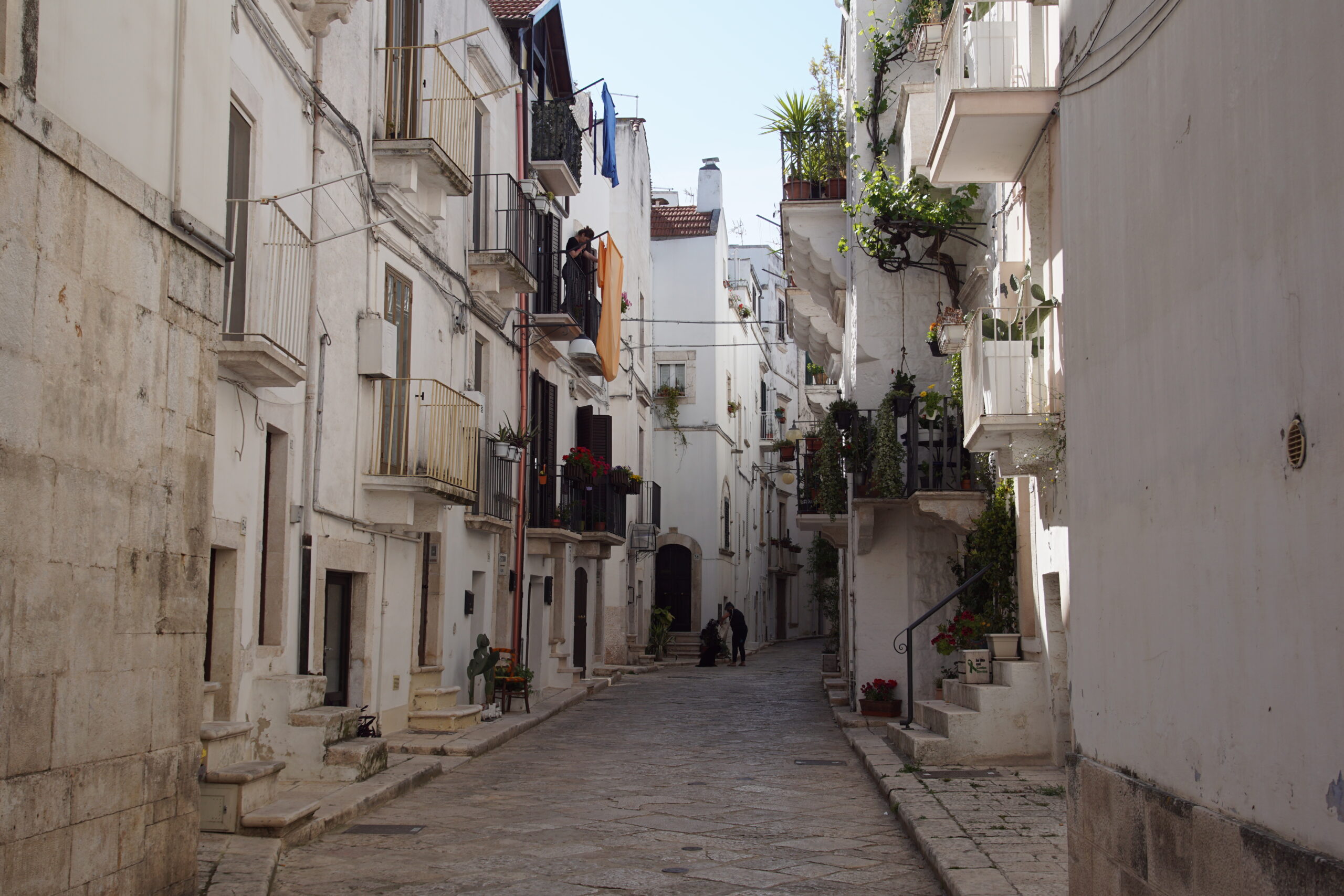 Encore 3km pour Polignano a Mare, un endroit réputé mais envahi, et où se garer vers 14h30 n’est pas facile. Juste en entrée de ville nous avons vu de loin la statue de Domenico Modugno (auteur/chanteur de « Volare »), puis le pont Romain et la plage de Lama Monachile et ses habitations en haut des falaises (photo ci-dessus). Tout à côté, le centre historique est bien sympathique à visiter… et propre !