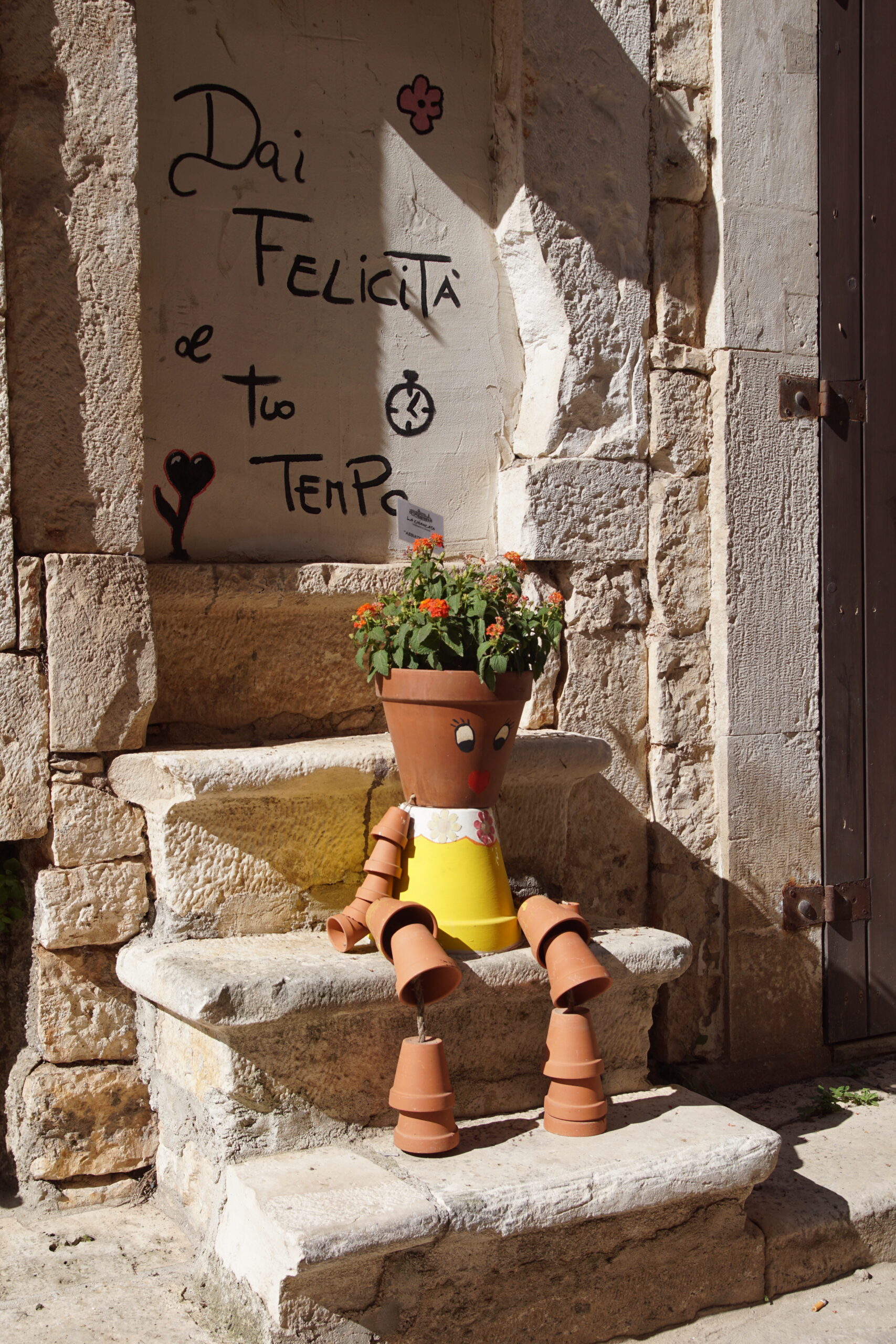 Départ tardif (après le footing de Fabien) pour atteindre d’abord la petite ville de Rutigliano à 25km/30mn. Une place gratuite (marquage blanc*) et à l’ombre nous attend pile à 11h00 devant le Museo del fischietto ! c’est QUOI ? des sifflets en terre cuite très originaux.