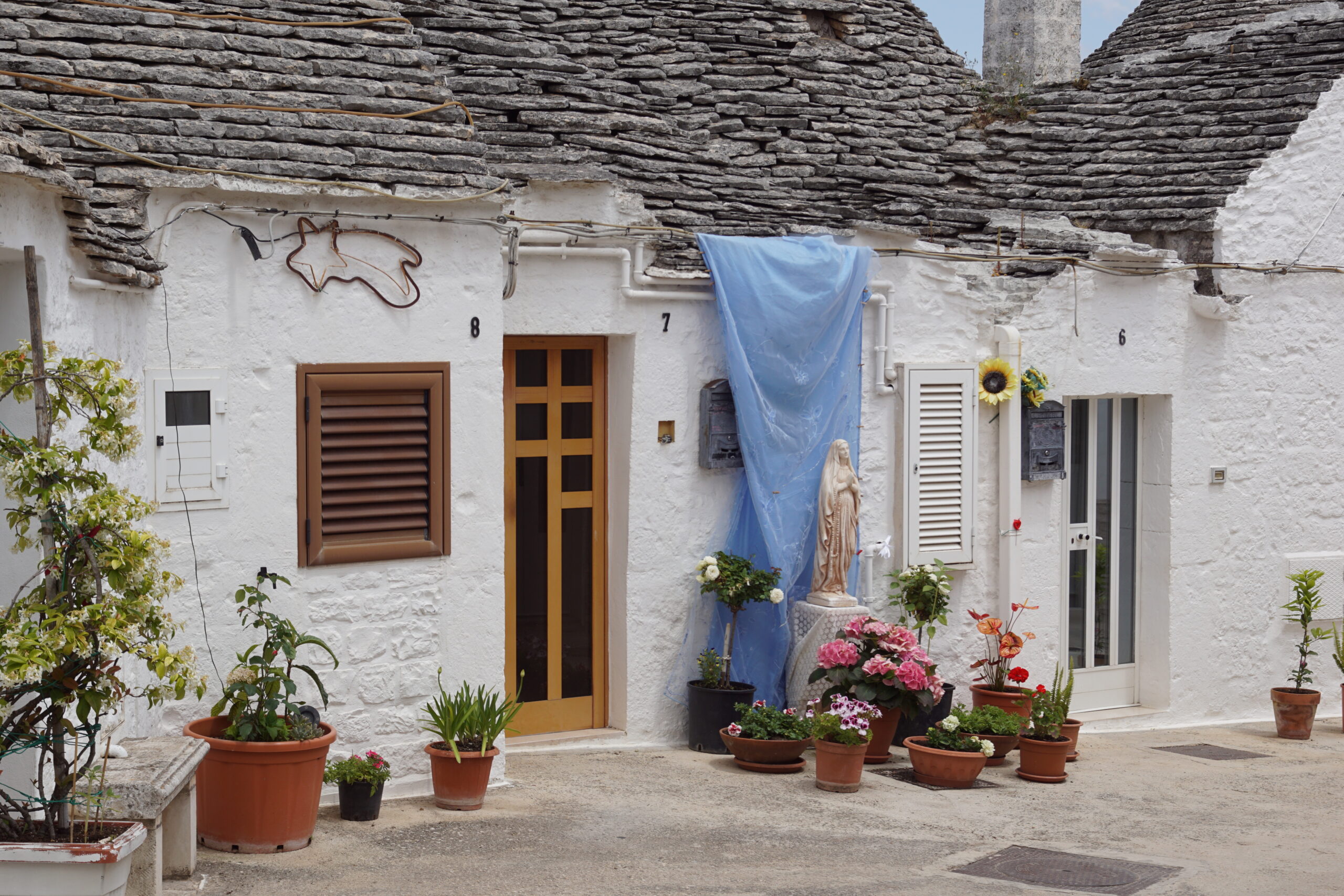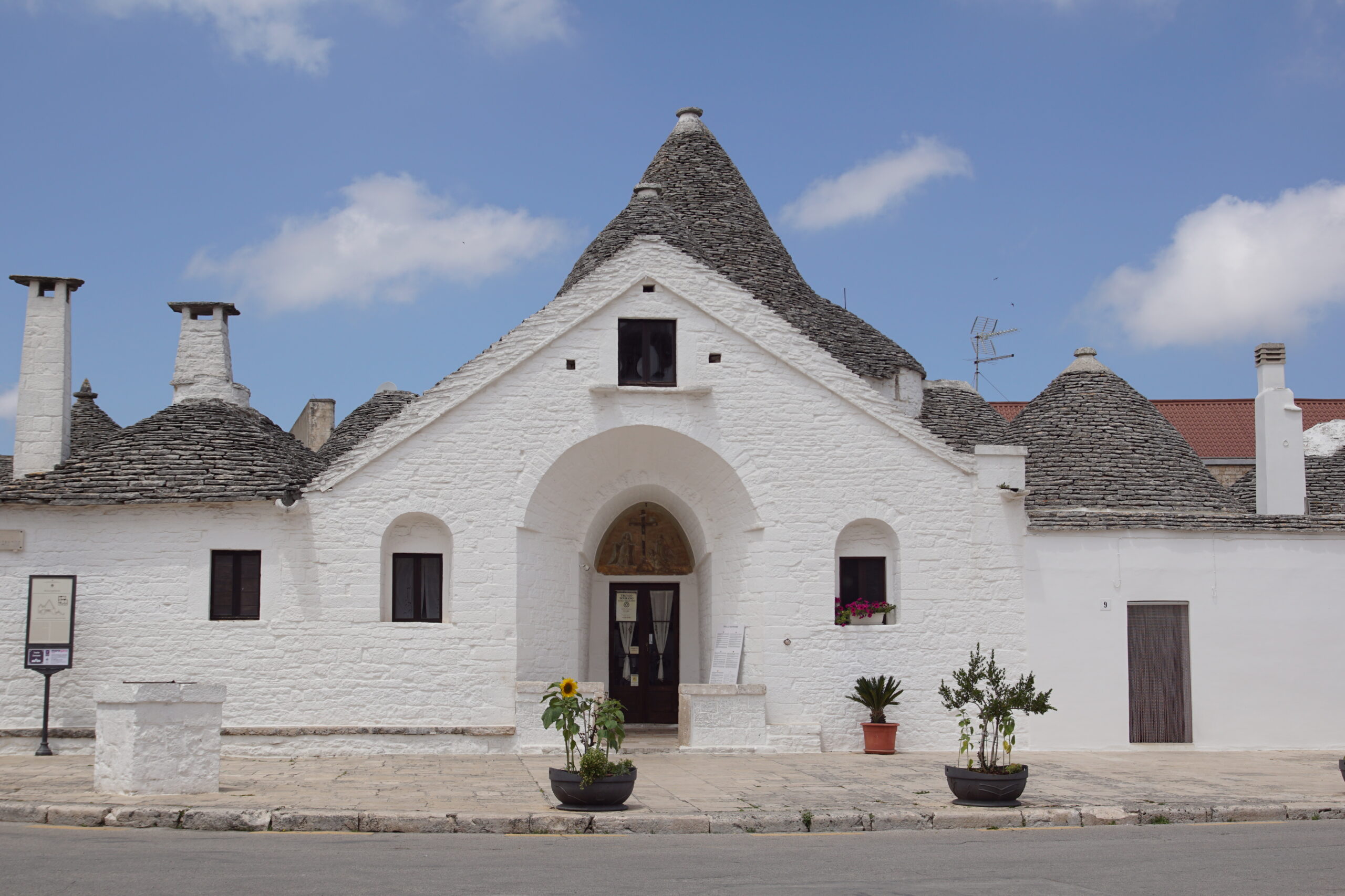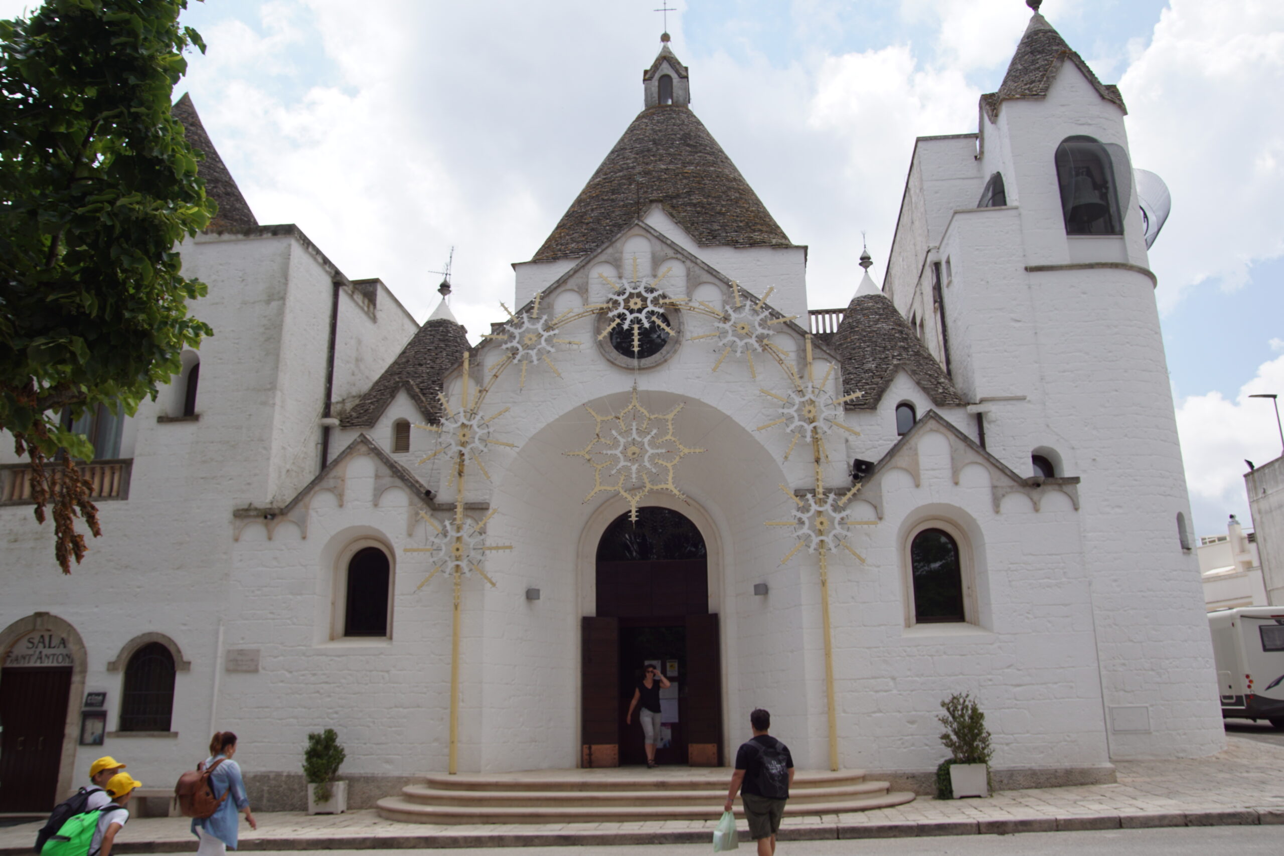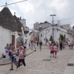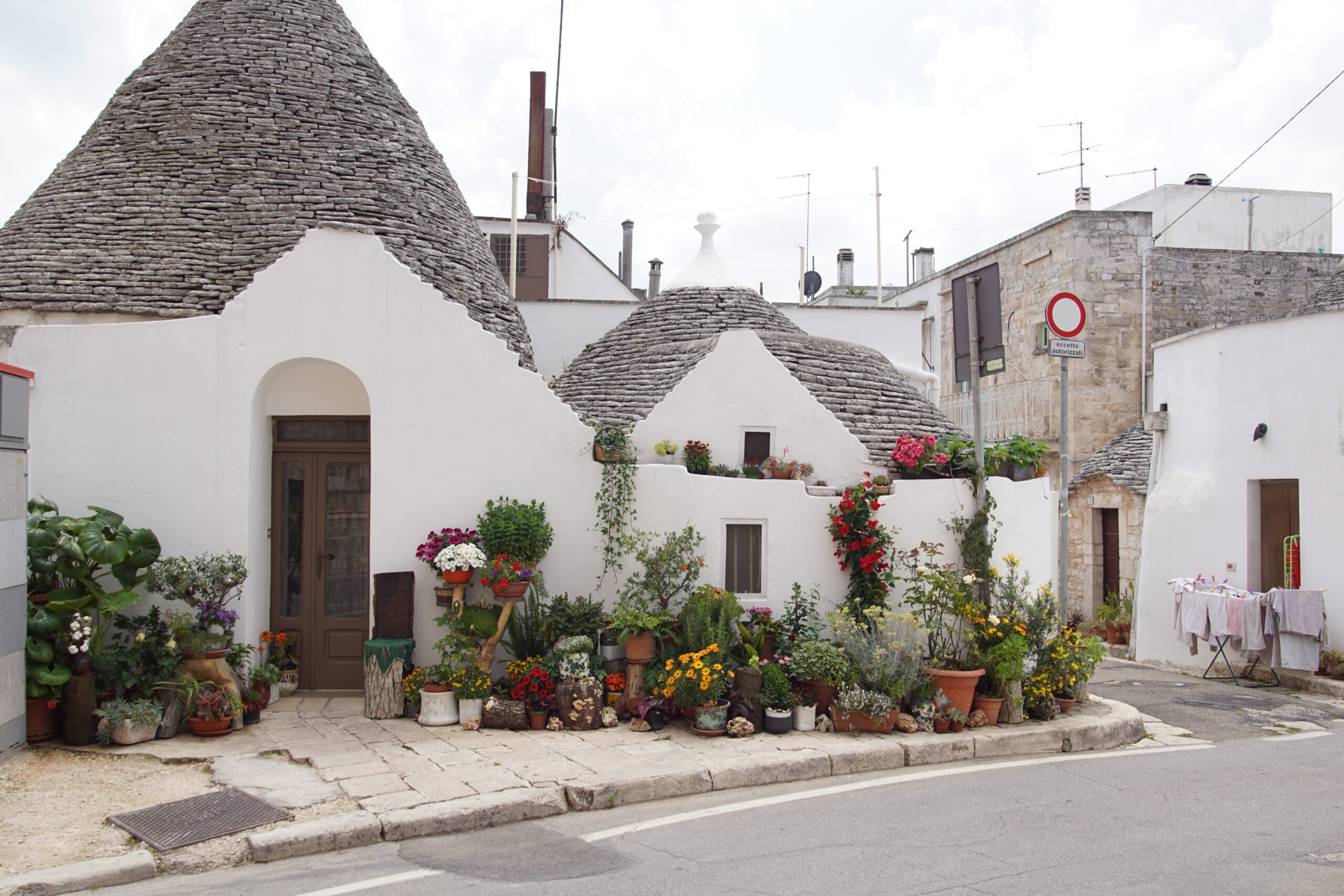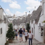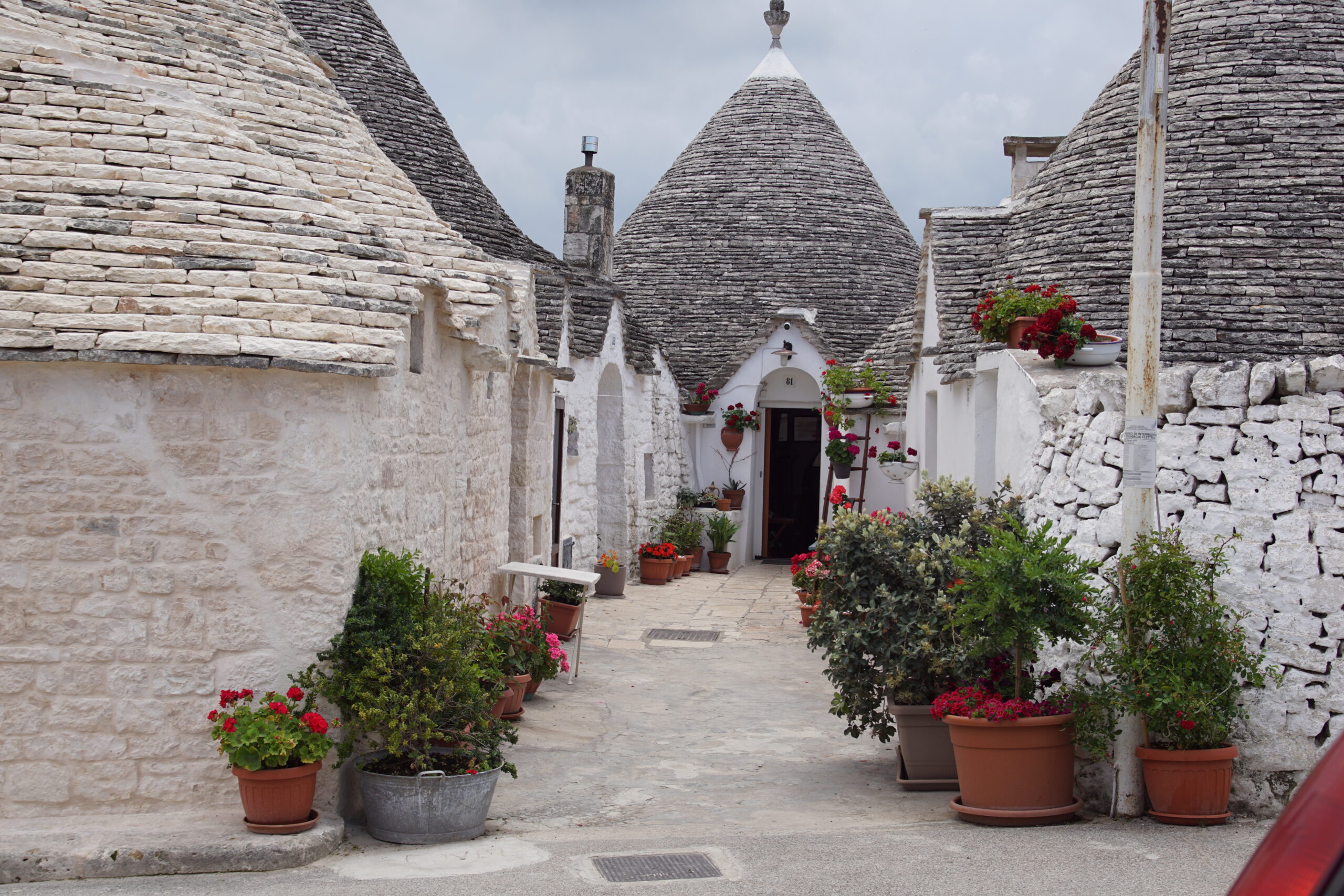 Départ tranquille vers 10h15 pour 61km/1h15 de route pour arriver dans l’un des nombreux parkings (6€) de Alberobello (photo ci-dessus), capitale « commerciale » des Trulli ! C’est ici que leur concentration est la plus importante. La 1ère butte au Sud (Rione Monti) où vous arrivez en premier en comporte 1000 reconvertis en boutique ou BandB. La seconde butte en face au nord (dit Rione Aia Piccola, où se situe la Basilique dei Santi Medici et l’unique trullo Sovrano avec 1 étage, tout en haut) en comporte 400. Cette dernière zone est plus authentique et calme (!). Nous repartons de cette petite ville incontournable des Pouilles, après y avoir pique-niqué. Illustré par les 18 premières photos en galerie.
