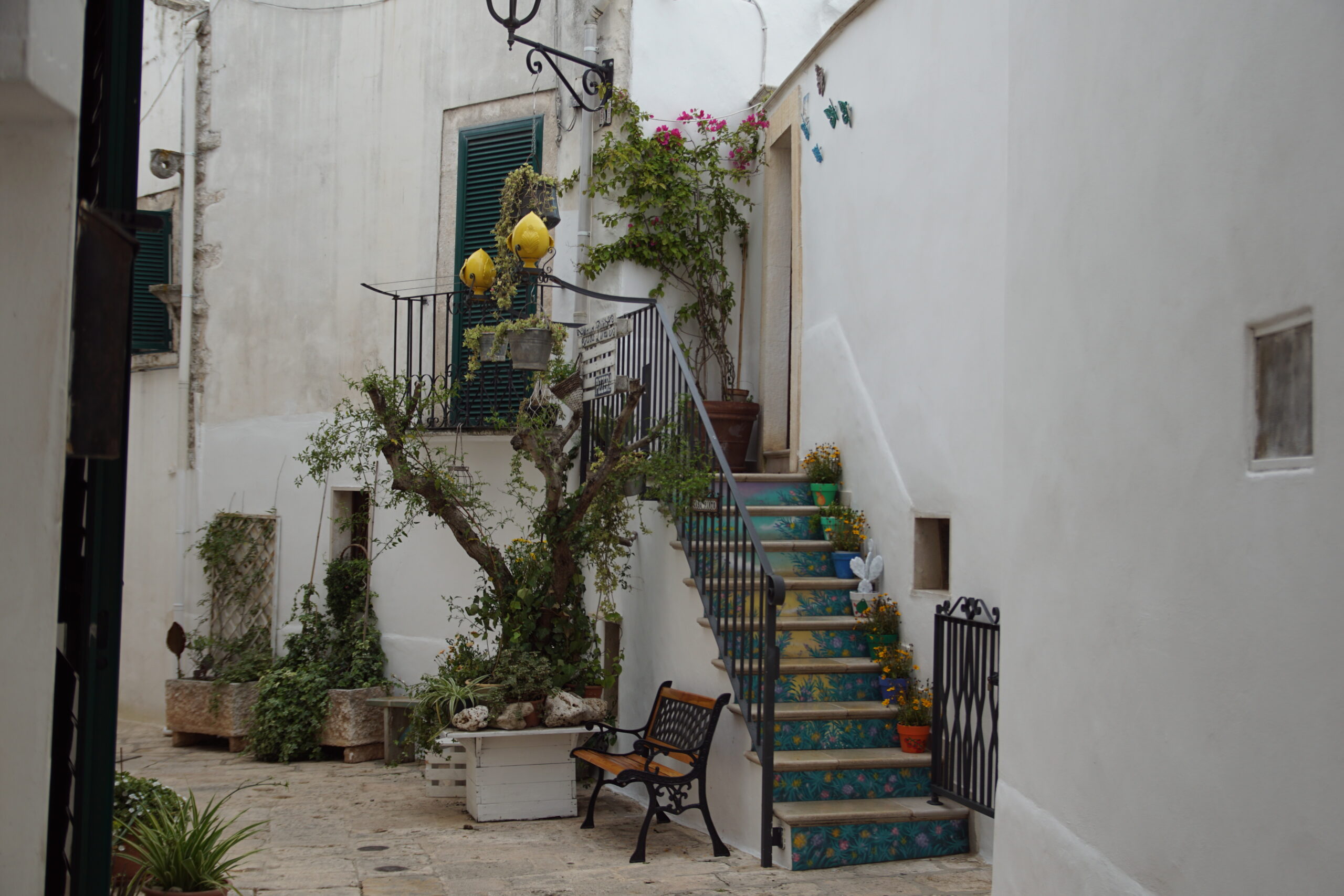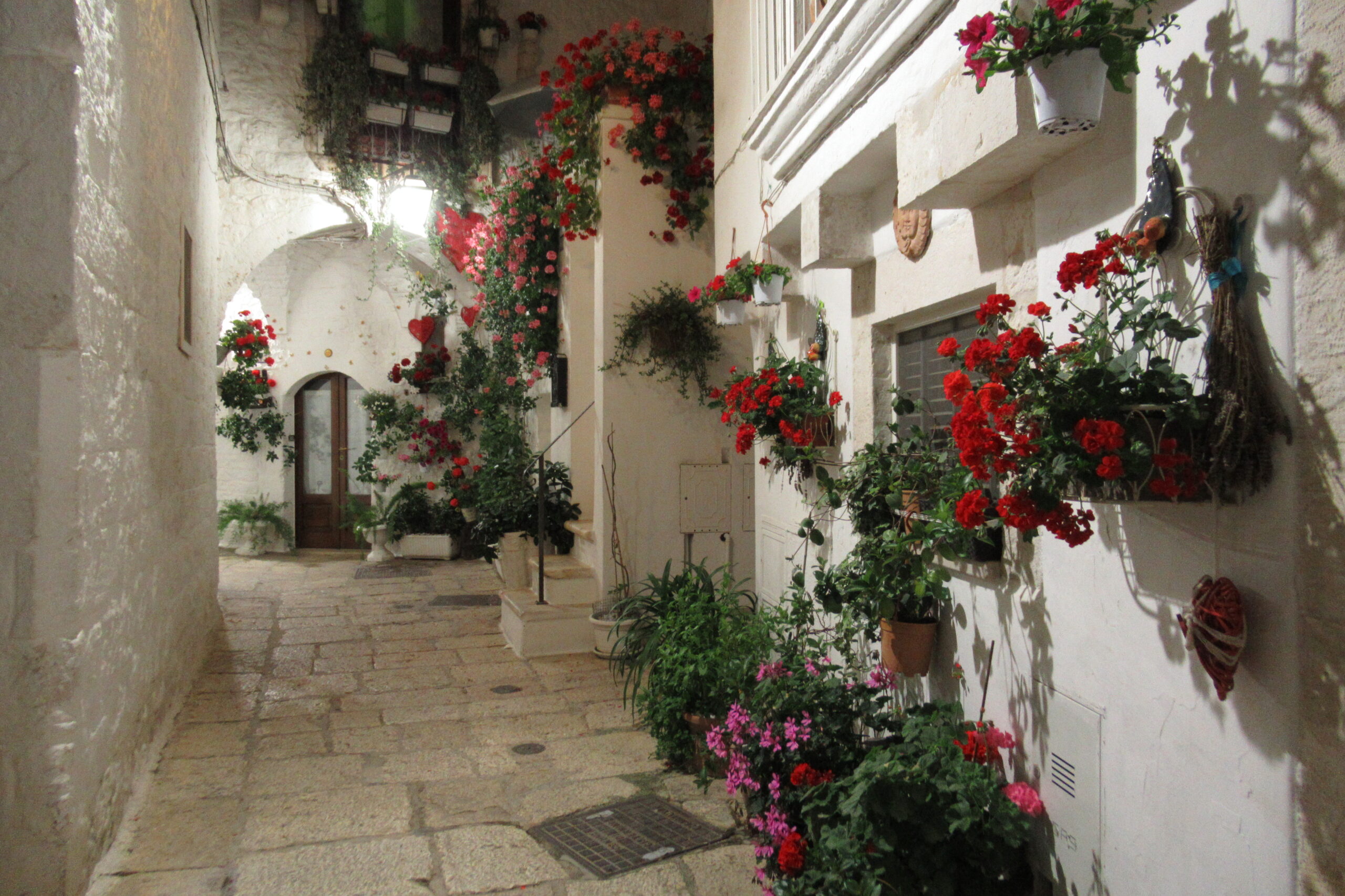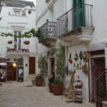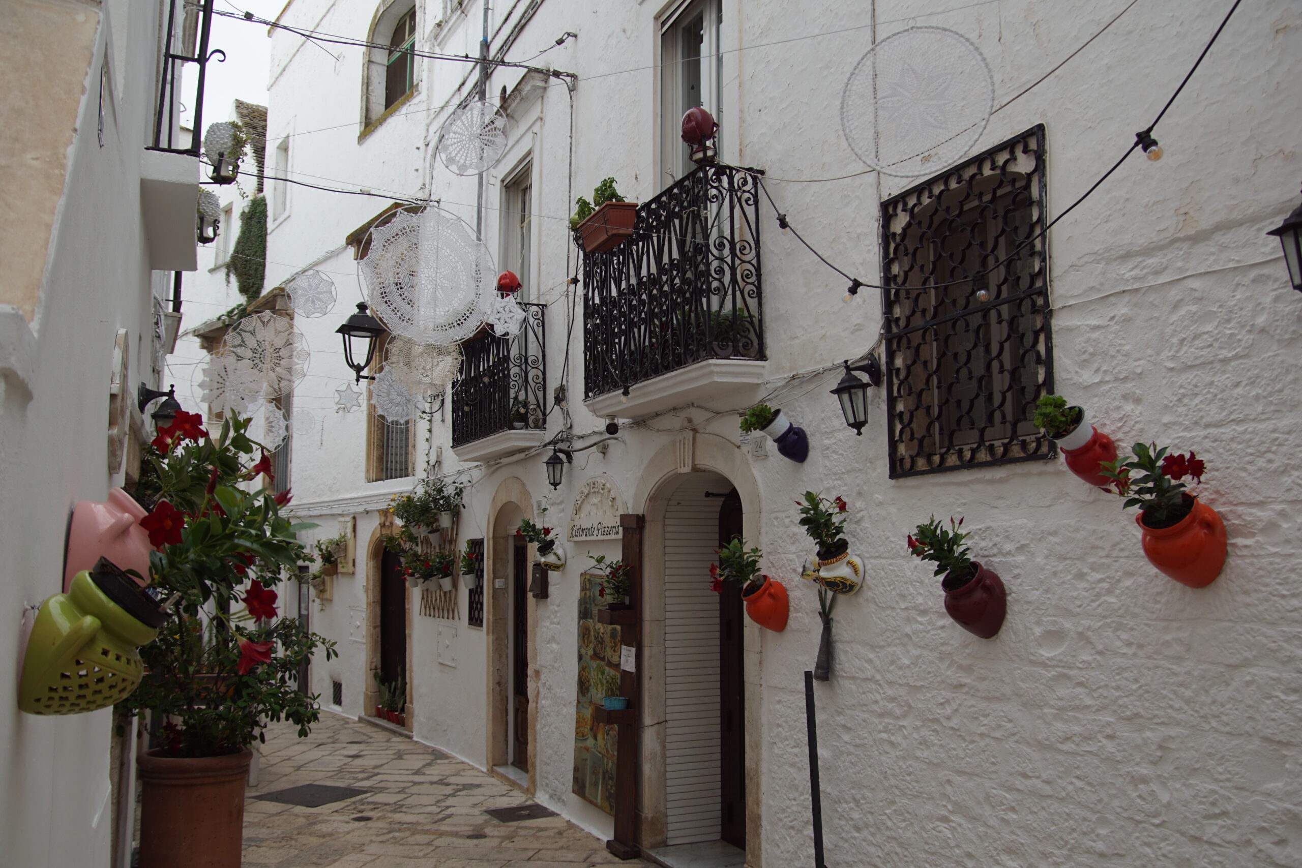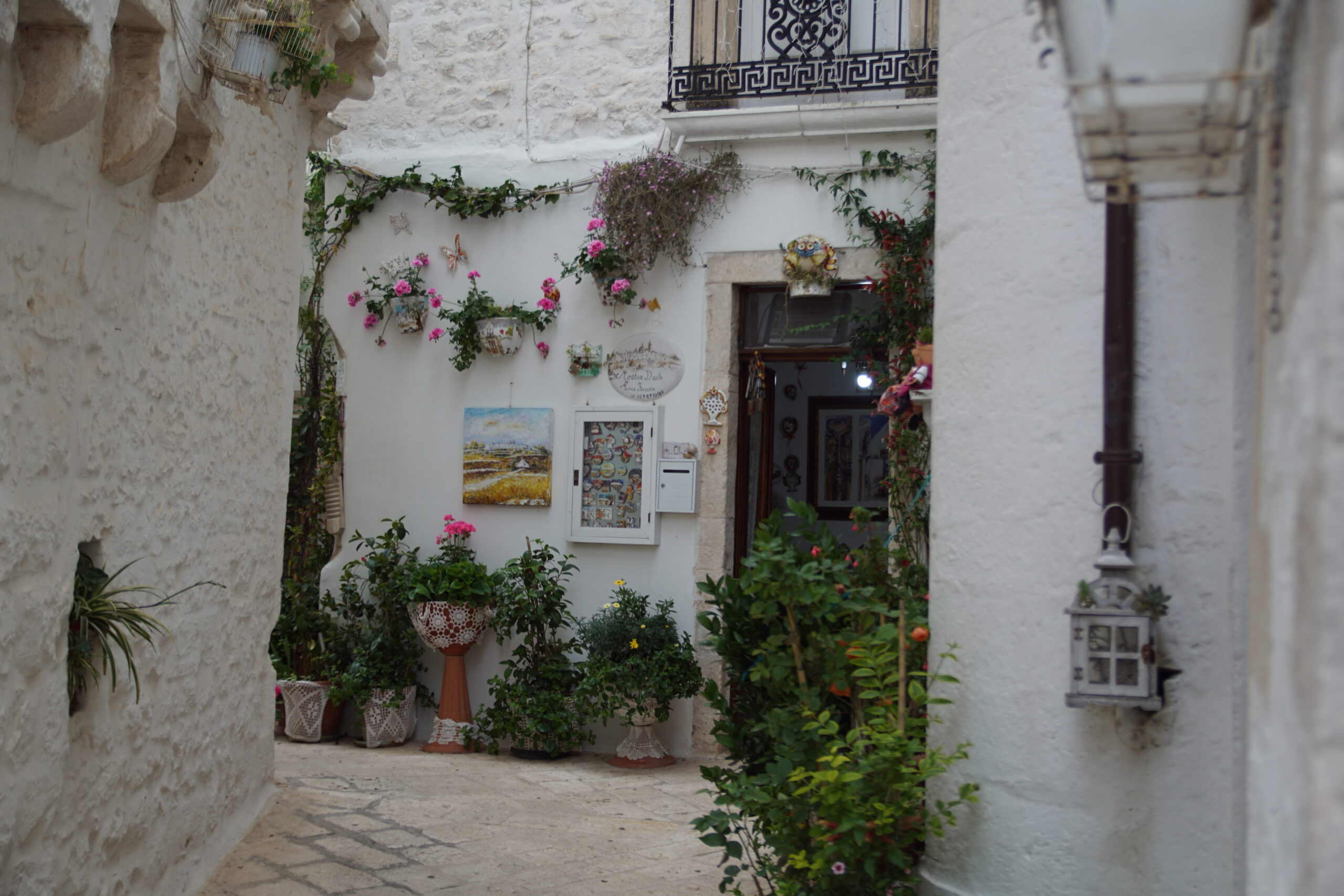 Seconde halte à 9km/15mn plus loin : Locorotondo, village en haut d’une colline de « La Valle d’Itria ». Maisons toutes blanches, décorations florales font de ce village une jolie destination photogénique ! C’est assez petit et en 30/45mn vous en aurez fait le tour. Belle vue dominante sur la campagne.