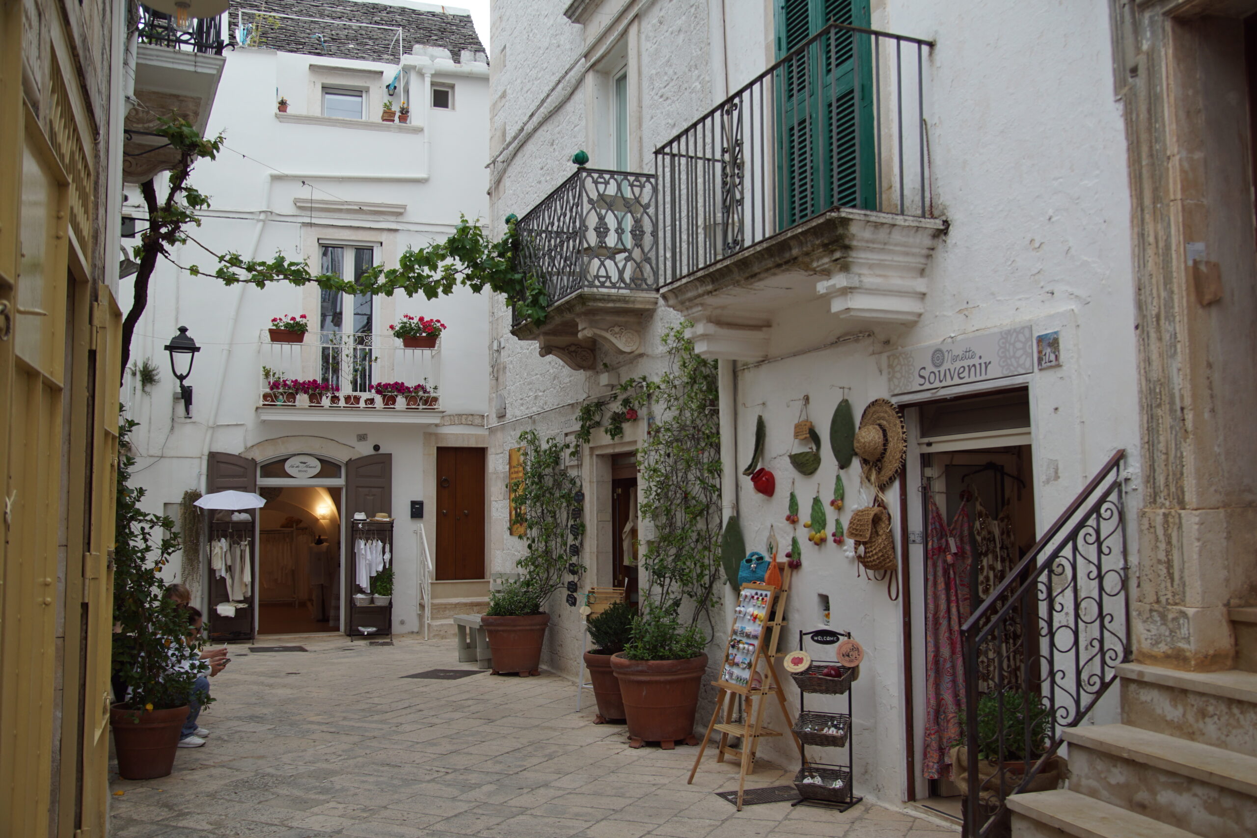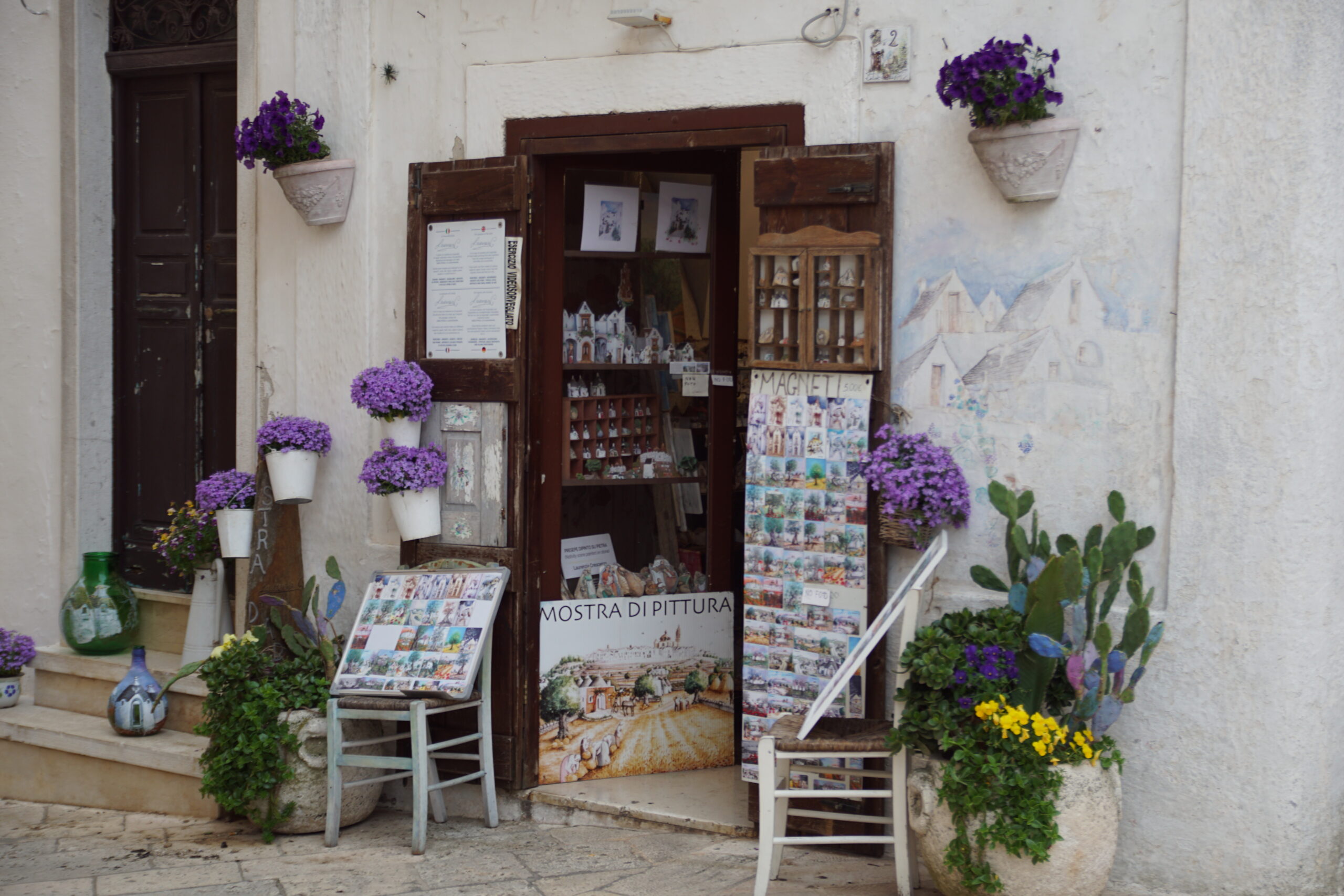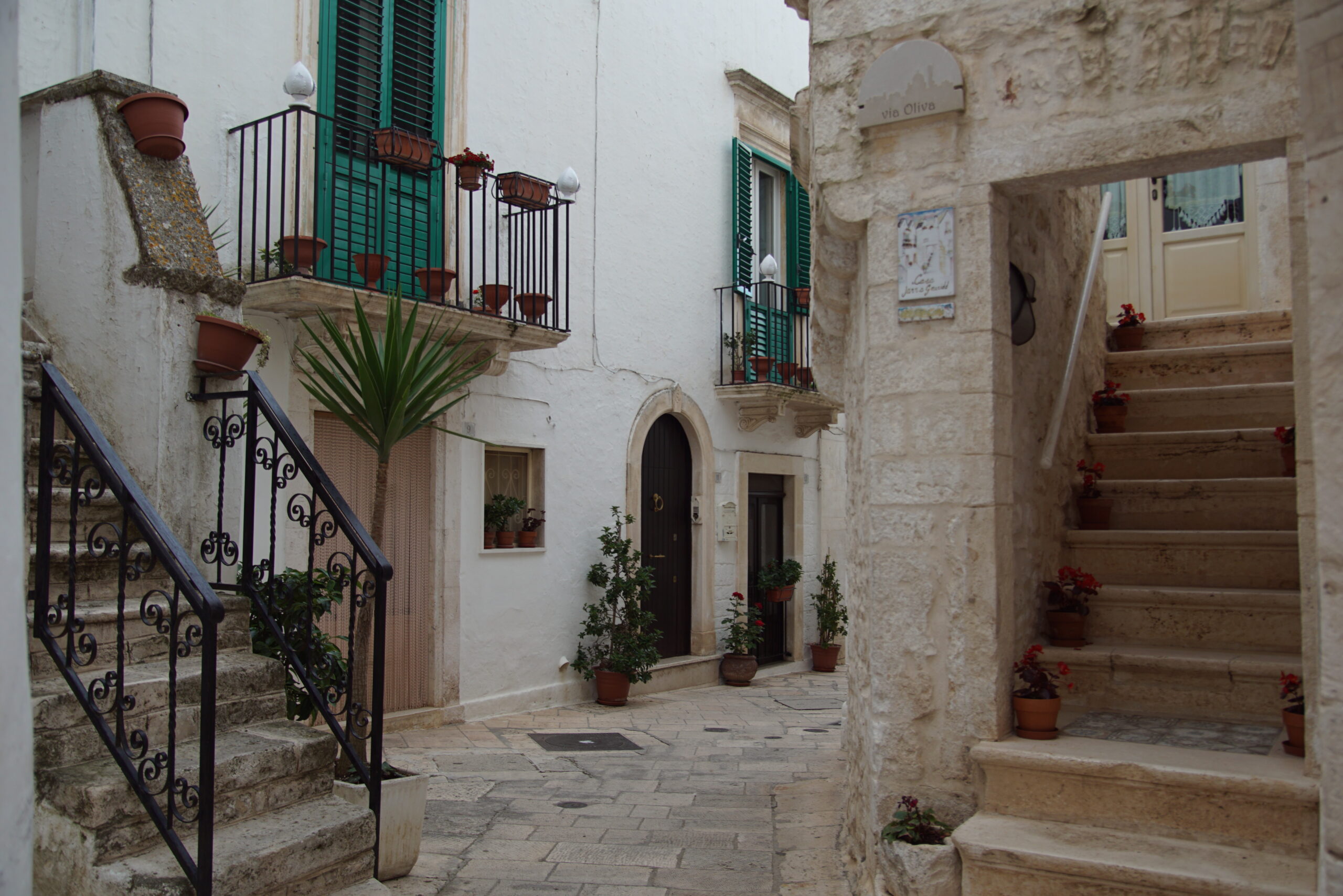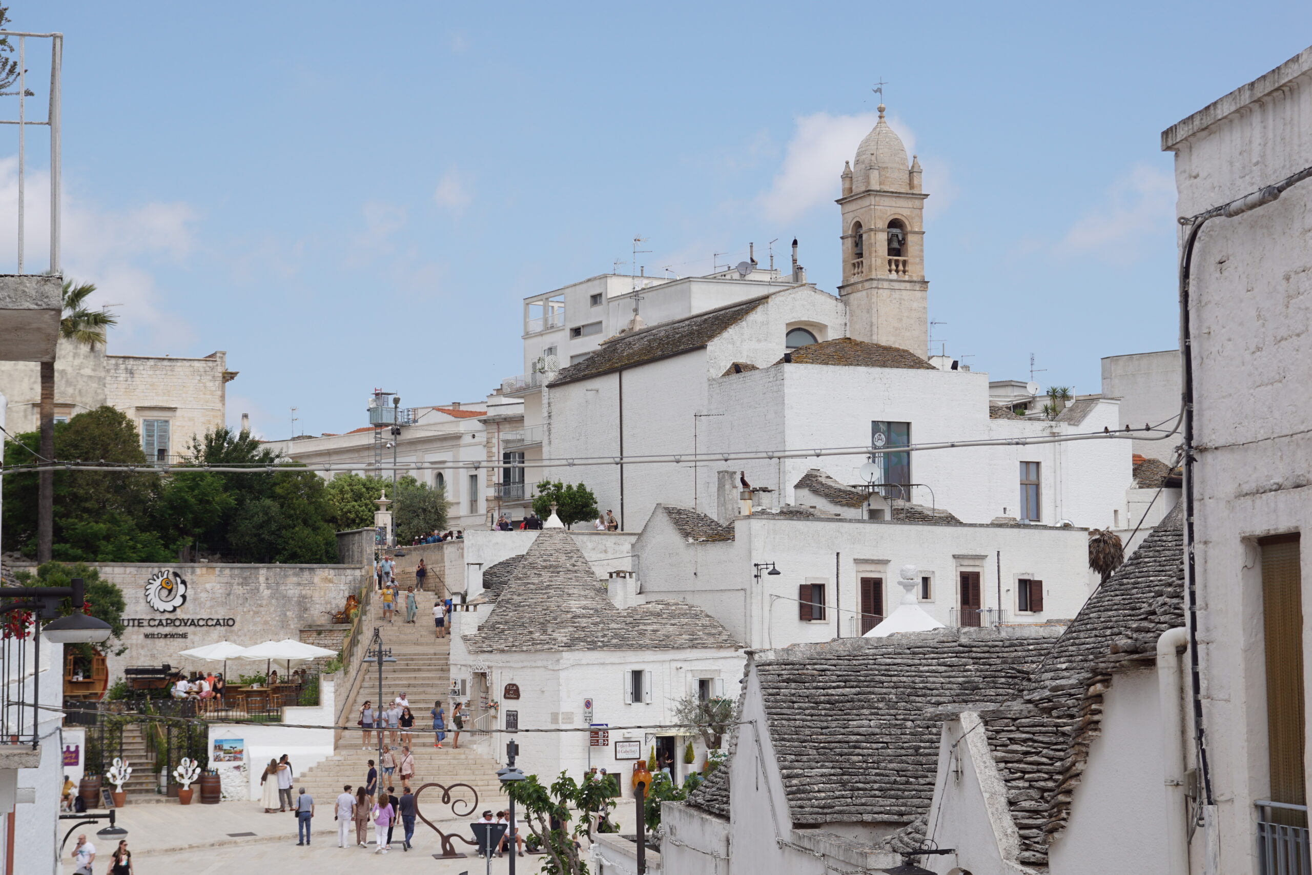 Seconde halte à 9km/15mn plus loin : Locorotondo, village en haut d’une colline de « La Valle d’Itria ». Maisons toutes blanches, décorations florales font de ce village une jolie destination photogénique ! C’est assez petit et en 30/45mn vous en aurez fait le tour. Belle vue dominante sur la campagne.