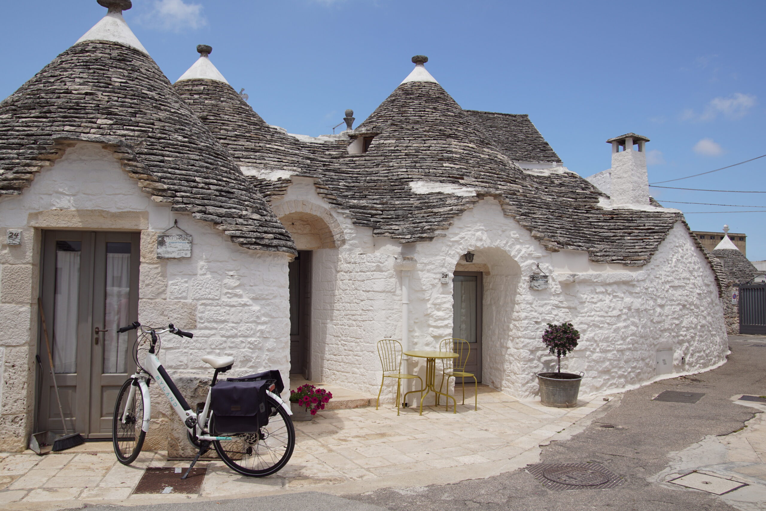 J04 pour 90km depuis Bari vers le pays des Trulli : mercredi 31 mai 2023, il fait encore beau, mais avec des soupçons orageux qui ne se déclencheront pas, pour effectuer un autre trajet vers le Sud-Est et explorer d’autres villages.