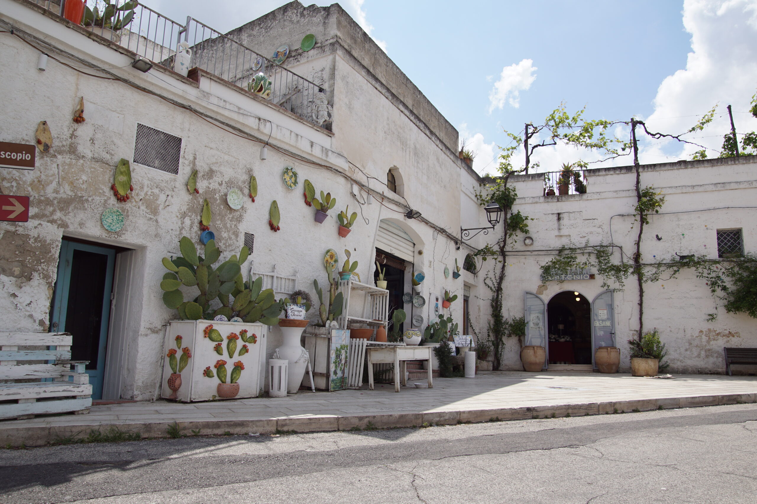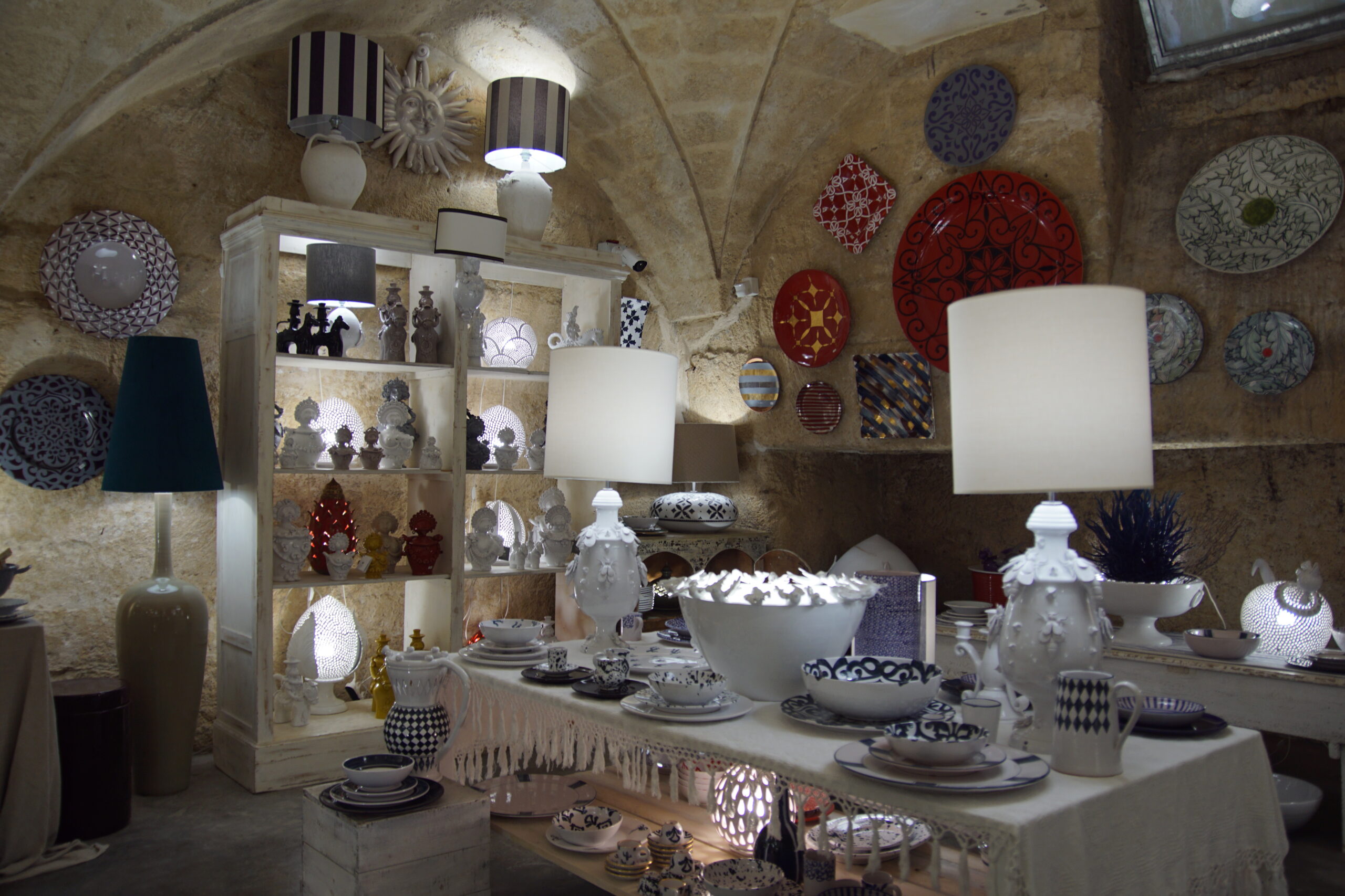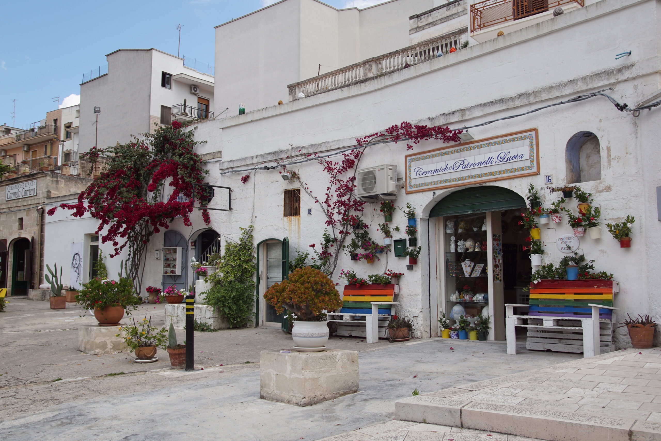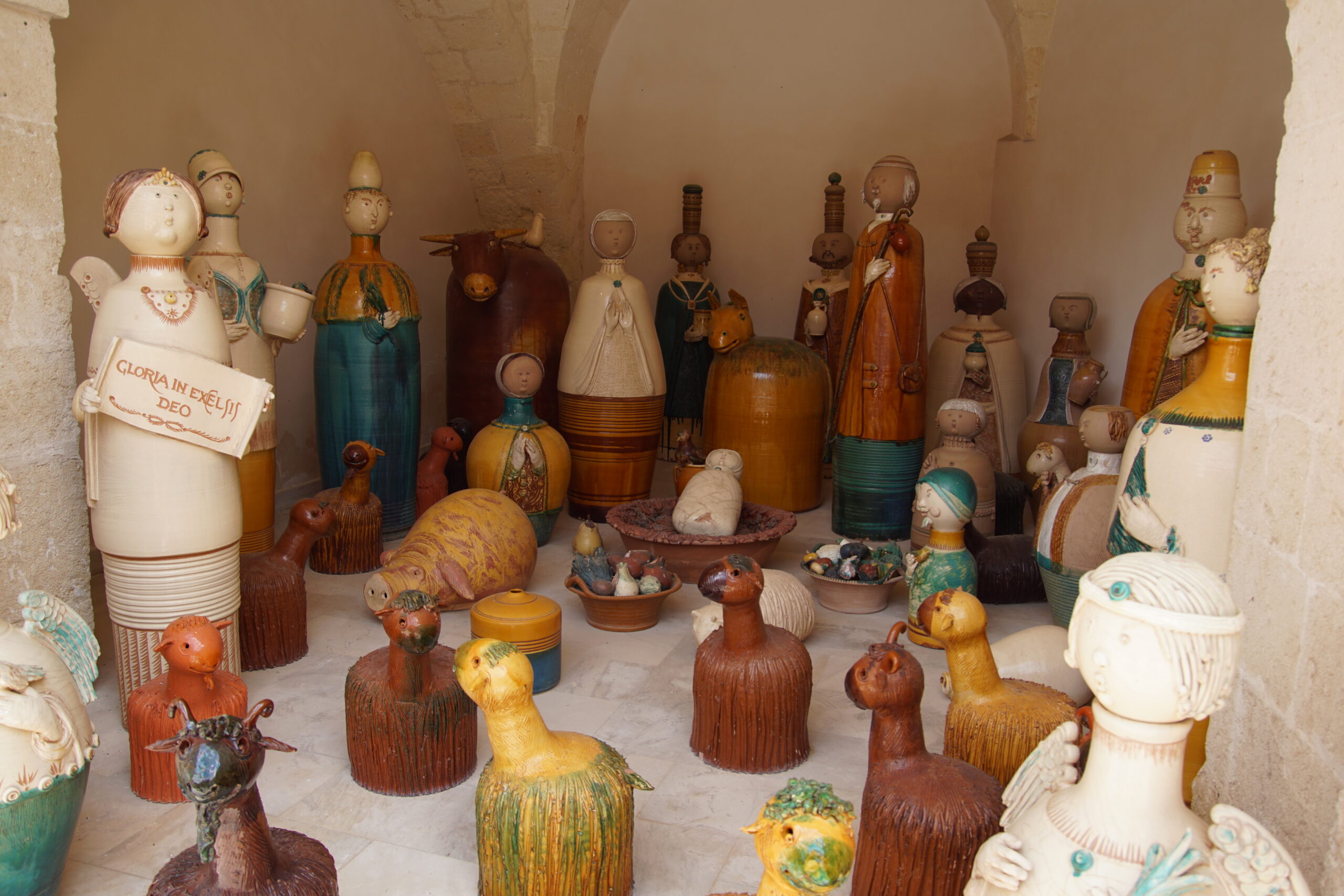 Donc après 31km/40mn à travers une jolie campagne et de petites routes, nous voici sur un parking gratuit et ombragé vers 10h30 à Grottaglie, capitale de la céramique (photo ci-dessus). La via Crispi comporte environ 60 ateliers et boutiques de produits utilitaires, artistiques, ou décoratifs, pour tous les goûts et prix.