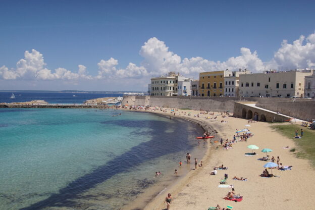 Mais c’est dimanche, donc il ne faut pas tarder « pour aller à la mer » et de ce côté là c’est la mer Ionienne, et Gallipoli. Nous y sommes pour 11h30 après 40km/40mn. Plusieurs parkings près du port de plaisance, non remplis avec horodateurs CB en panne (bonnes vieilles pièces acceptées).